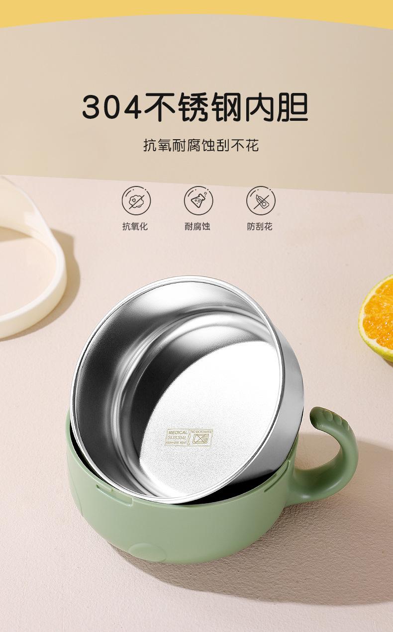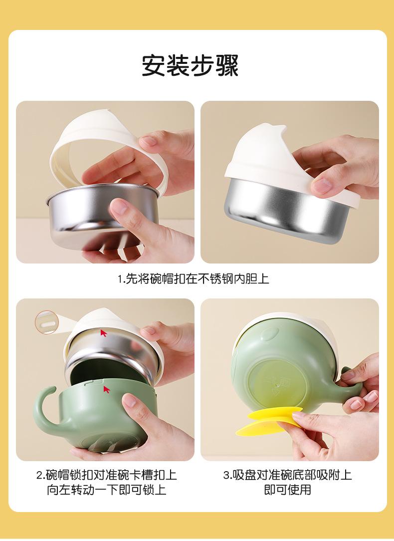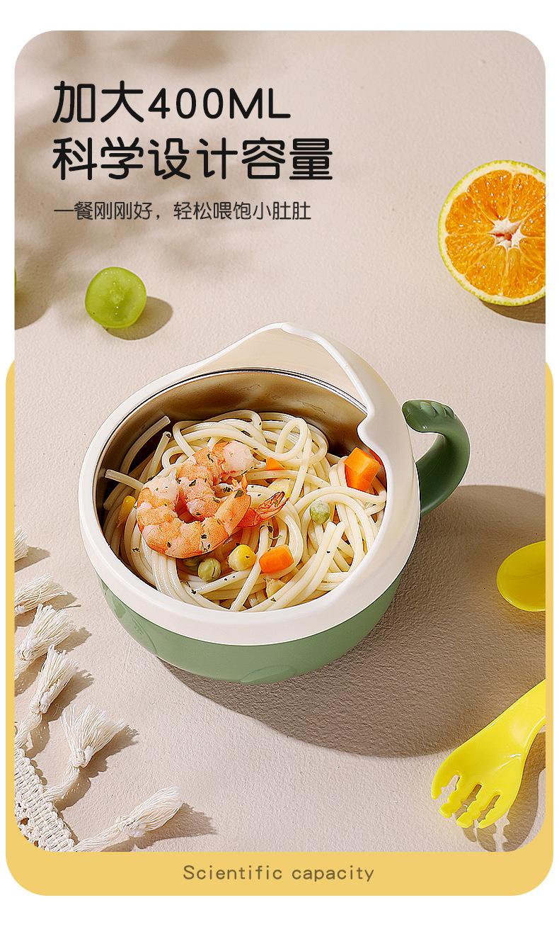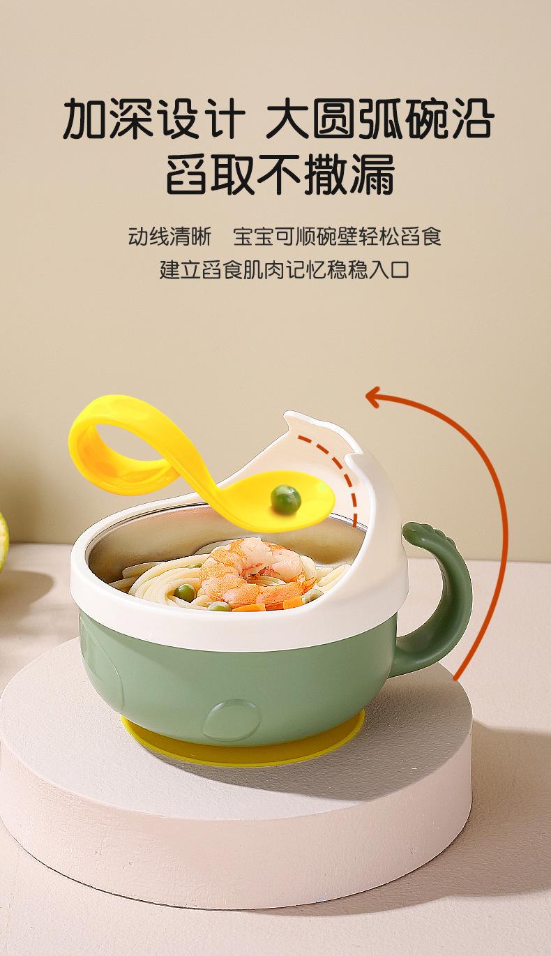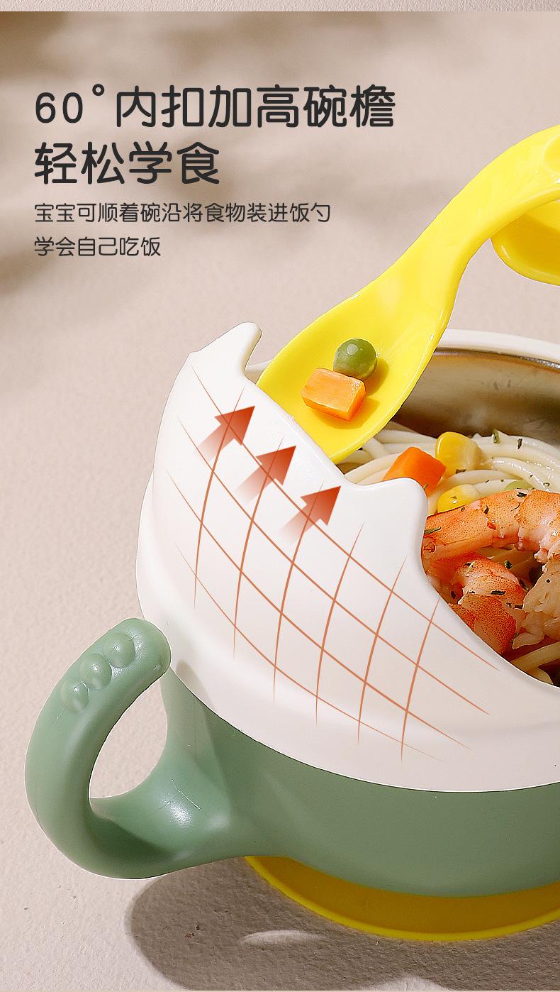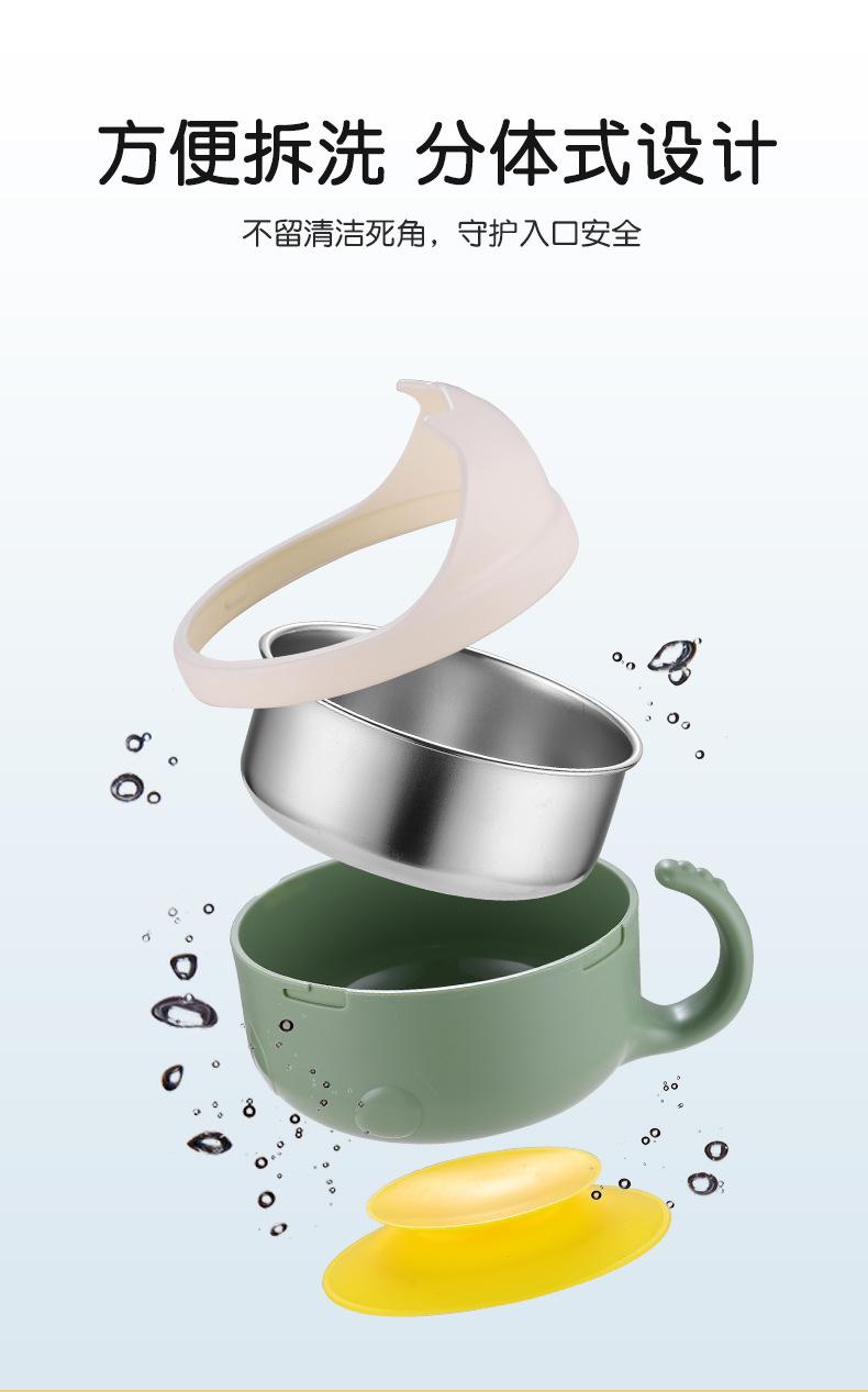 Complemento alimenticio de acero inoxidable para bebés transfronterizos, tazón con cuchara, tazón con ventosa para bebés, tazón de comida para niños resistente a caídas, vajilla para entrenamiento de alimentación.
