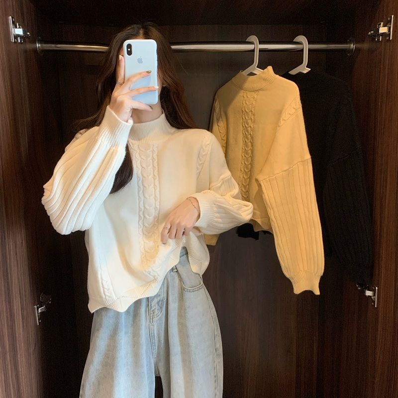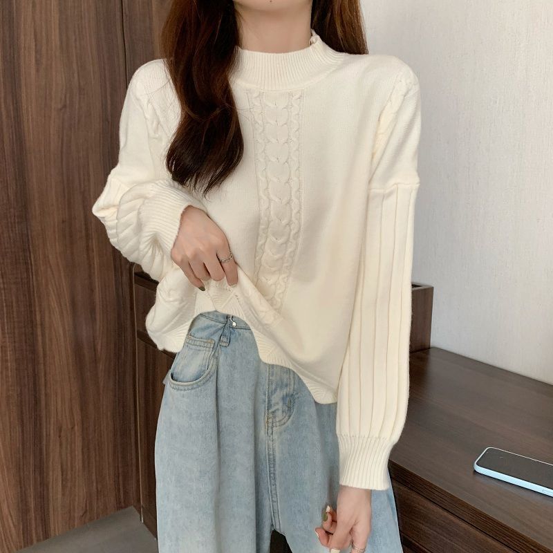 Suéter interior de mujer, ropa interior de otoño e invierno 2023, nuevo diseño pequeño, nicho de sentido, top de punto de cuello alto corto
