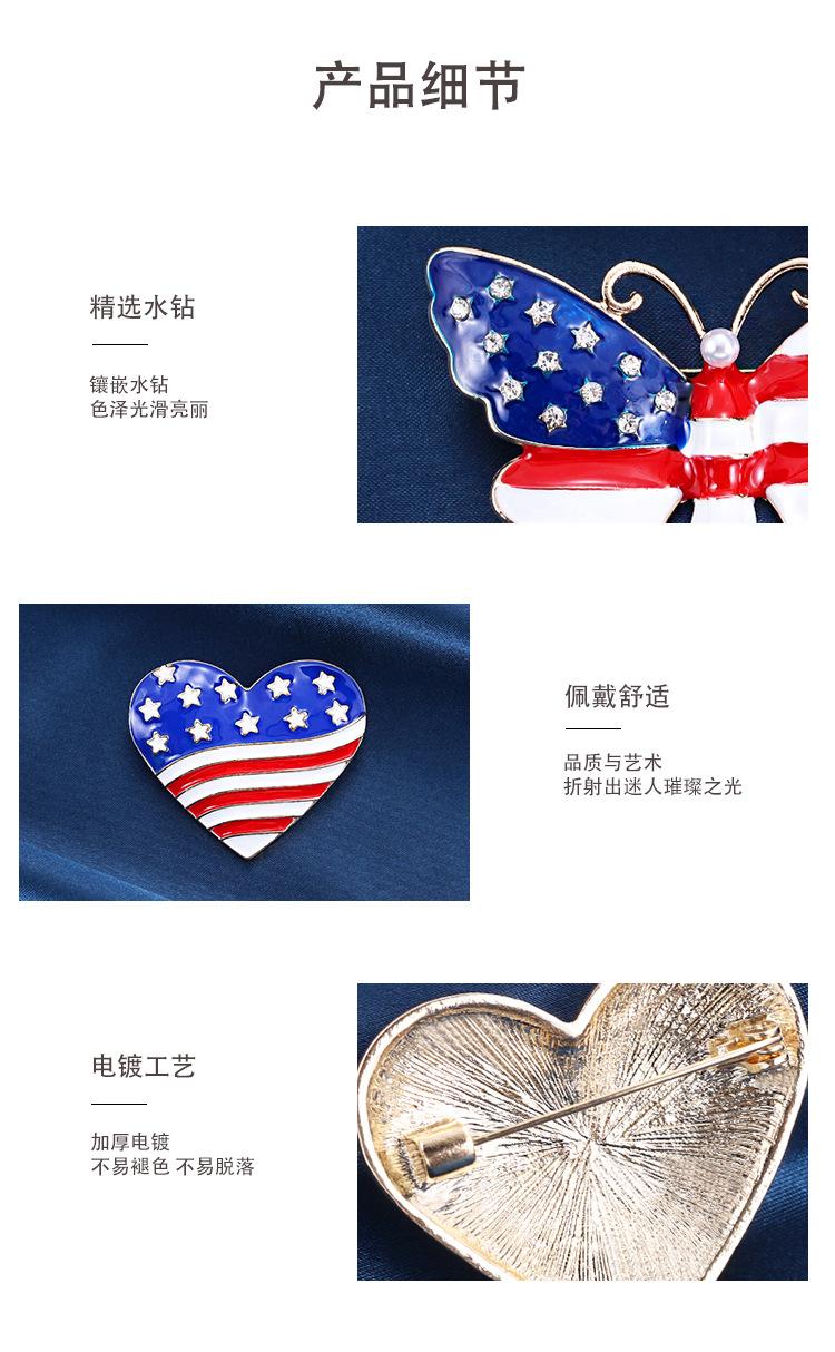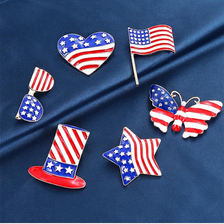 Broche creativo con goteo de aceite transfronterizo estadounidense 2023, ramillete de aleación de amor, decoración del pecho del Día de la Independencia, pin de bandera, accesorios