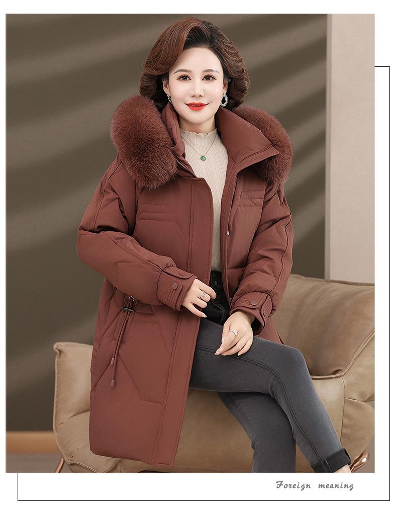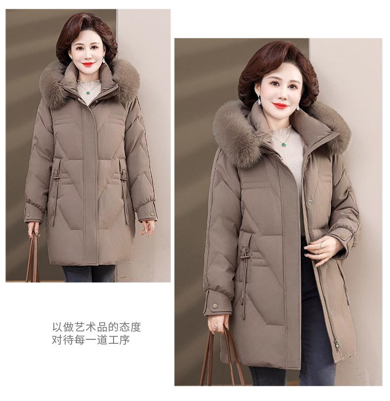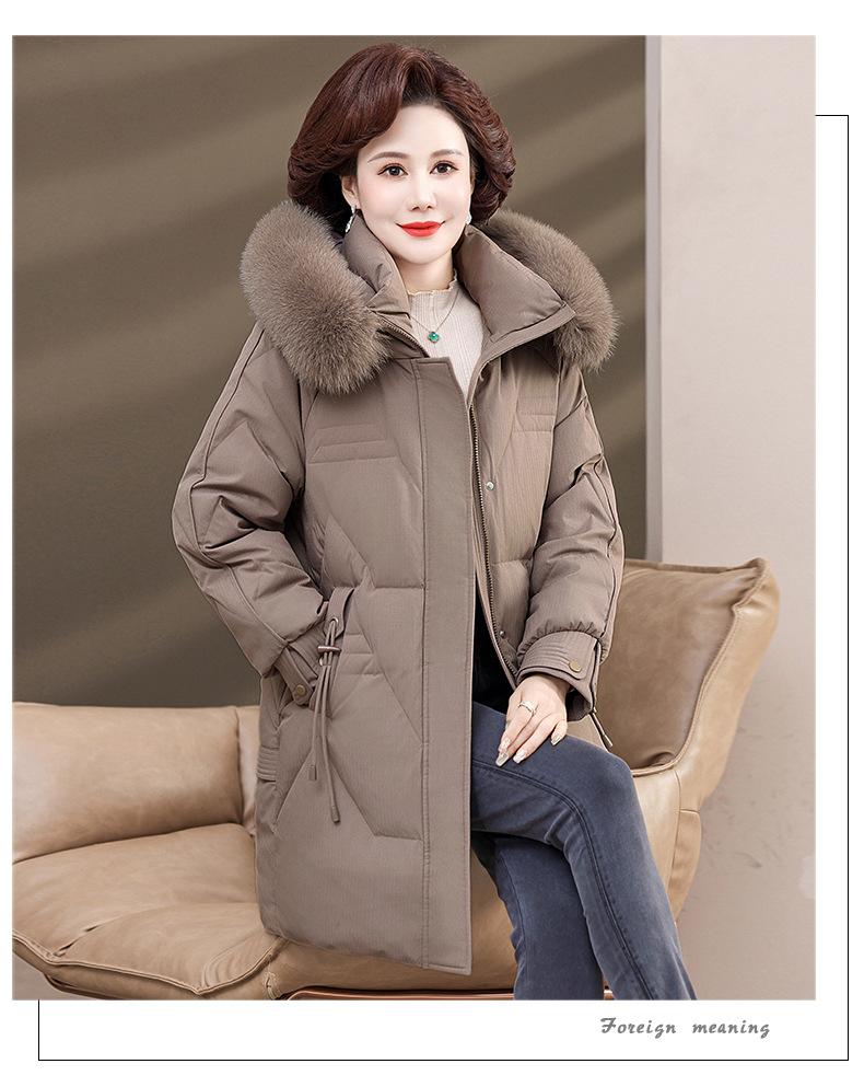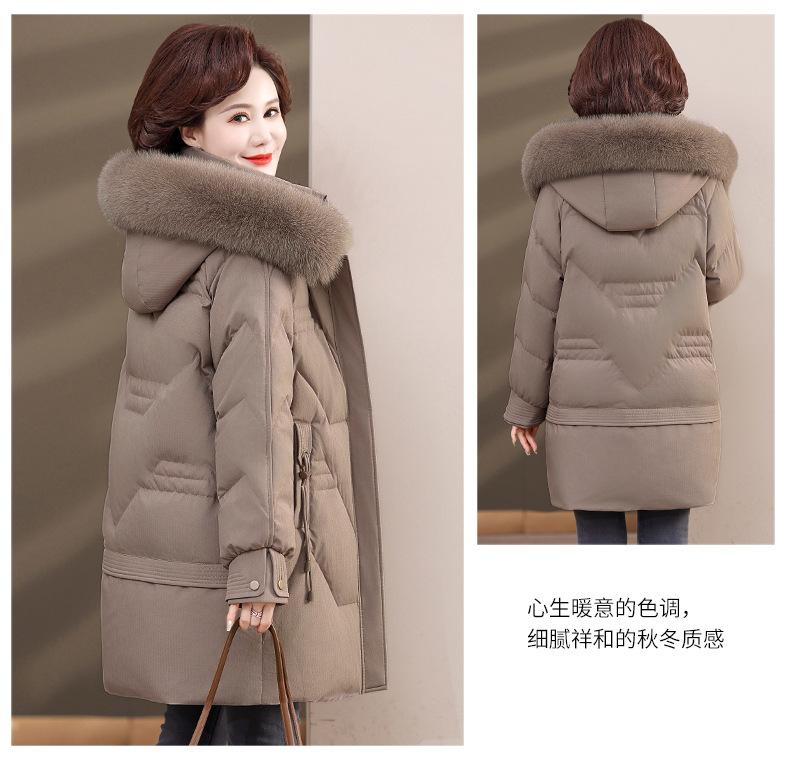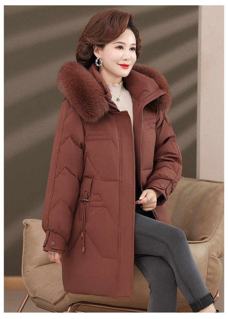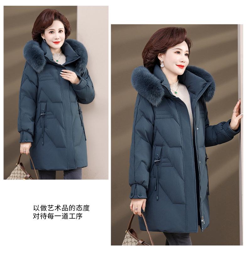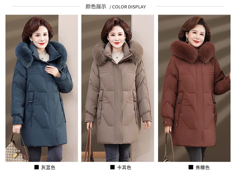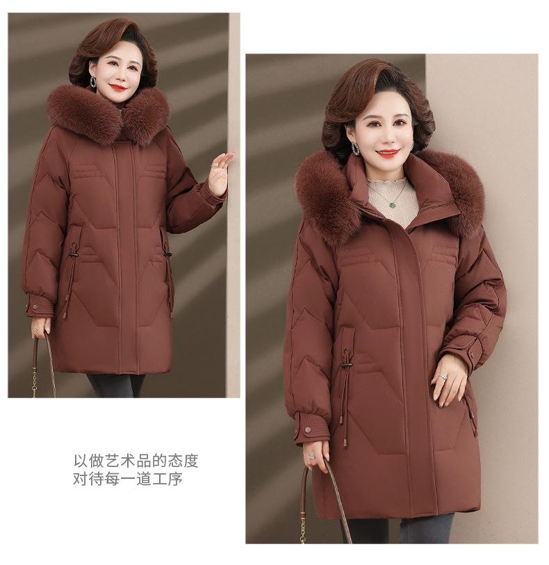 Chaqueta de plumón de pato blanco para madre de mediana edad y anciana, abrigo largo de invierno 2024 con cuello de piel acolchado y cálido
