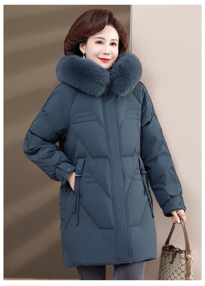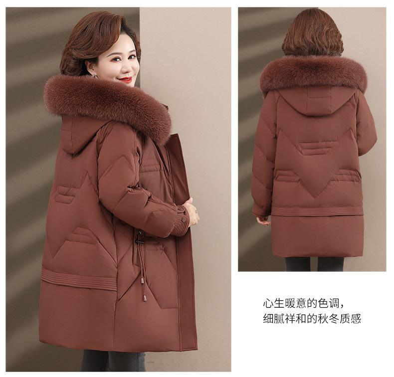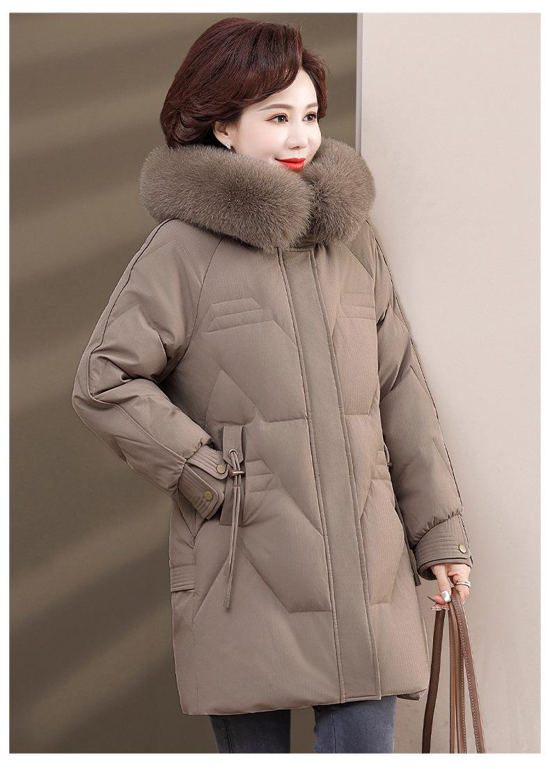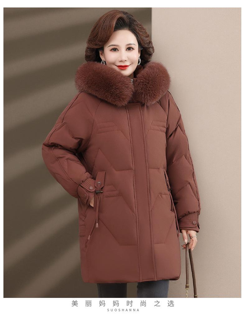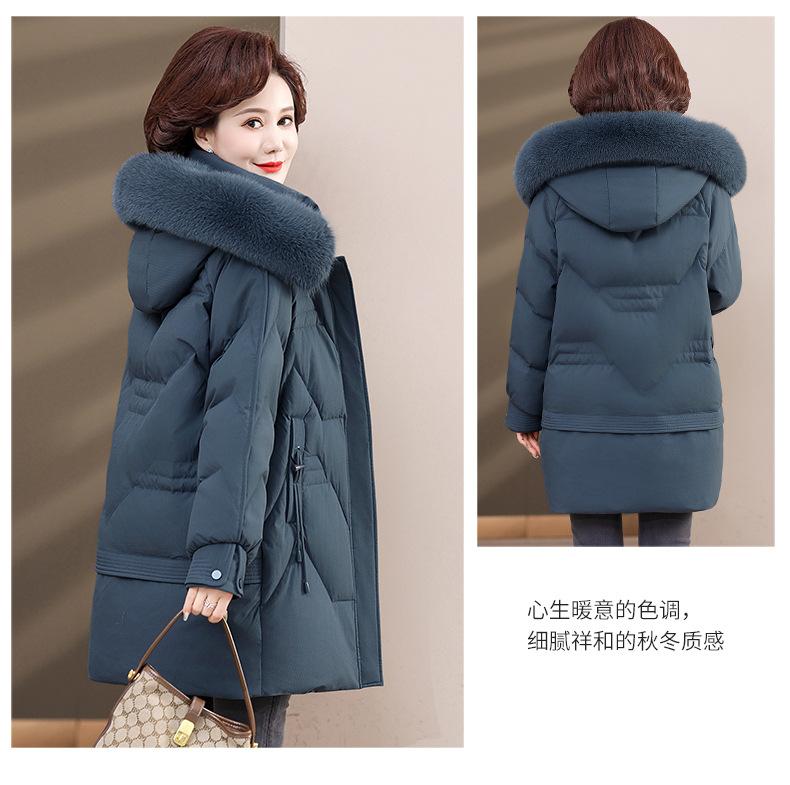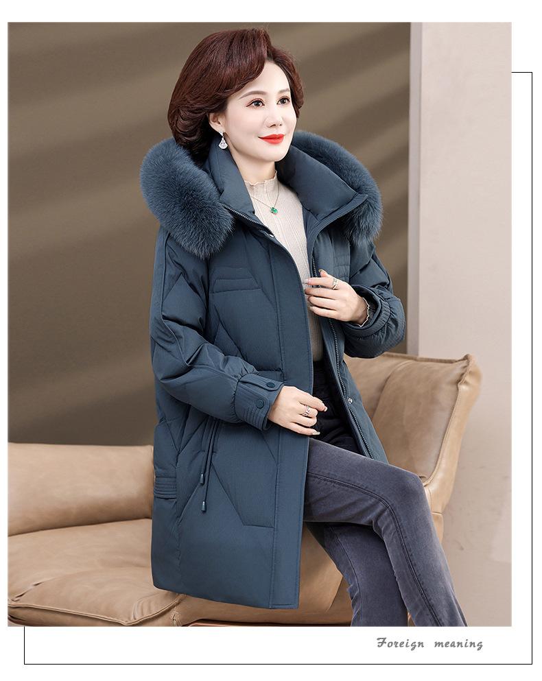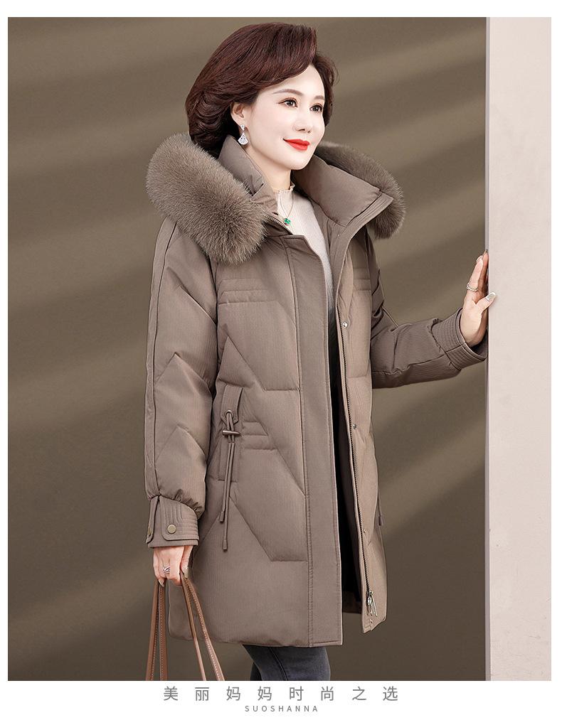 Chaqueta de plumón de pato blanco para madre de mediana edad y anciana, abrigo largo de invierno 2024 con cuello de piel acolchado y cálido