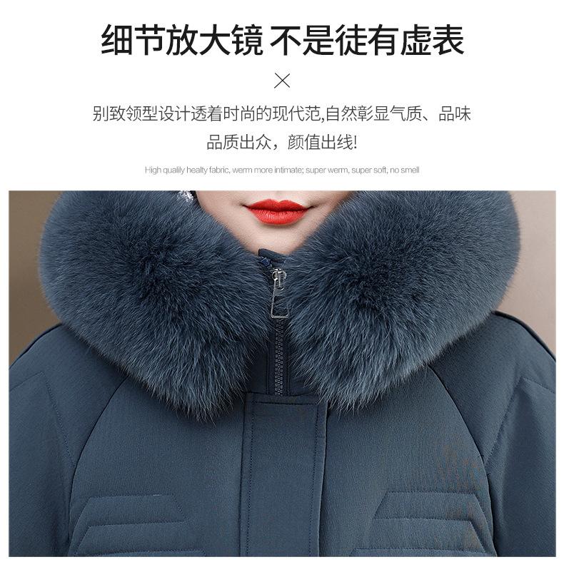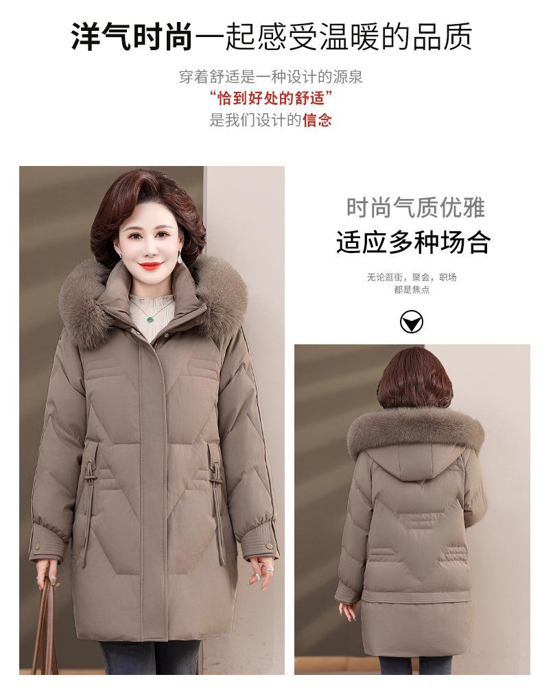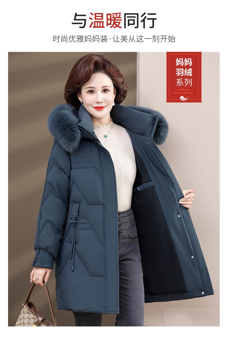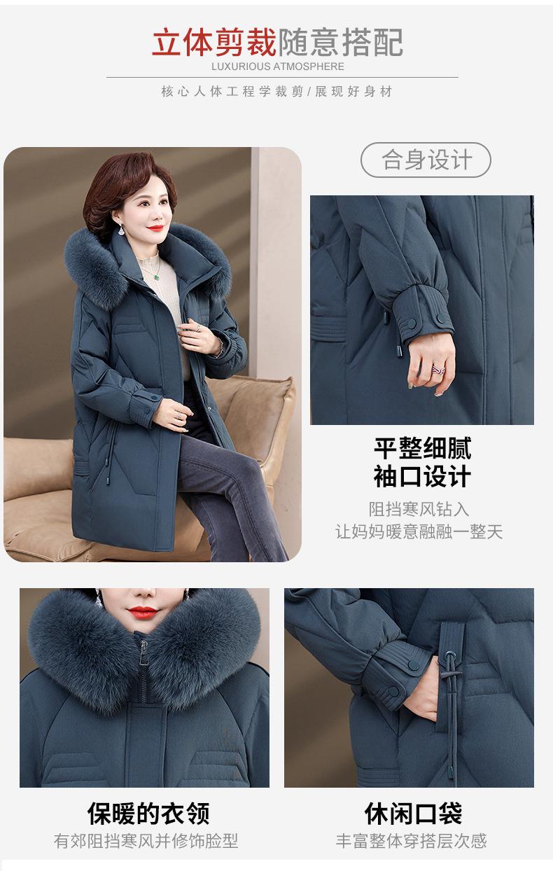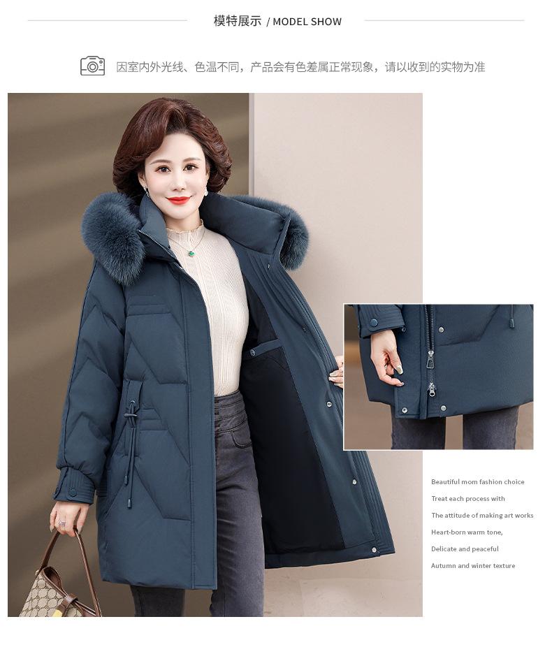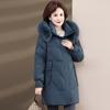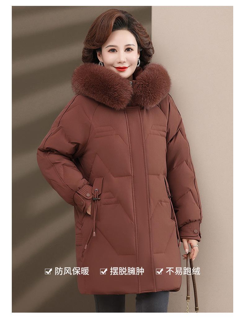 Chaqueta de plumón de pato blanco para madre de mediana edad y anciana, abrigo largo de invierno 2024 con cuello de piel acolchado y cálido