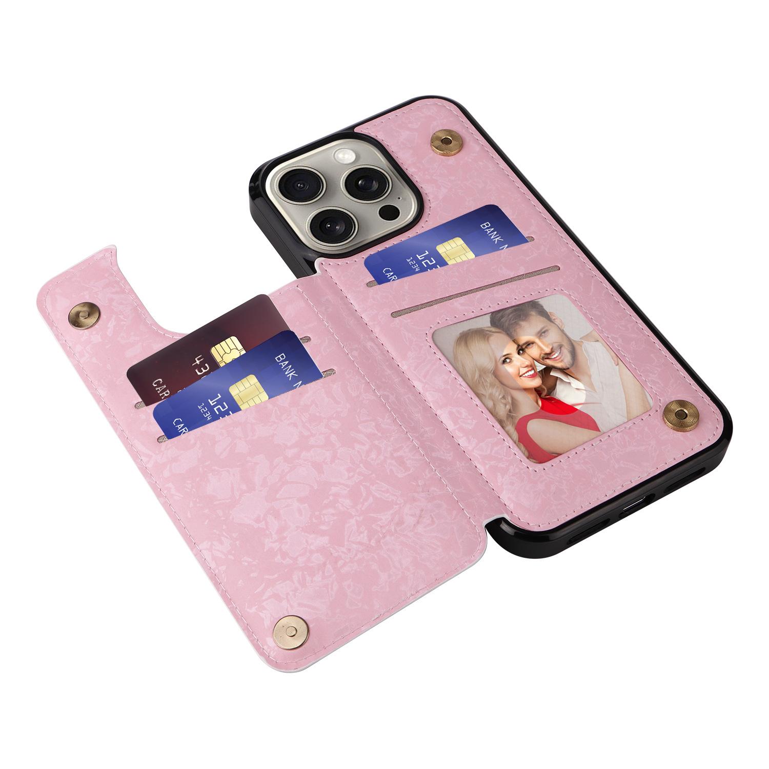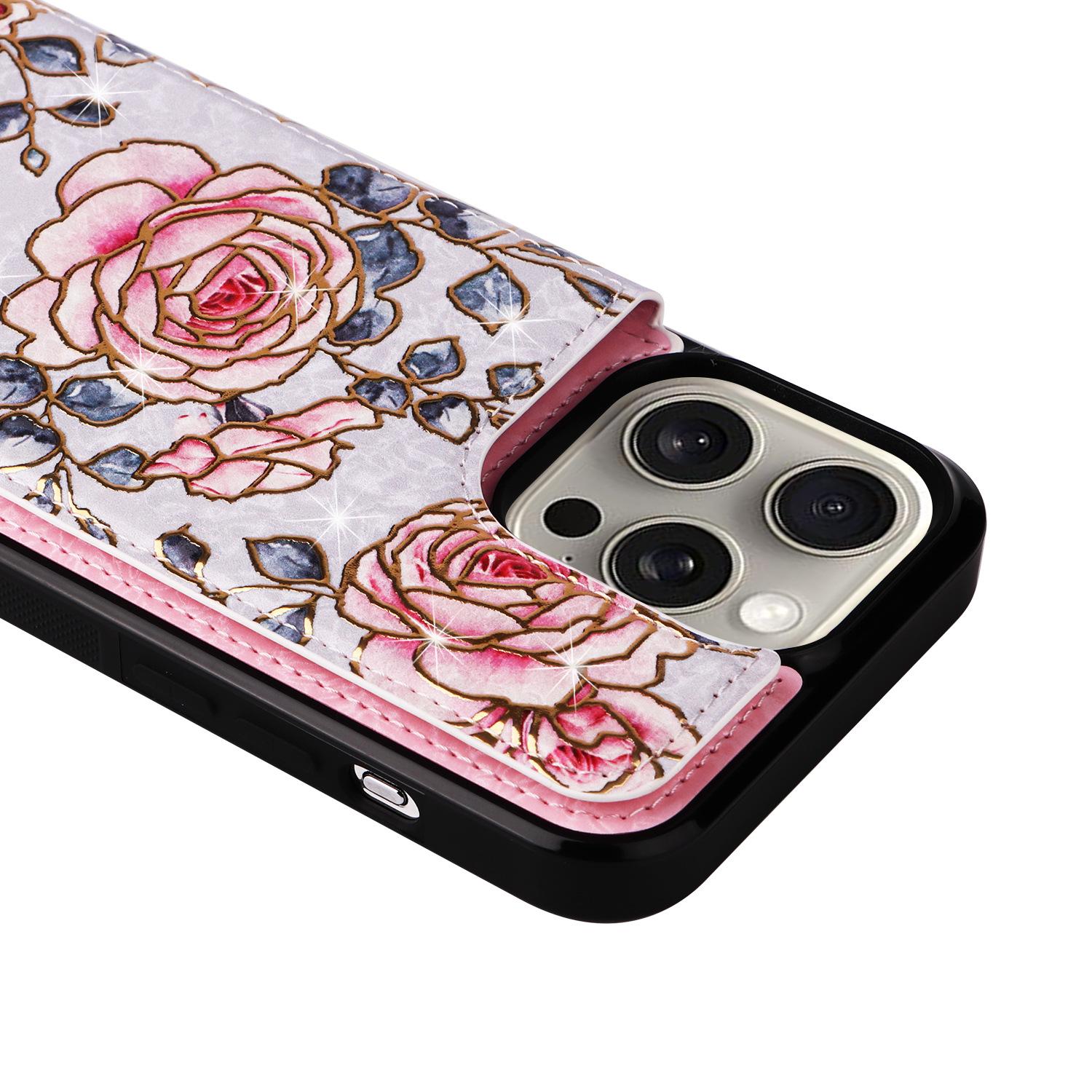 Adecuado para Funda de Teléfono Móvil Iphone16E 17Pro Rosa Doble Hebilla Tarjetero Cubierta Protectora 14Plus Flor