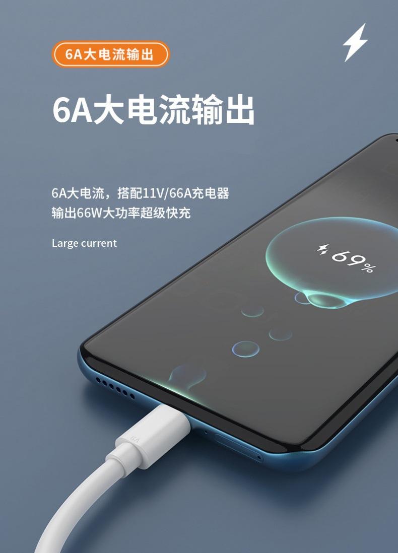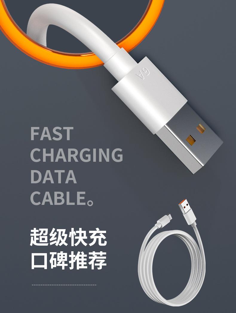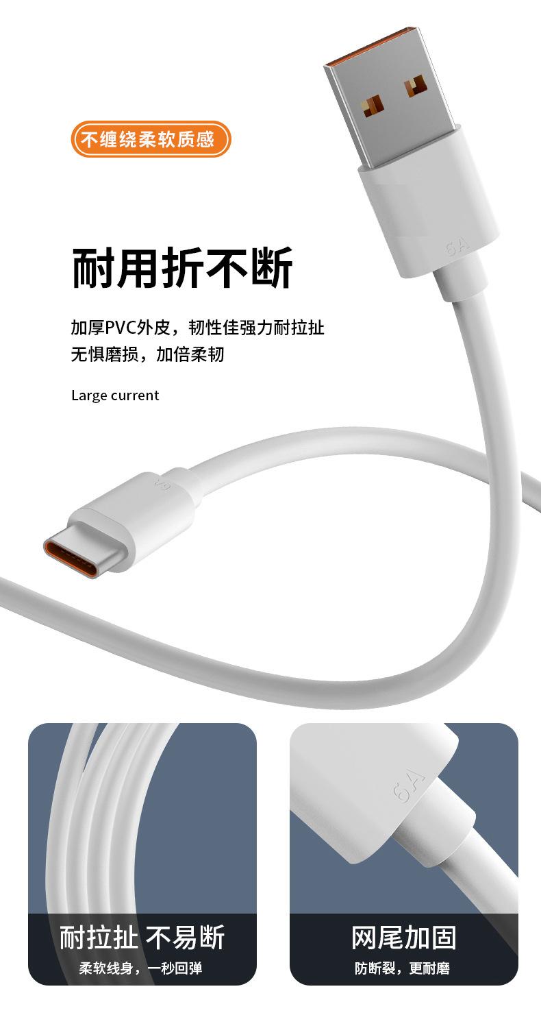 Cable de datos de un solo cabezal tipo C, carga rápida, 6 A, adecuado para teléfonos móviles Huawei, carga rápida, regalo.