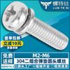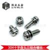 Tornillo de combinación de acero inoxidable 304, cabeza redonda, tres tornillos de combinación, cabeza de disco cruzado, almohadilla de resorte plana M2M3M4M5M6M10