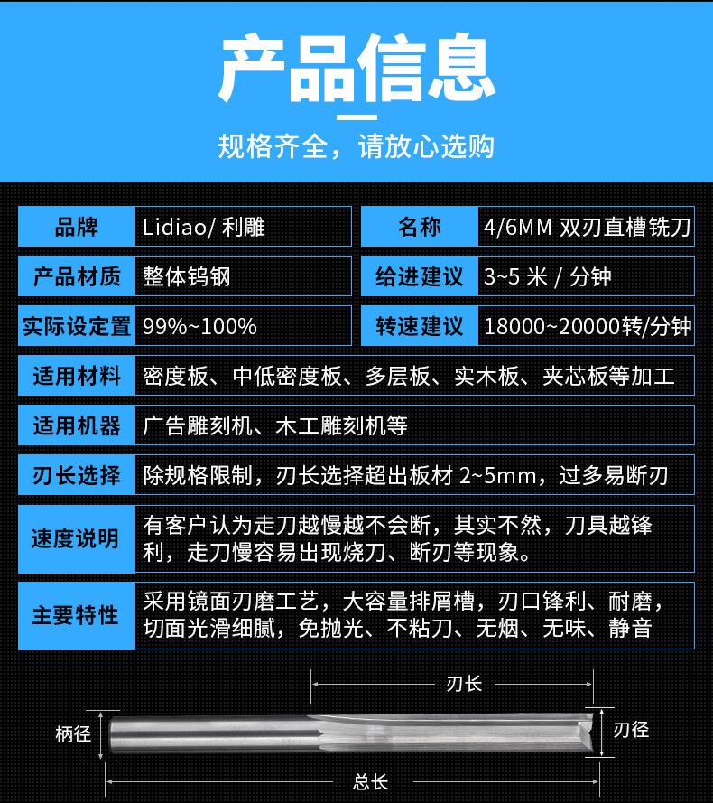 Acero de Tungsteno 4mm 6mm Fresa Recta de Doble Filo Cuchillo para Tallado de Madera Cuchillo Flotante Herramienta para Máquina de Tallado por Computadora Cuchillo de Madera