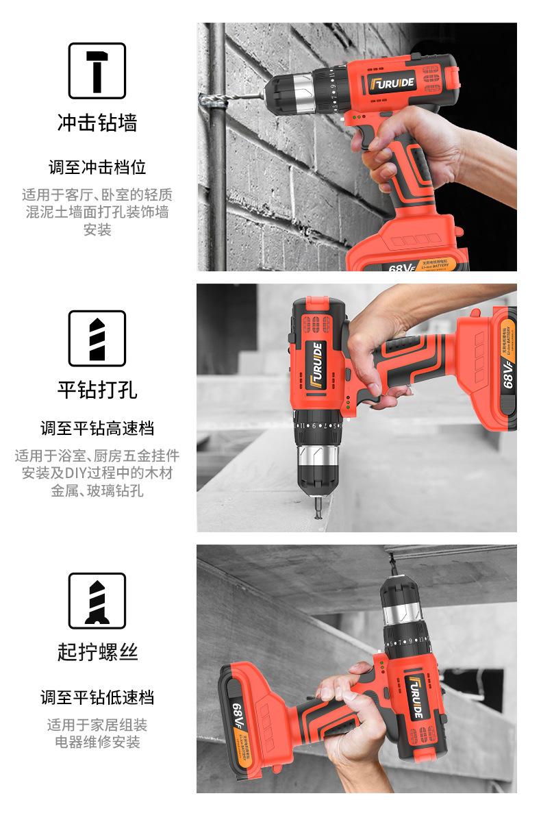 Taladro de Impacto Inalámbrico Destornillador Eléctrico Taladro Eléctrico Multifuncional Taladro de Pistola Herramienta Eléctrica Batería de Litio Juego para el Hogar