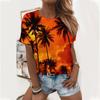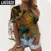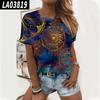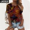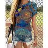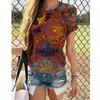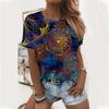 Nueva camiseta de manga corta de verano para mujer con estampado digital retro y cuello redondo de Amazon Cross-border Trade