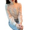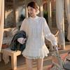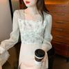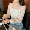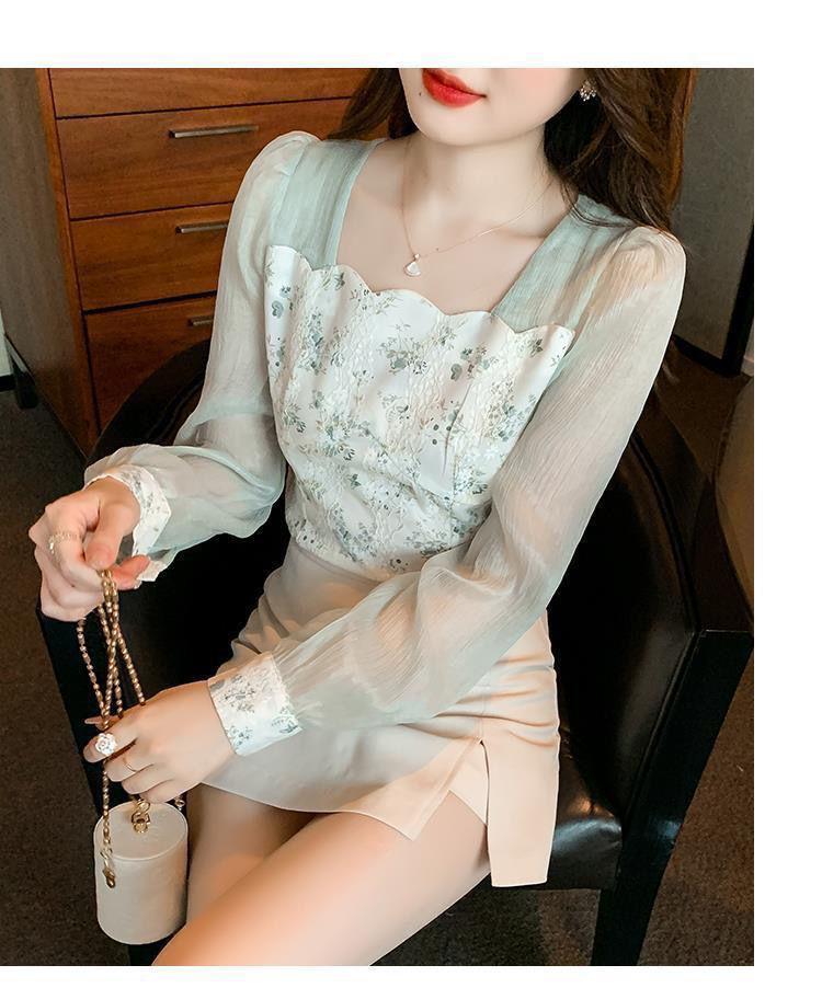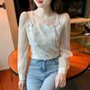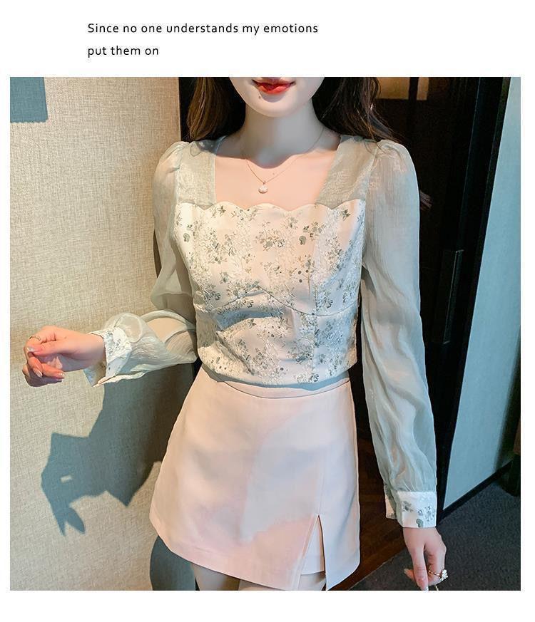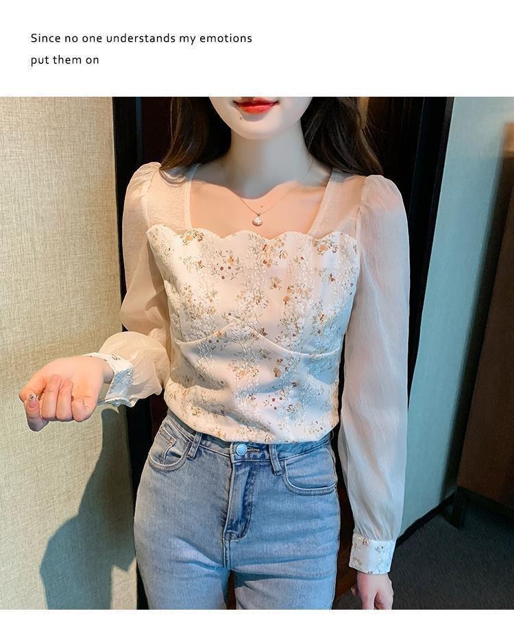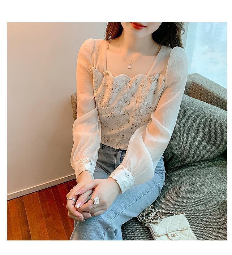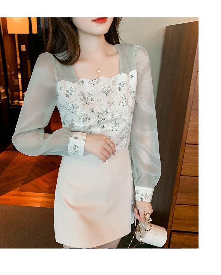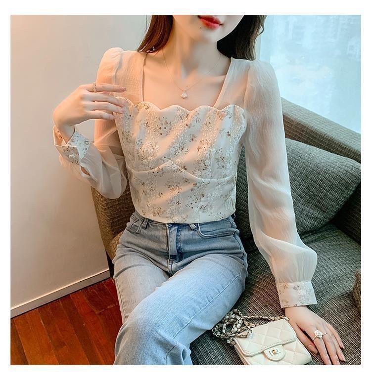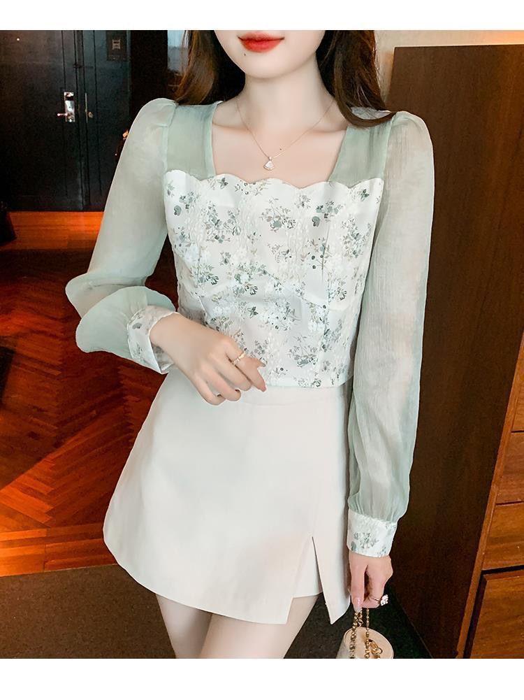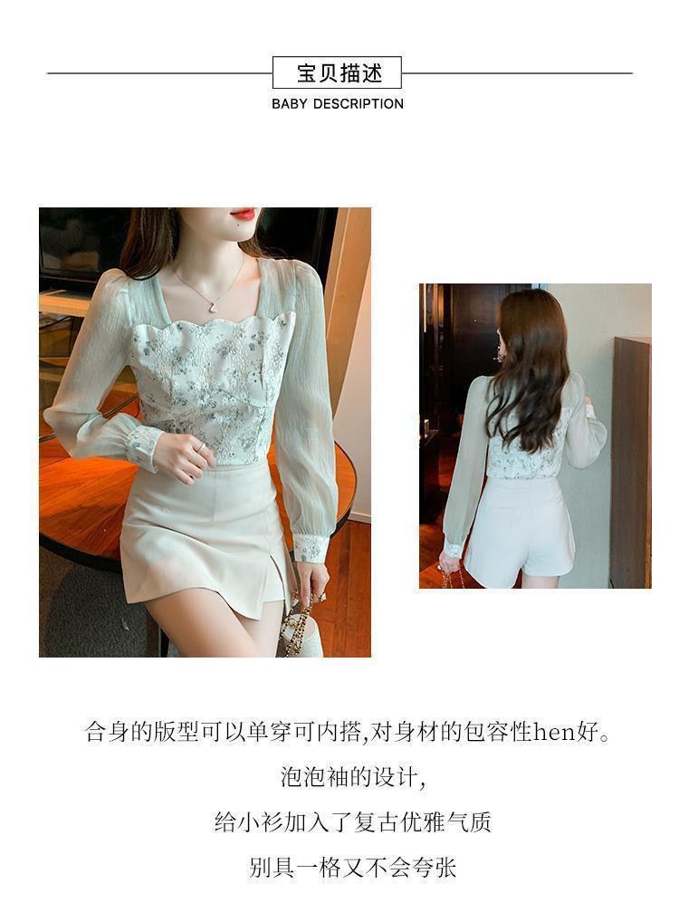 Camisa de gasa con costuras de encaje para mujer, primavera y verano 2024, nueva, pequeña, fresca, dulce, cuello cuadrado, elegante, floral, blusa pequeña