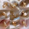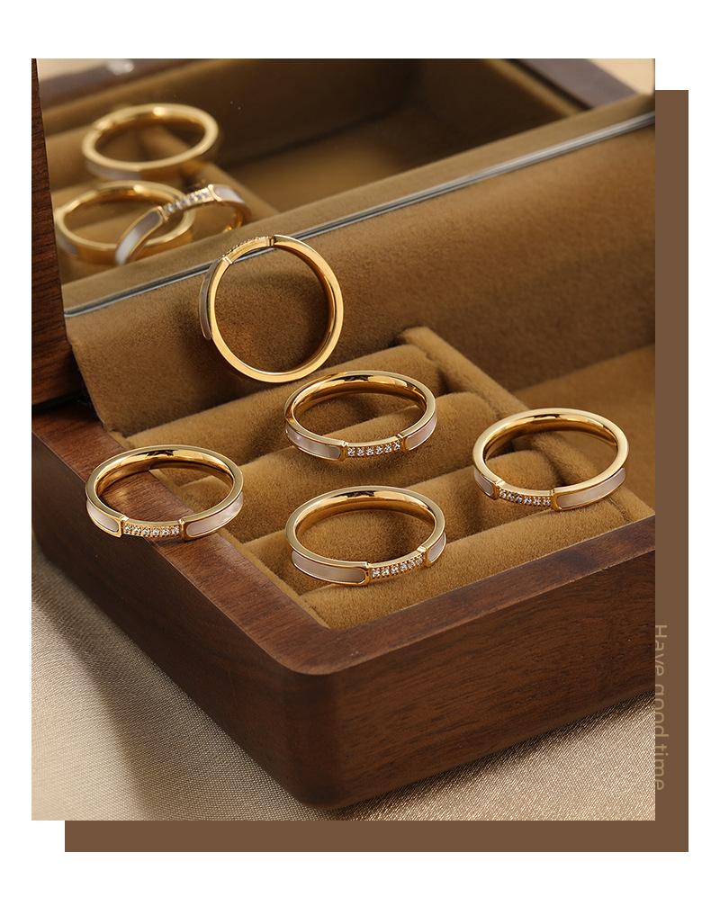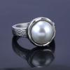 Anillo de Estilo Palacio Retro con Incrustaciones de Diamantes y Seis Perlas de Nácar Blanco, Anillo de Dedo Índice de Acero de Titanio de Lujo Ligero, Moderno y Personalizado