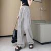 Pantalones casuales de pierna ancha para mujer, pantalones a rayas, nuevos pantalones de verano de cintura alta con cordón, pantalones rectos adelgazantes, pantalones pequeños y delgados