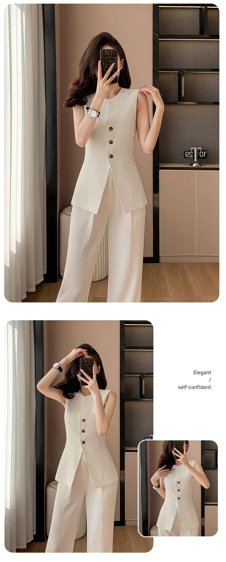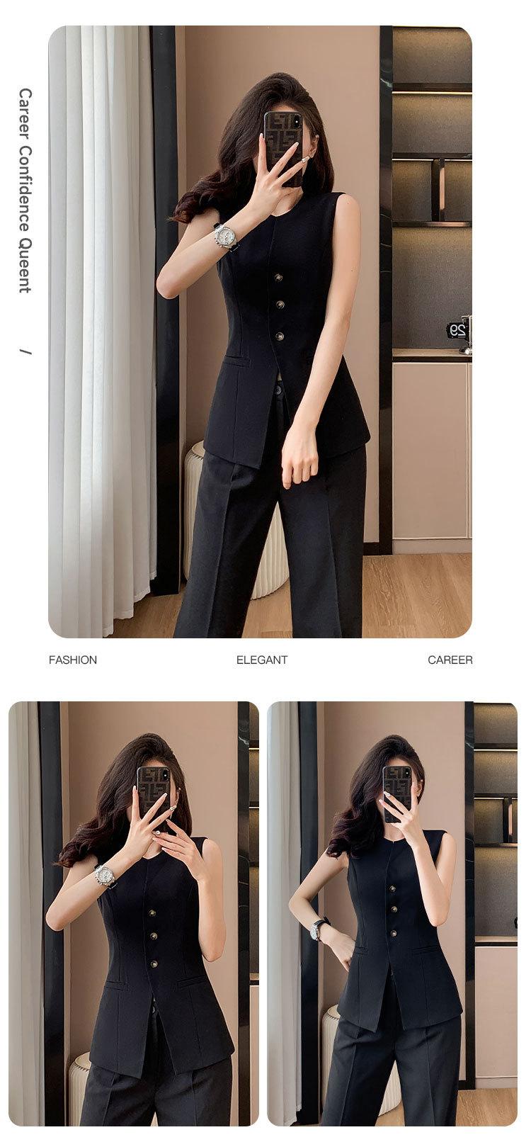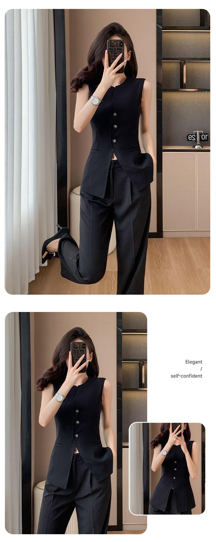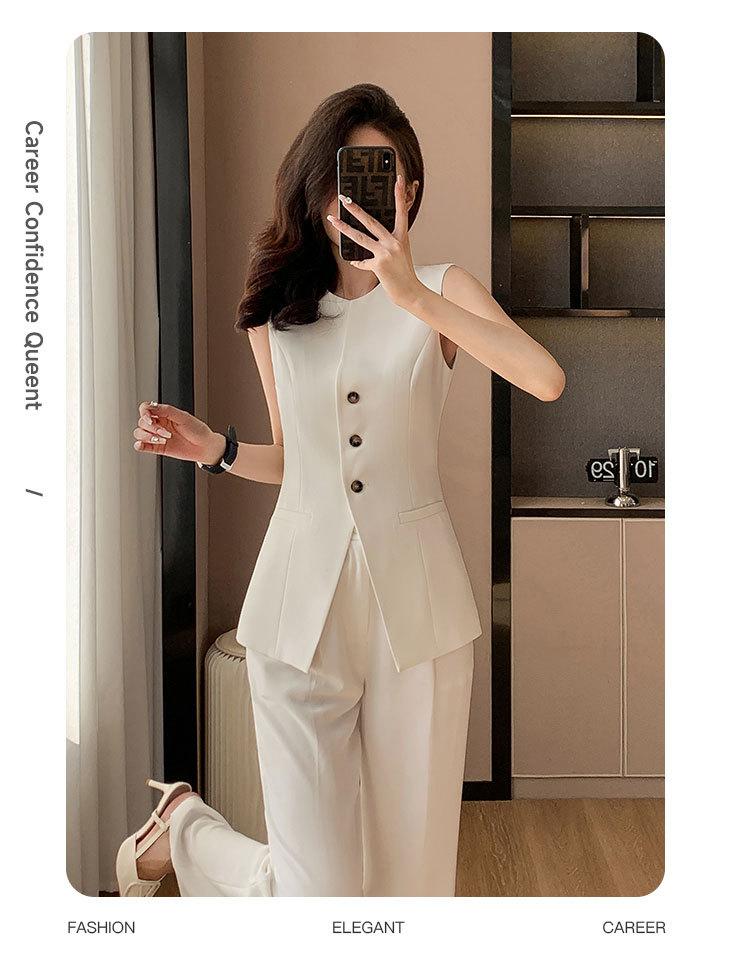 Chaleco elegante de cuello redondo para mujer, primavera y verano 2024, nuevo chaleco profesional sin mangas de un solo pecho para ir al trabajo