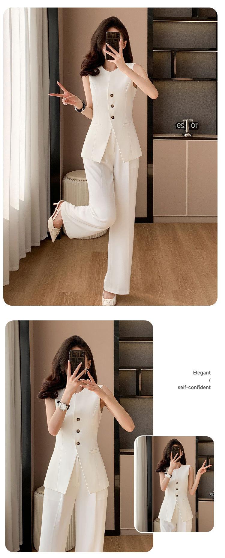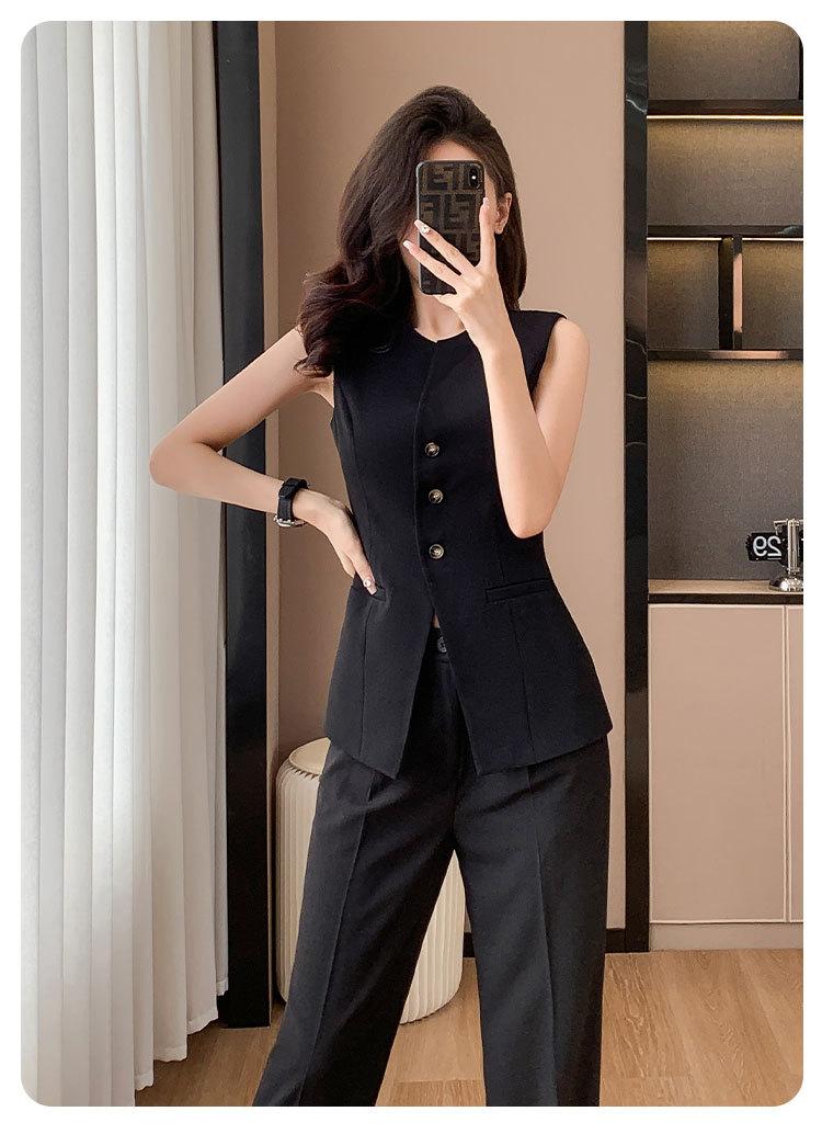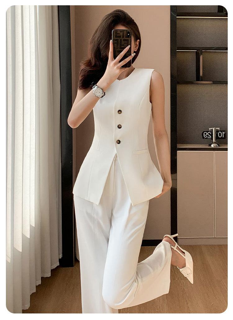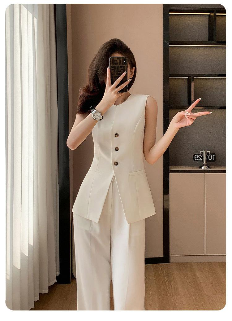 Chaleco elegante de cuello redondo para mujer, primavera y verano 2024, nuevo chaleco profesional sin mangas de un solo pecho para ir al trabajo