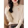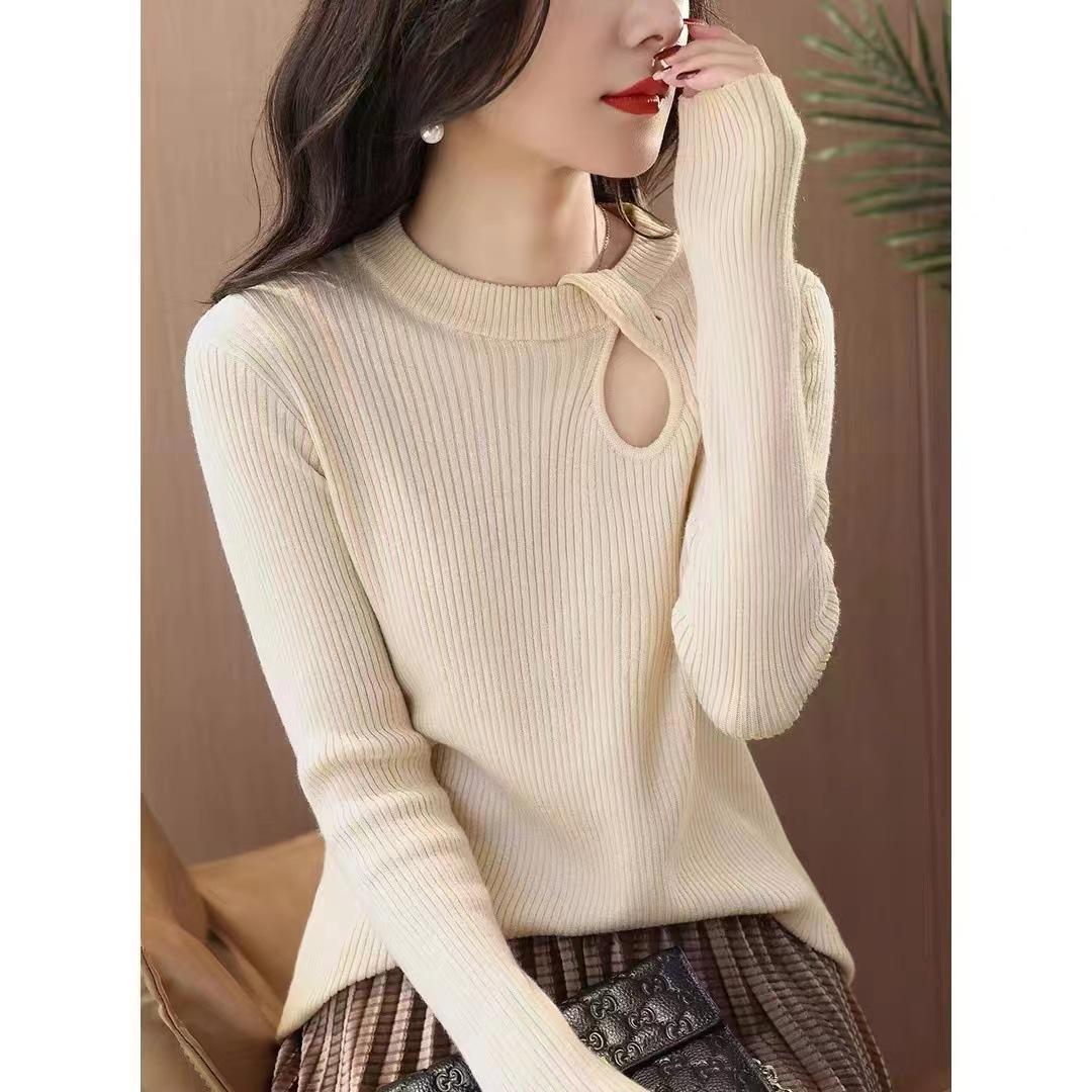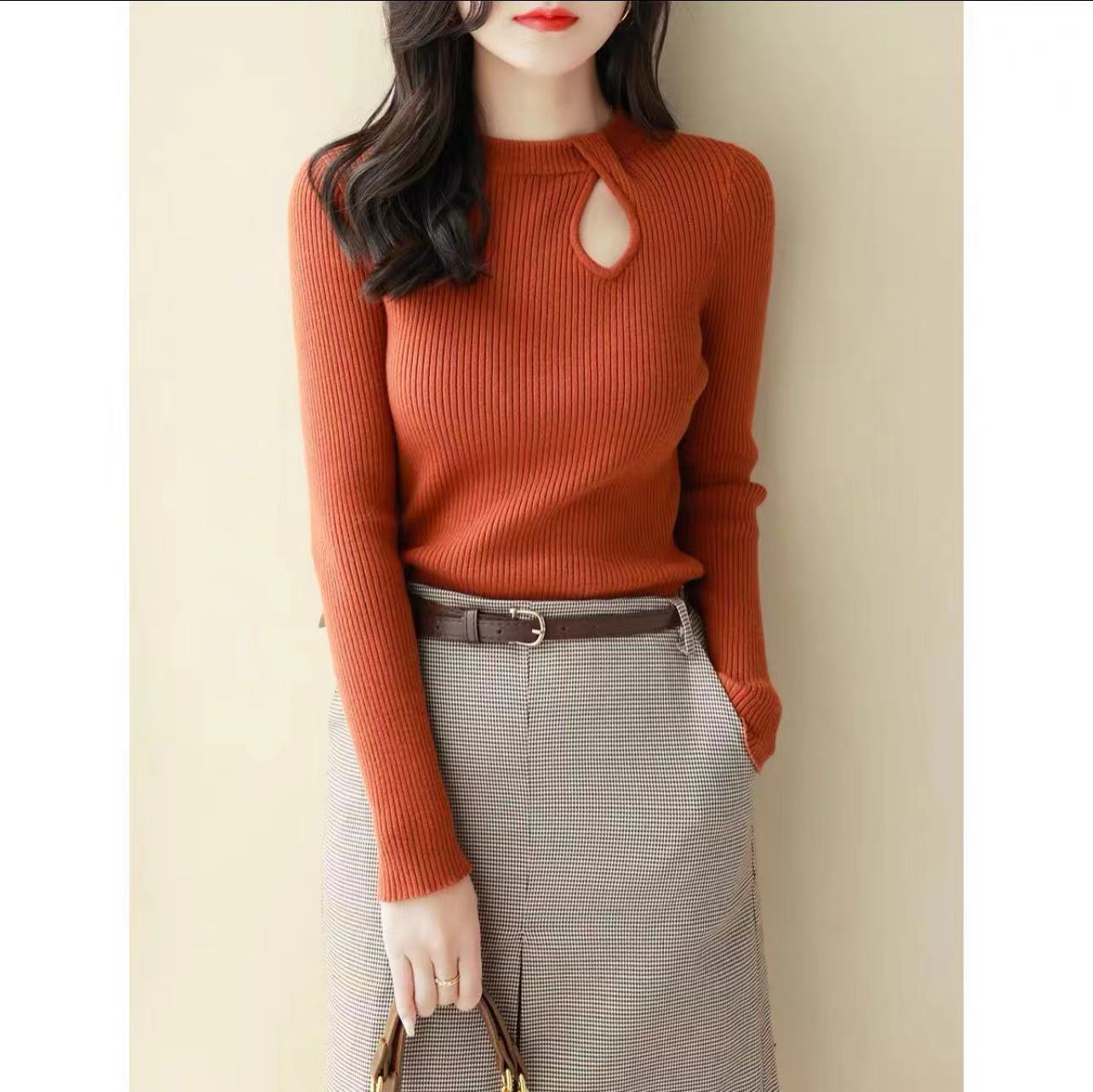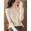 Tejidos de punto de manga larga japoneses y coreanos Otoño e Invierno Nuevo Estilo 2025 Moda Cuello redondo medio alto Anudados Tops ajustados para usar debajo