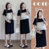 Vestido de Maternidad Verano Nuevo Estilo Coreano Moda Cuello en V Cintura Adelgazante Look Cubre Vientre Suelto Talla Grande Vestido de Maternidad