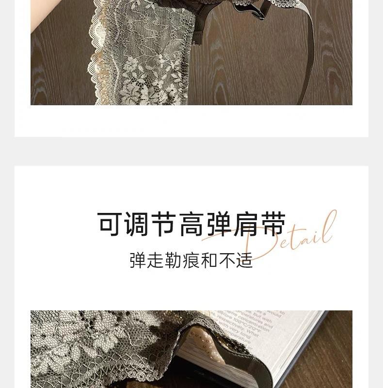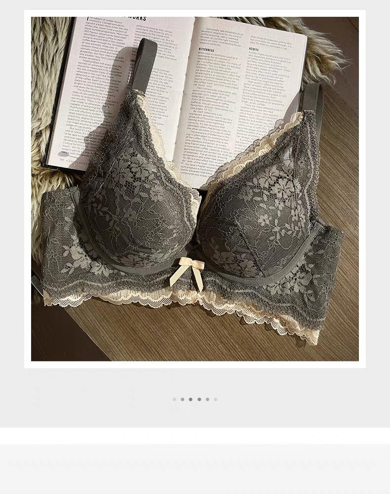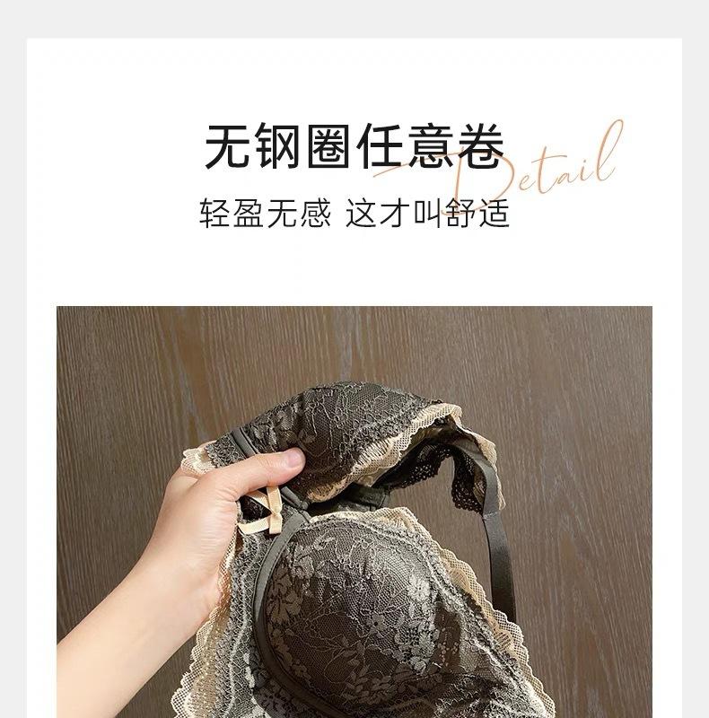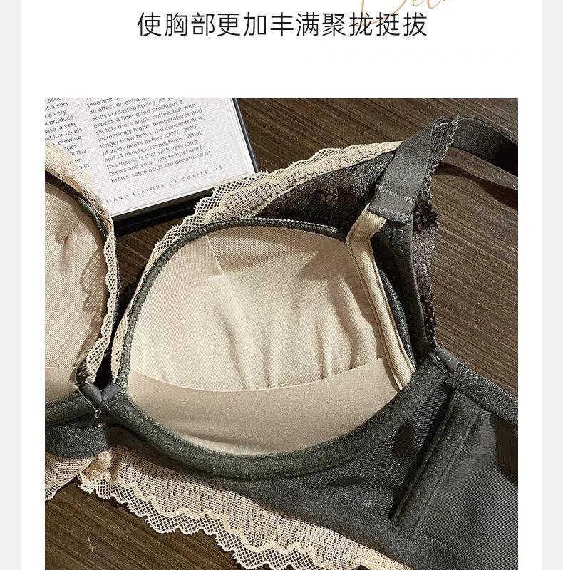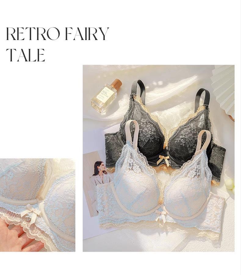 715 Conjunto de ropa interior de encaje estilo francés vintage, cómodo, sin aros, de grosor medio, sexy, con push-up y cierre lateral para mujer