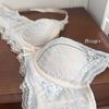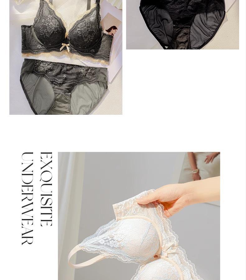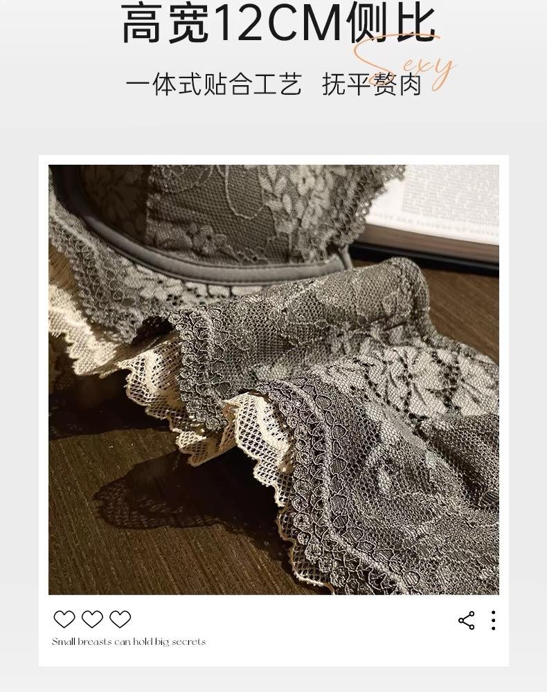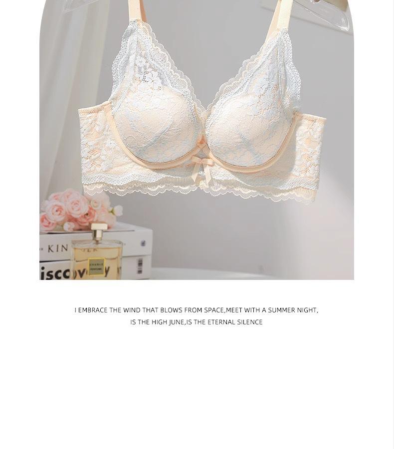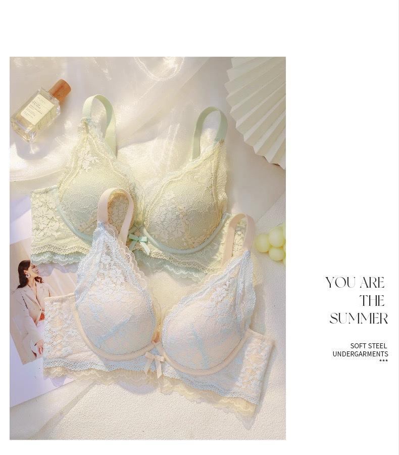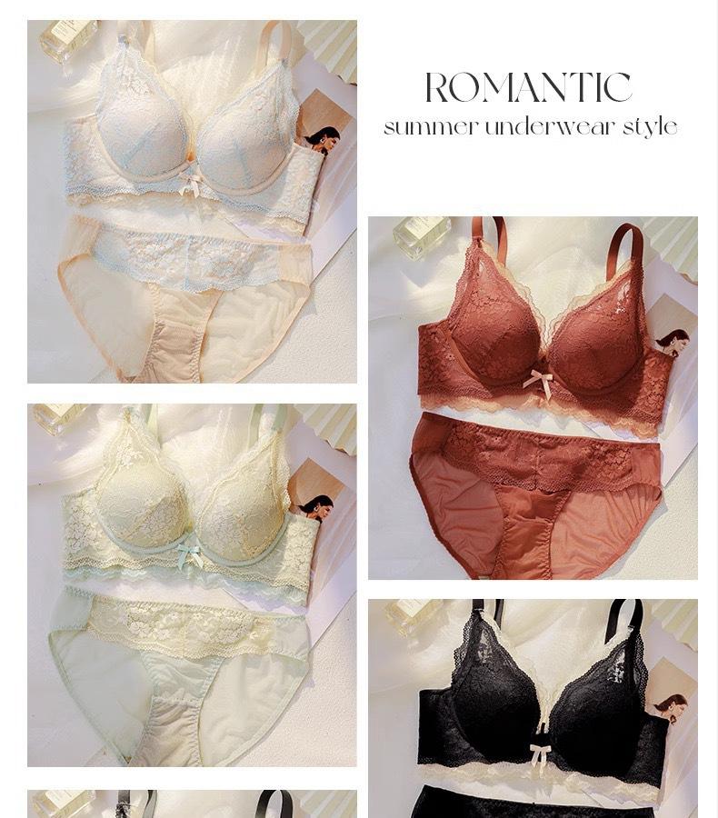 715 Conjunto de ropa interior de encaje estilo francés vintage, cómodo, sin aros, de grosor medio, sexy, con push-up y cierre lateral para mujer