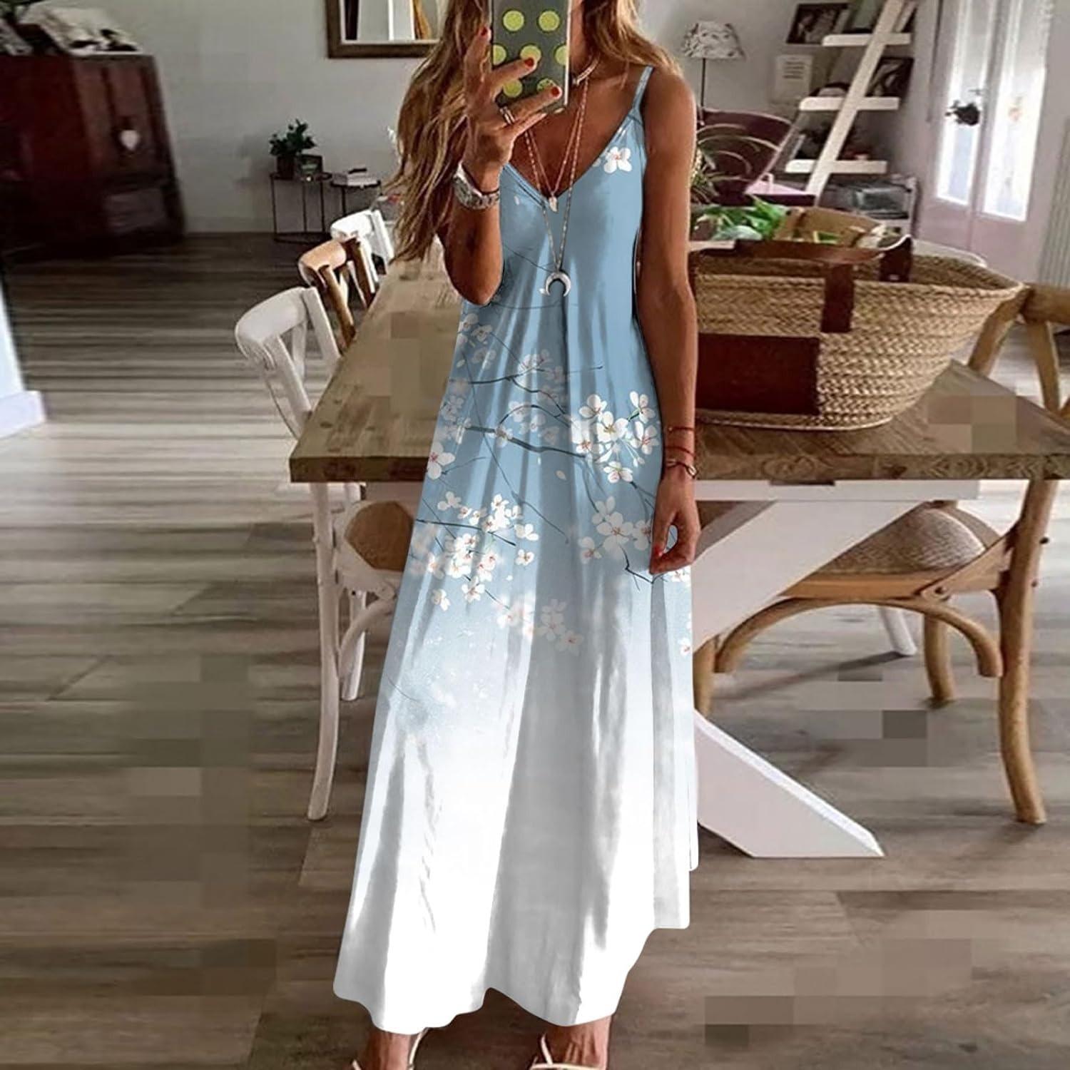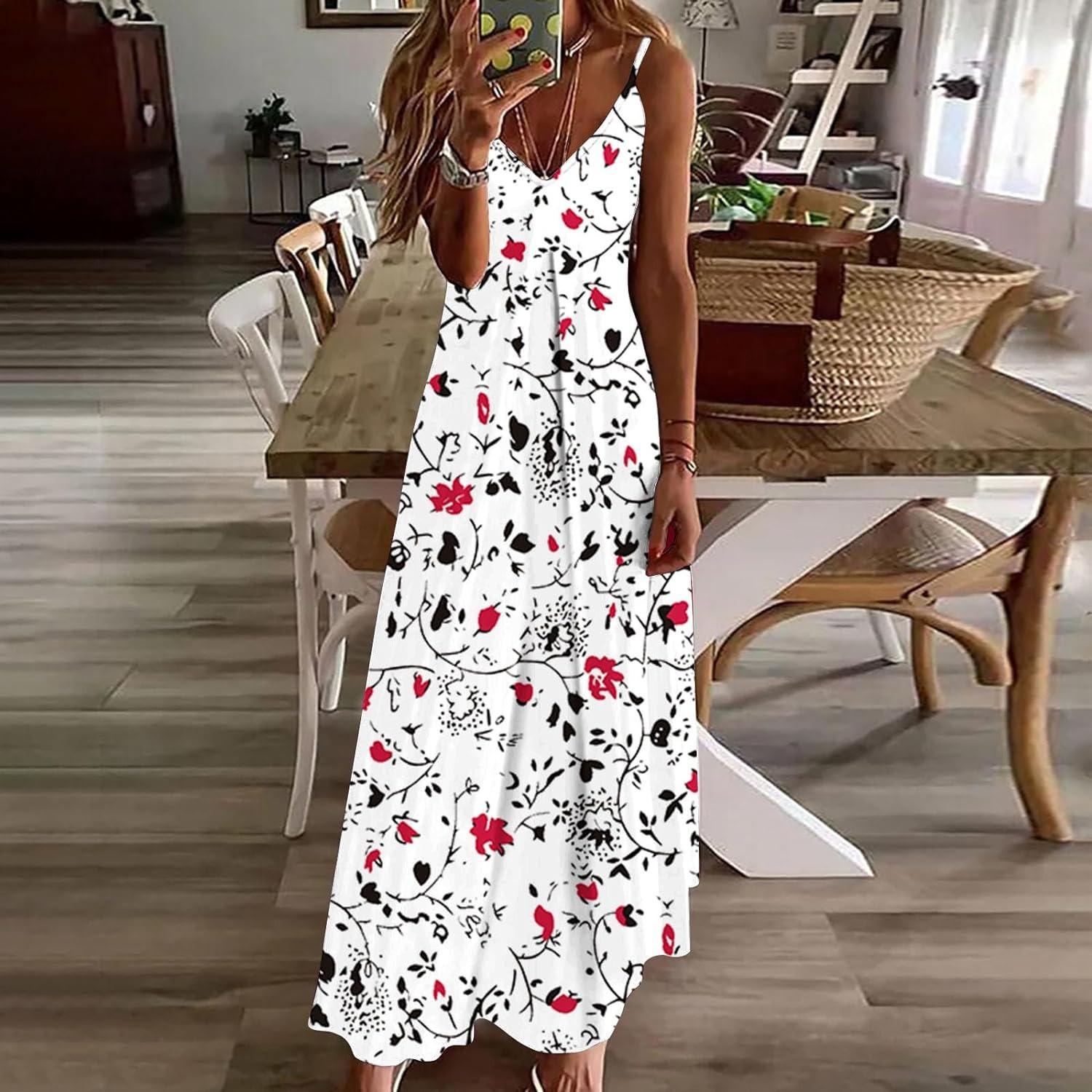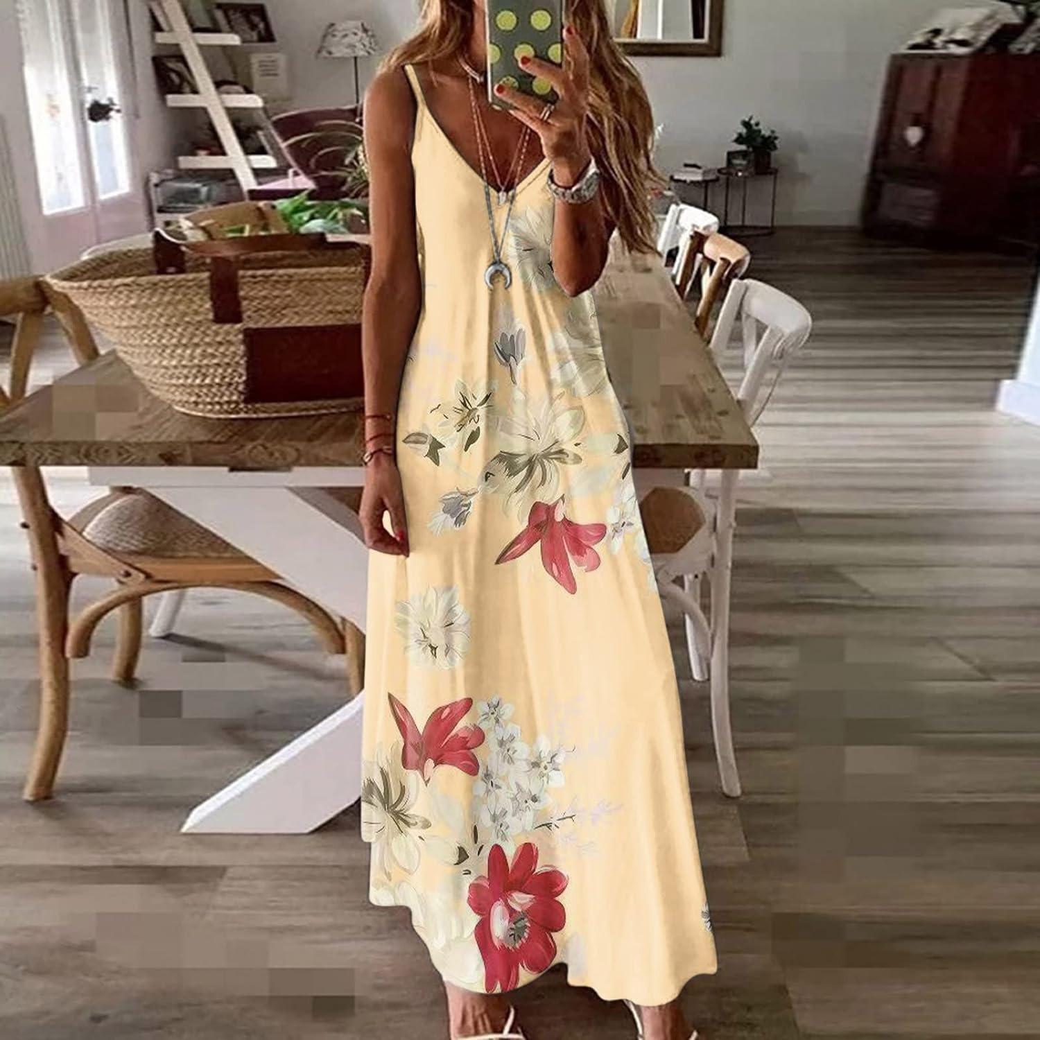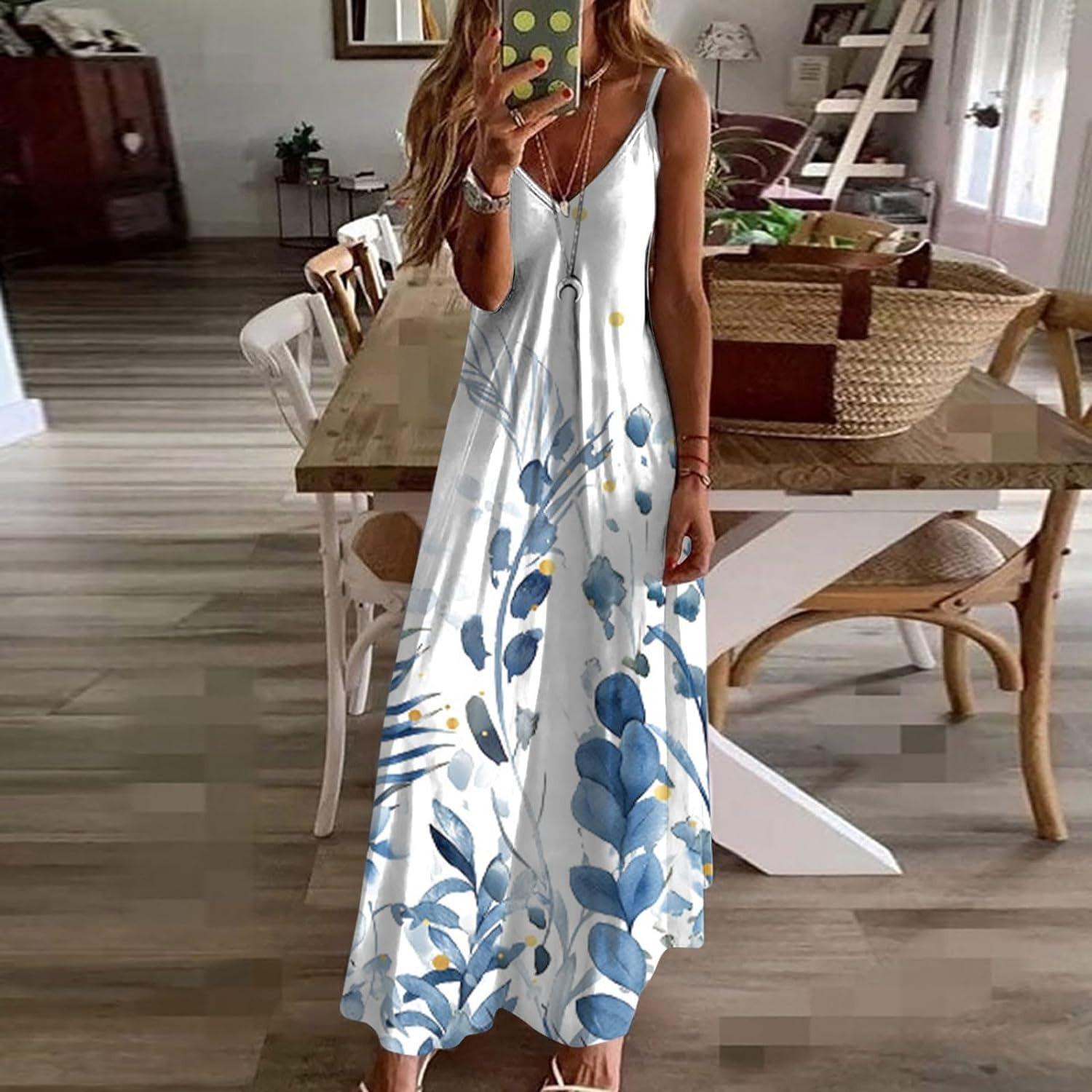 Vestido largo elegante de verano con tirantes finos para mujer, talla grande, para vacaciones, playa, holgado