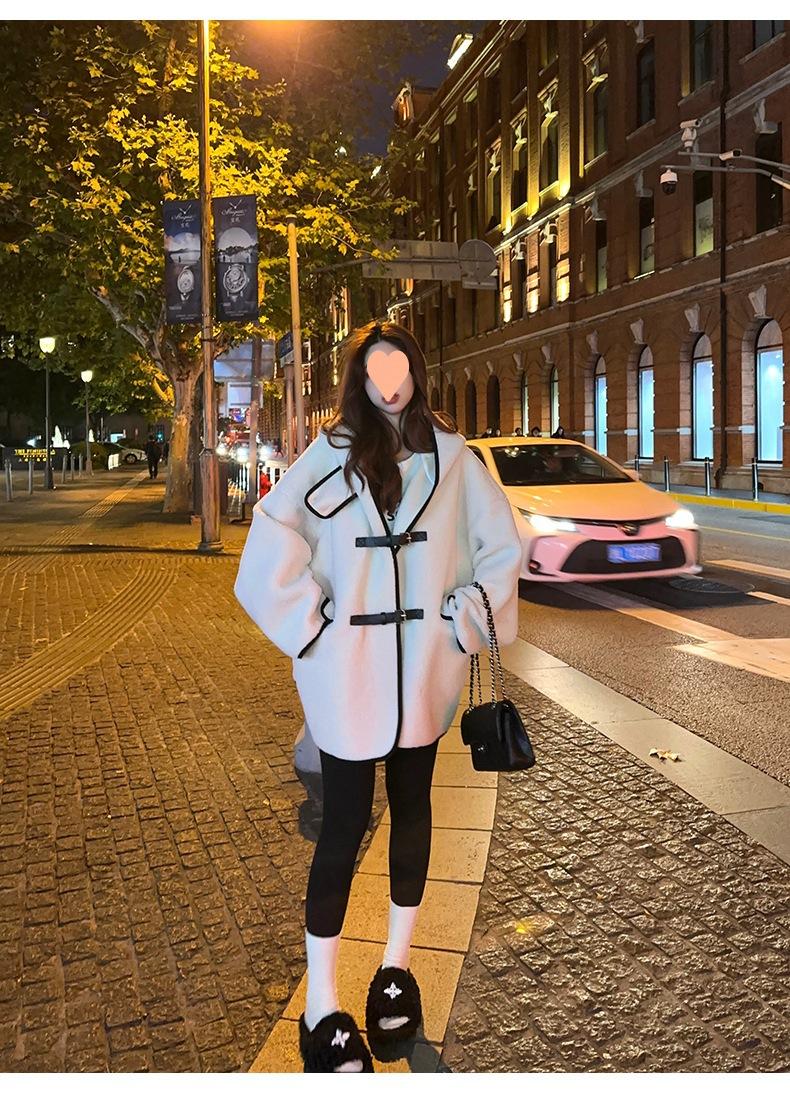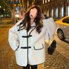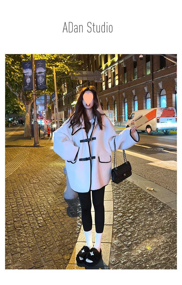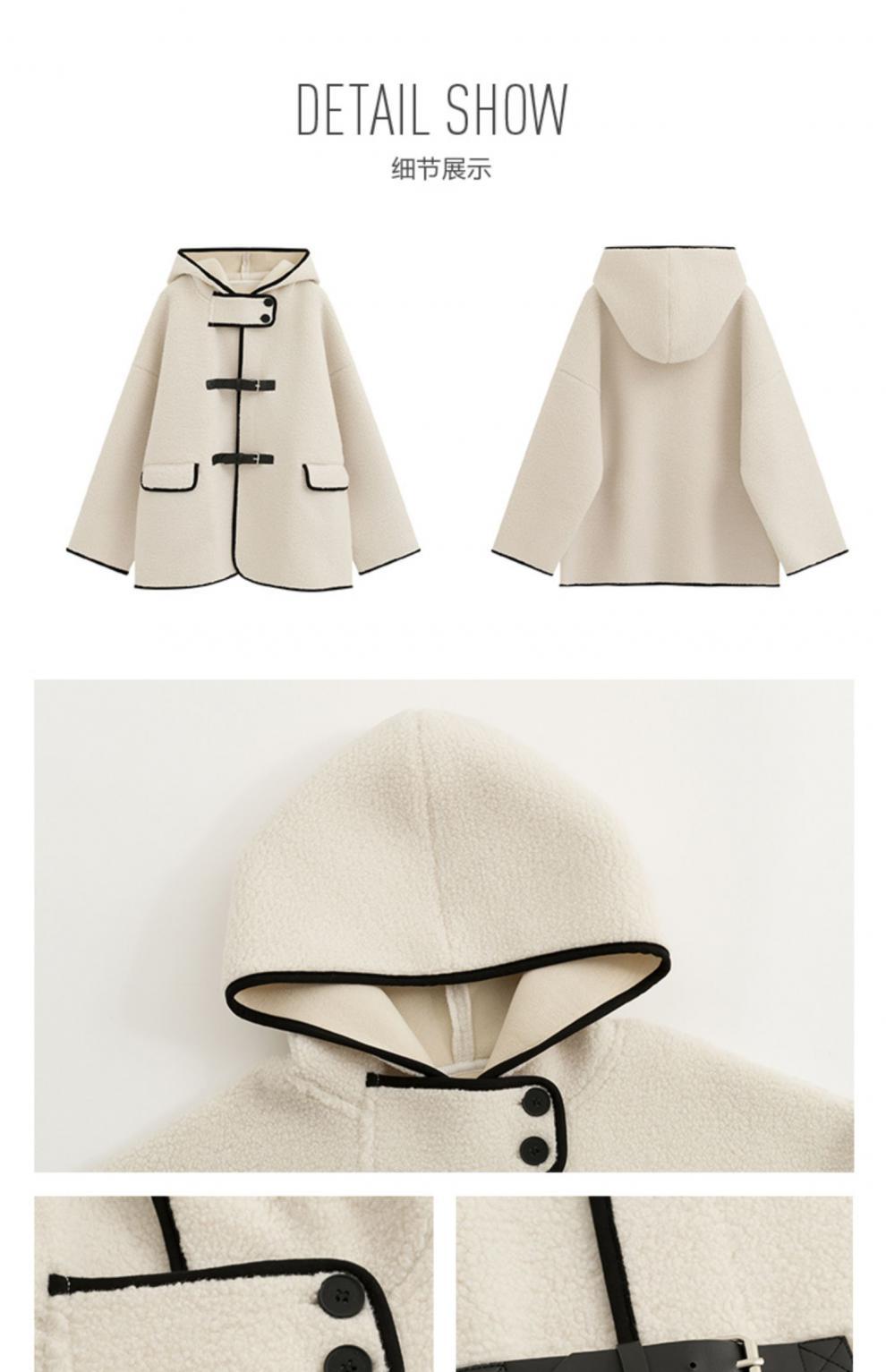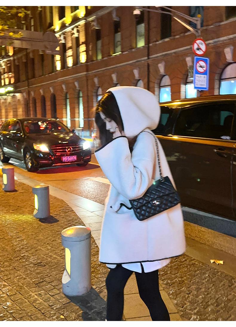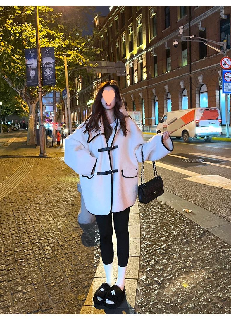Abrigo casual moderno con capucha de lana de cordero invierno Nuevo estilo coreano holgado con hebilla de cuero cálido diseño blanco sobretodo