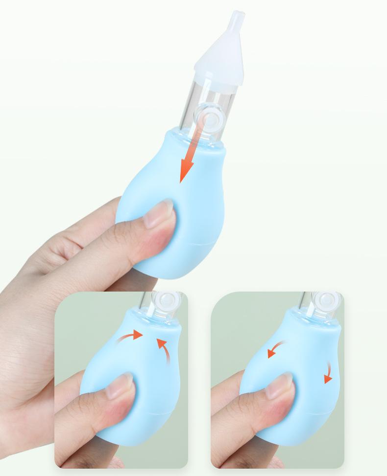 Modo de empleo: Para usarlo, apriete primero la bomba de plástico, inserte el aspirador nasal en las fosas nasales del bebé y luego suelte la bomba de goma para succionar la mucosidad. Se recomienda usarlo después de que el bebé se duerma.