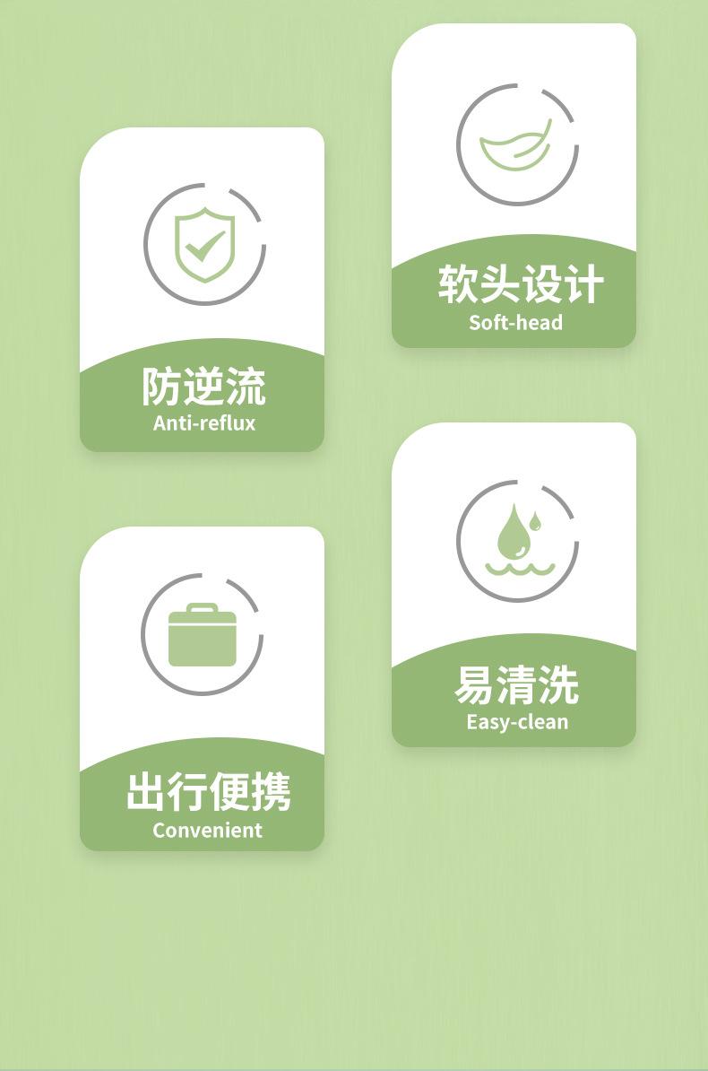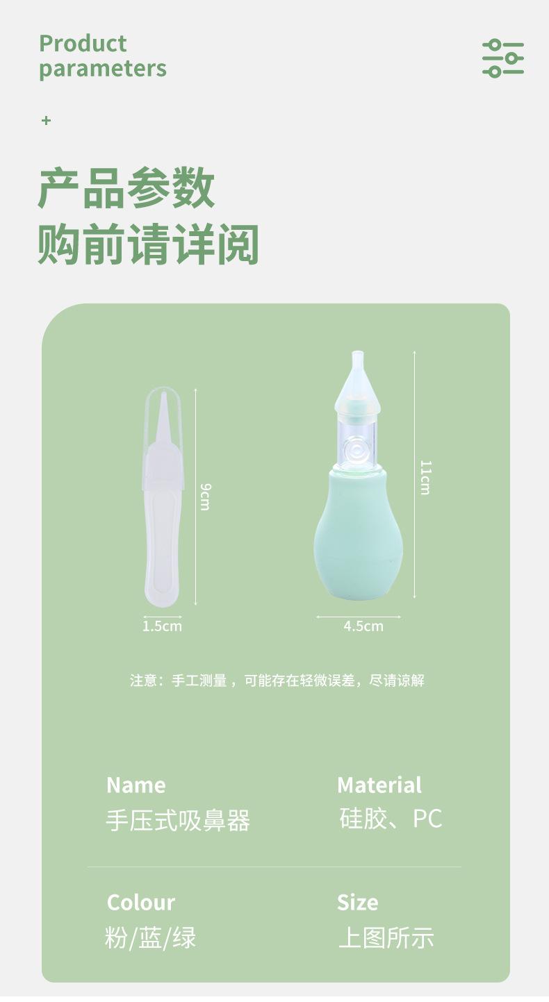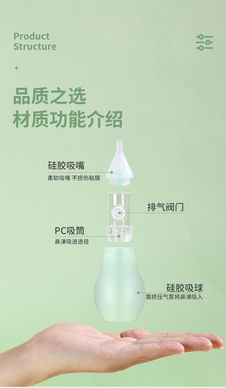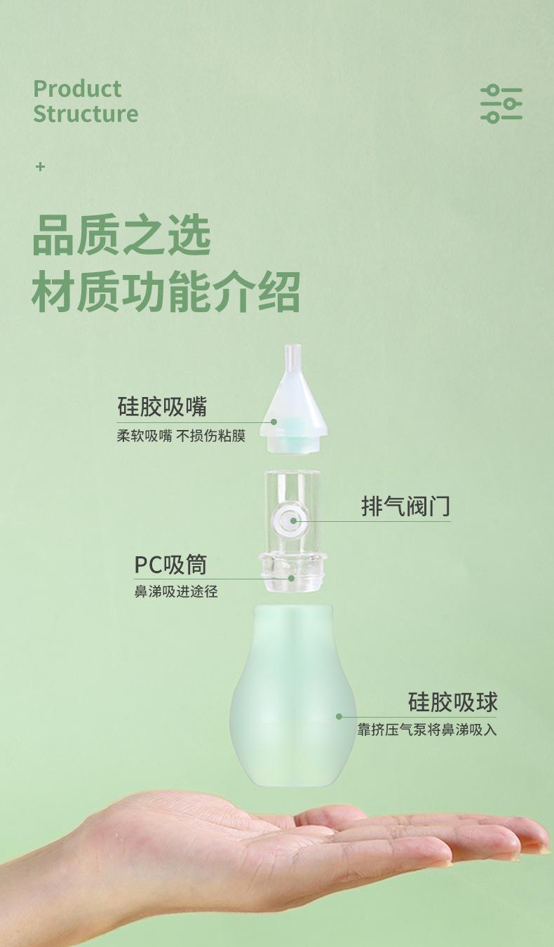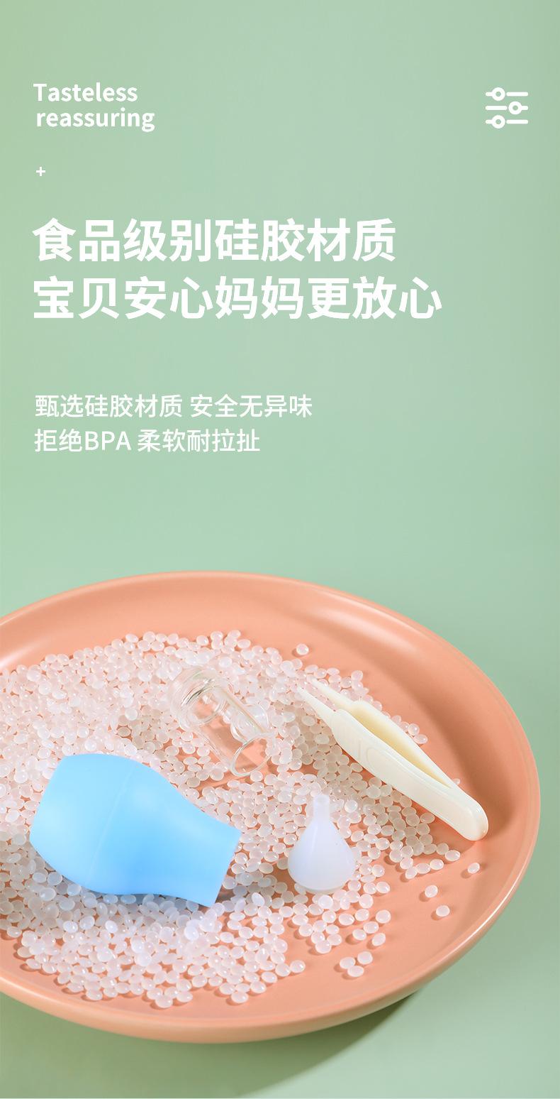 La punta nasal está hecha de silicona líquida de grado alimenticio. Es atóxica e insípida, no contiene impurezas, es suave, no tiene esquinas afiladas y no daña al bebé. La cubierta antipolvo está hecha de policarbonato importado de Alemania, que no solo bloquea el polvo, sino que también previene eficazmente la contaminación bacteriana de la punta nasal, lo que la hace segura e higiénica.