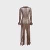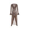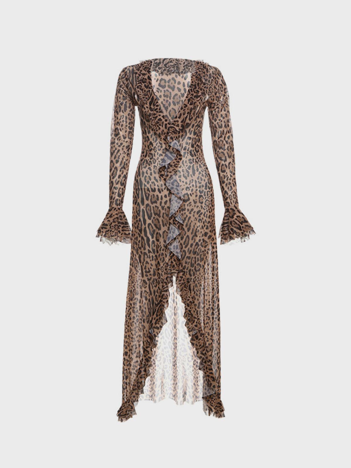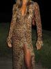 Otoño 2024 Nuevo Comercio Exterior Transfronterizo Europeo y Americano Chicas Sexys Calientes Vestido Elegante de Leopardo de Corte Entallado con Escote en V Profundo para Mujer