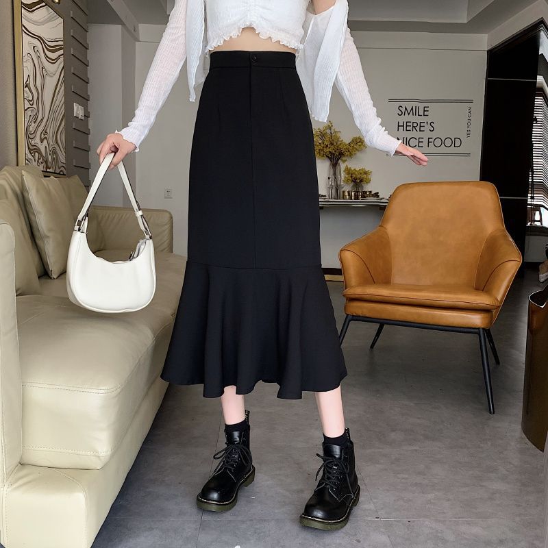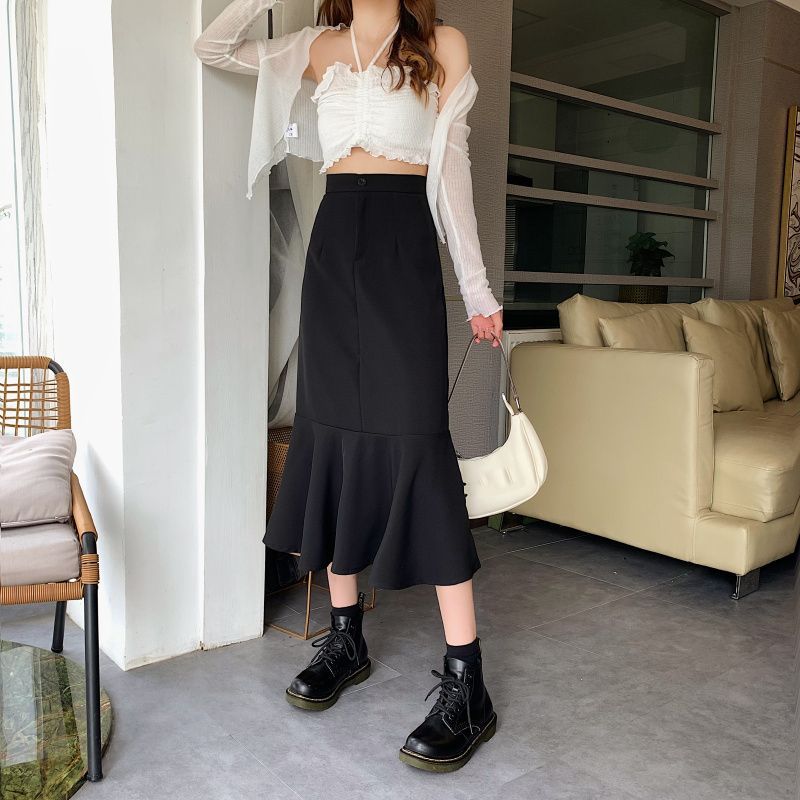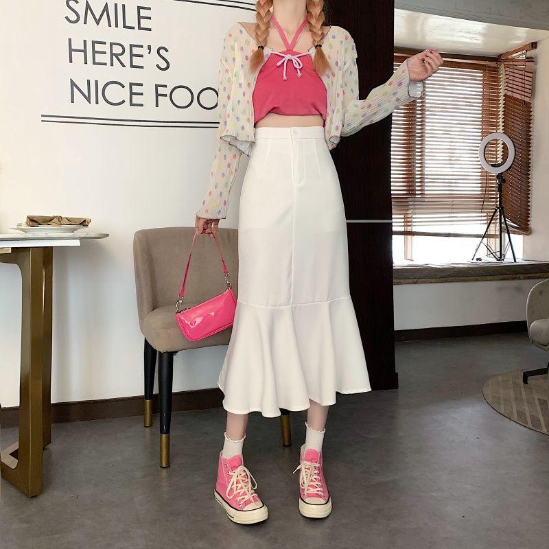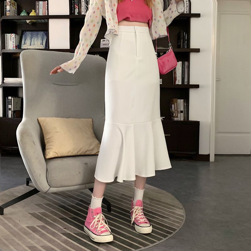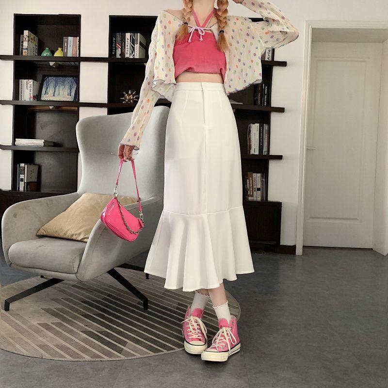 Falda de mujer estilo coreano de verano 2024, nueva falda de cola de pez, falda adelgazante de cintura alta, falda con volantes que combina con todo, elegante