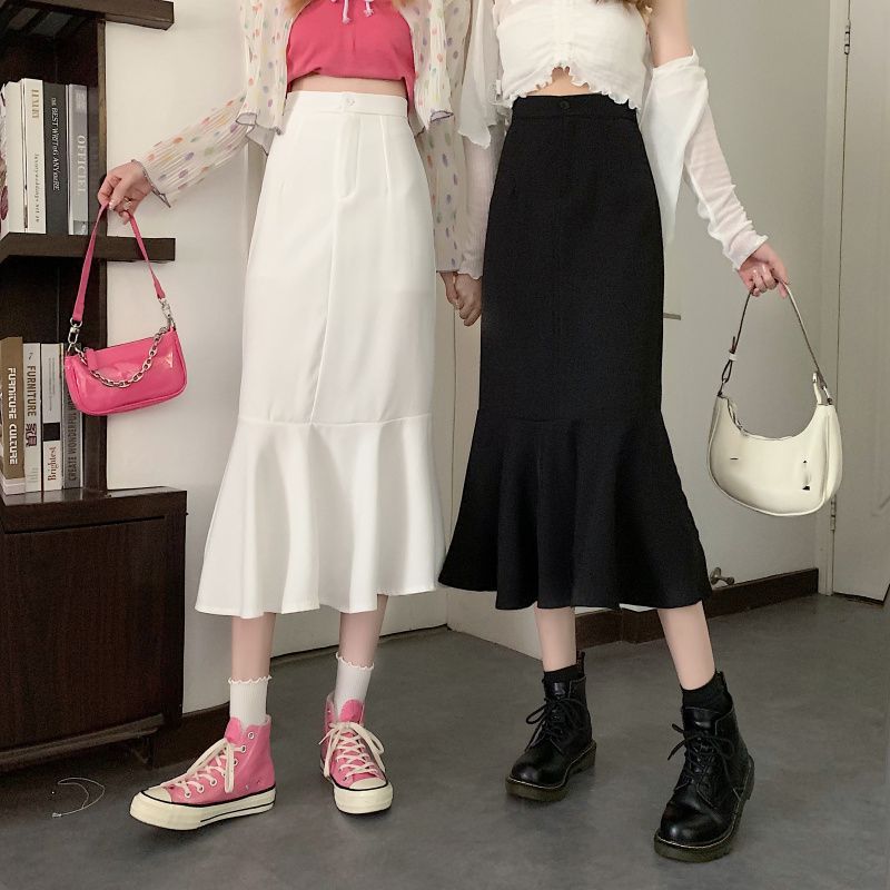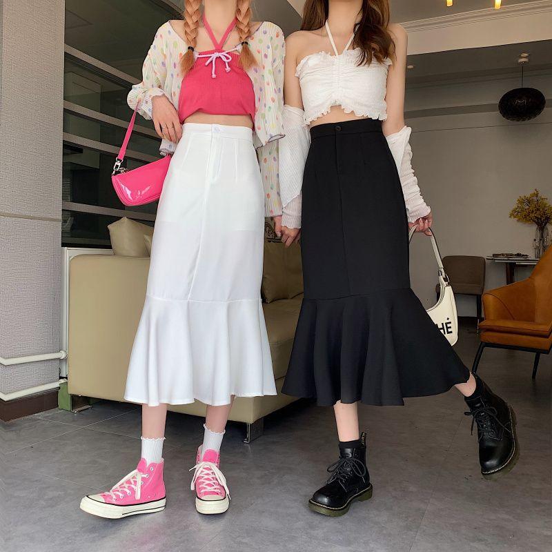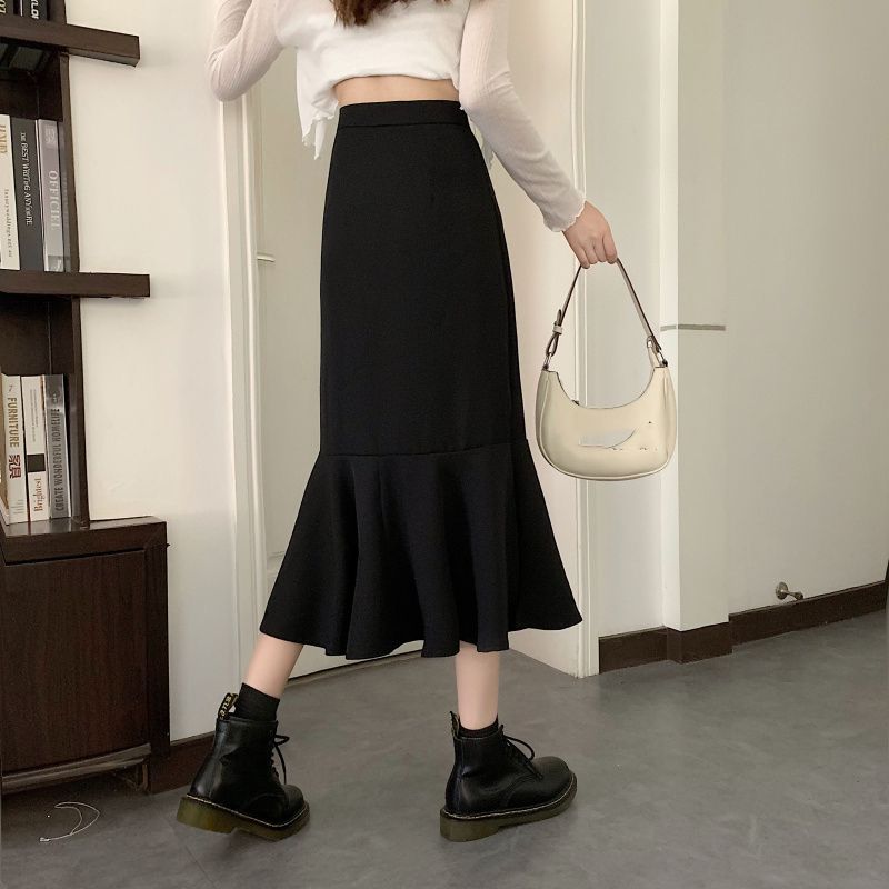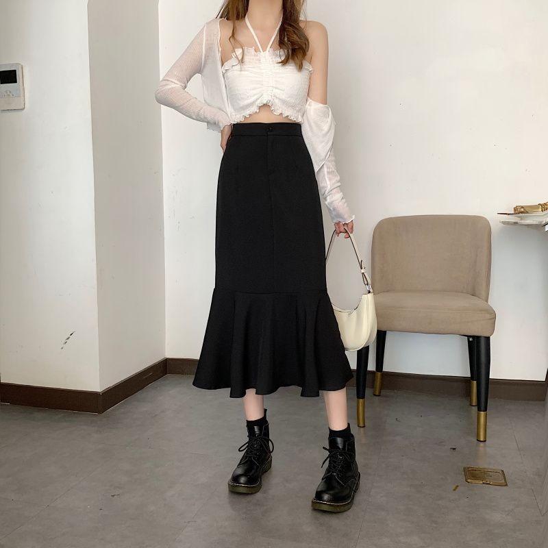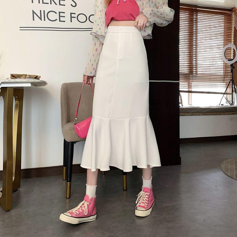 Falda de mujer estilo coreano de verano 2024, nueva falda de cola de pez, falda adelgazante de cintura alta, falda con volantes que combina con todo, elegante