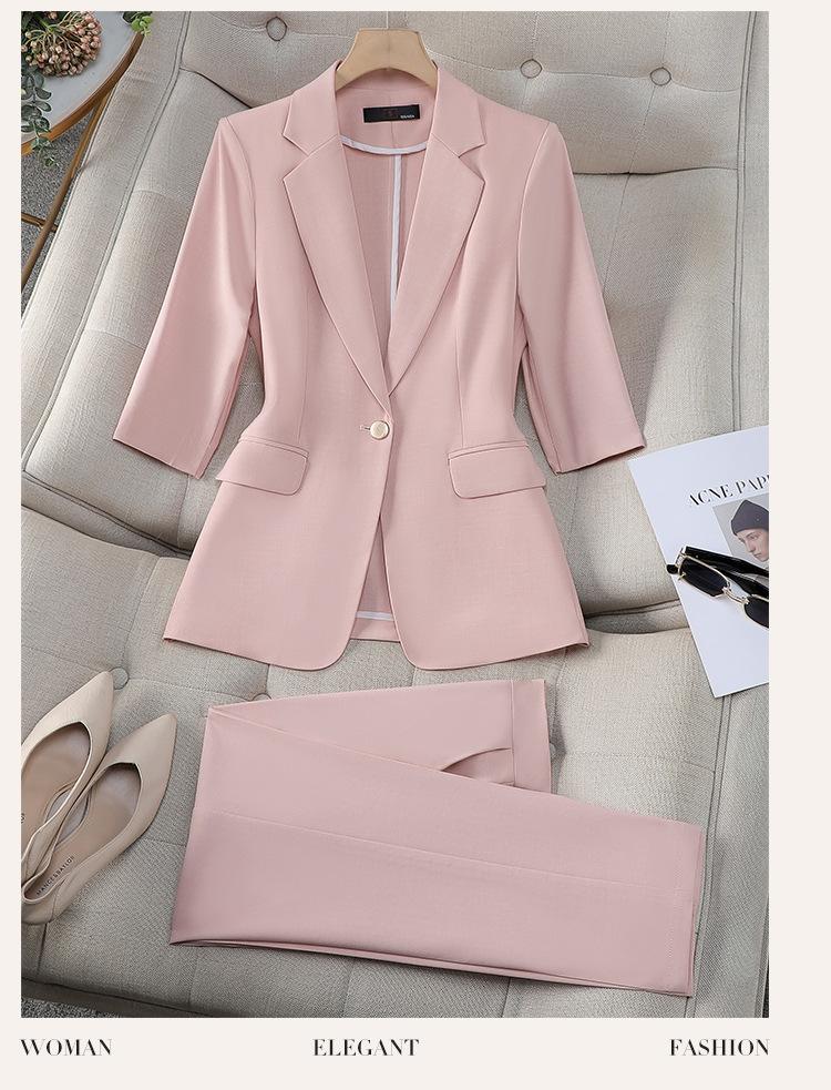 Abrigo de Traje de Manga Media Ropa de Negocios para Mujer Vestido 2024 Primavera y Verano Nuevo Traje traje Ropa de Trabajo para Salón de Belleza de Mujer