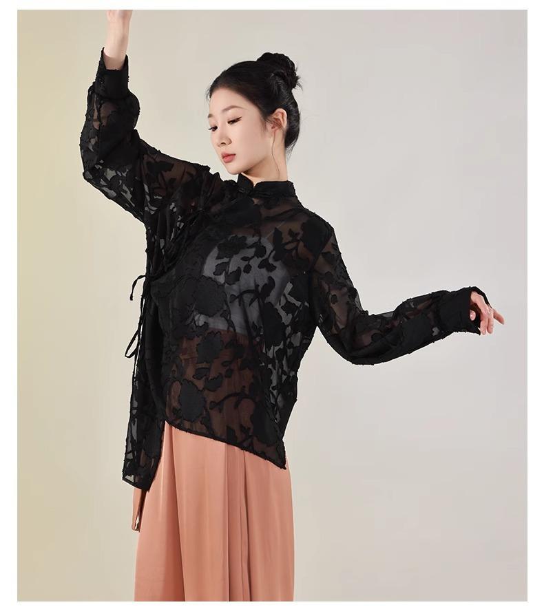 Ropa de Baile Ropa de Práctica Femenina Adulta Hanfu Chino Cuello Elegante Flecos Danza Moderna Danza Folclórica Ropa de Actuación