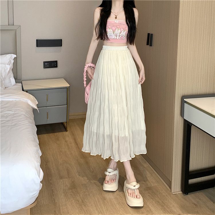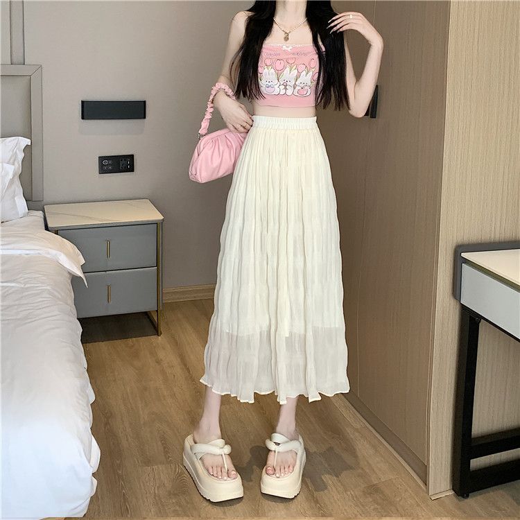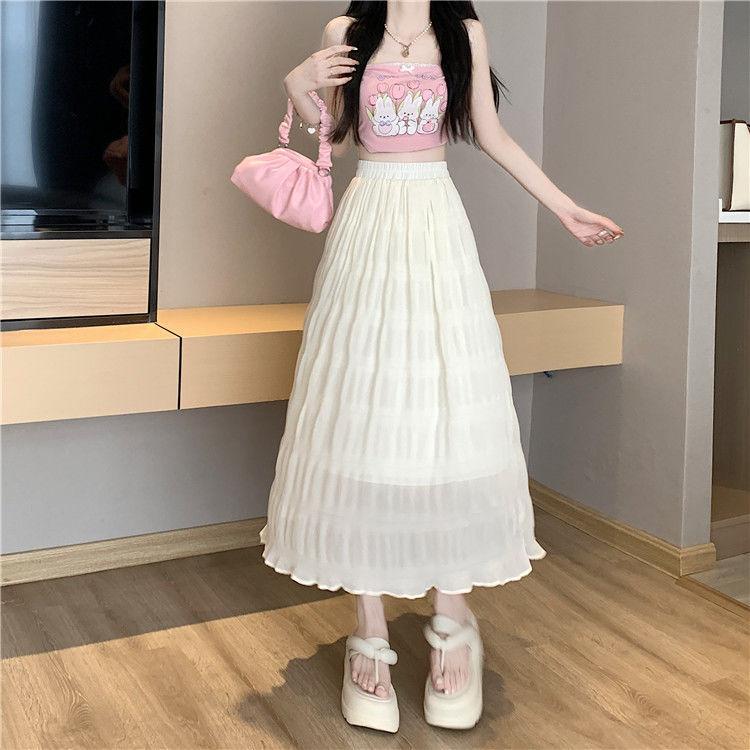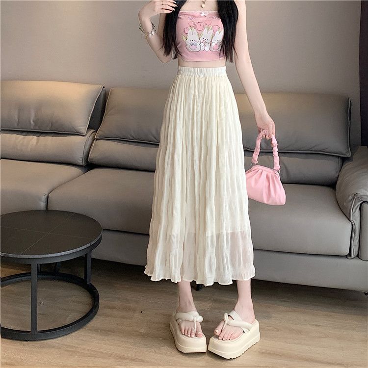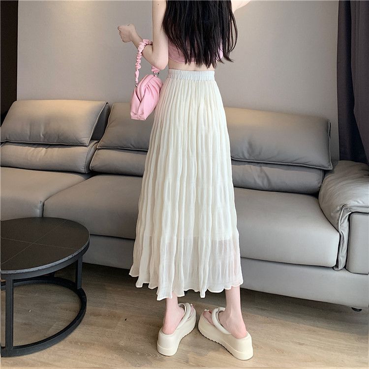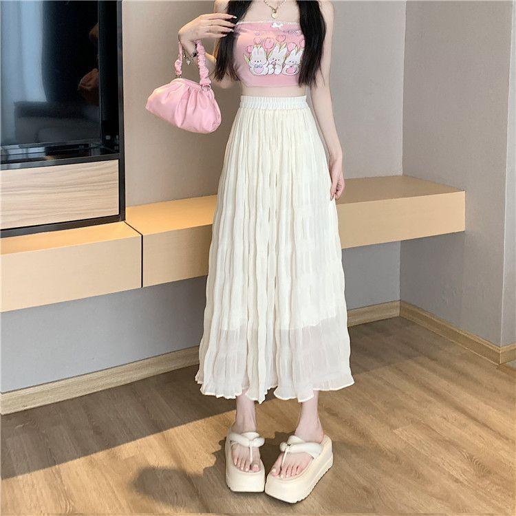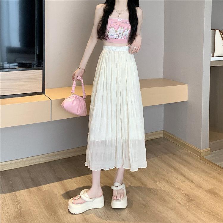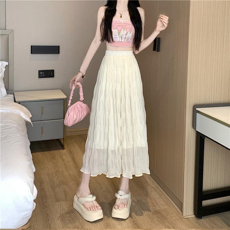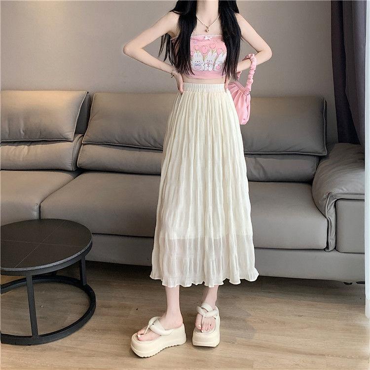 Falda plisada de gasa color albaricoque, falda tipo paraguas, falda plisada de longitud media, cintura alta, corte A, para mujer, primavera y verano, 2024