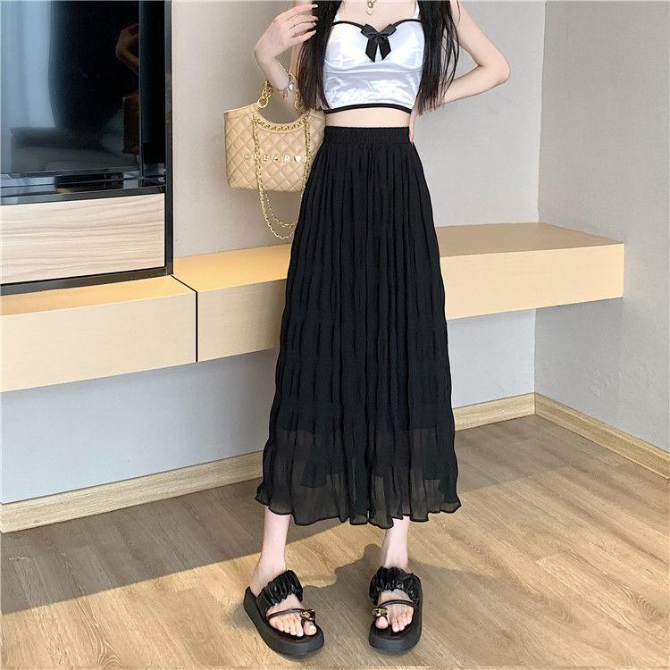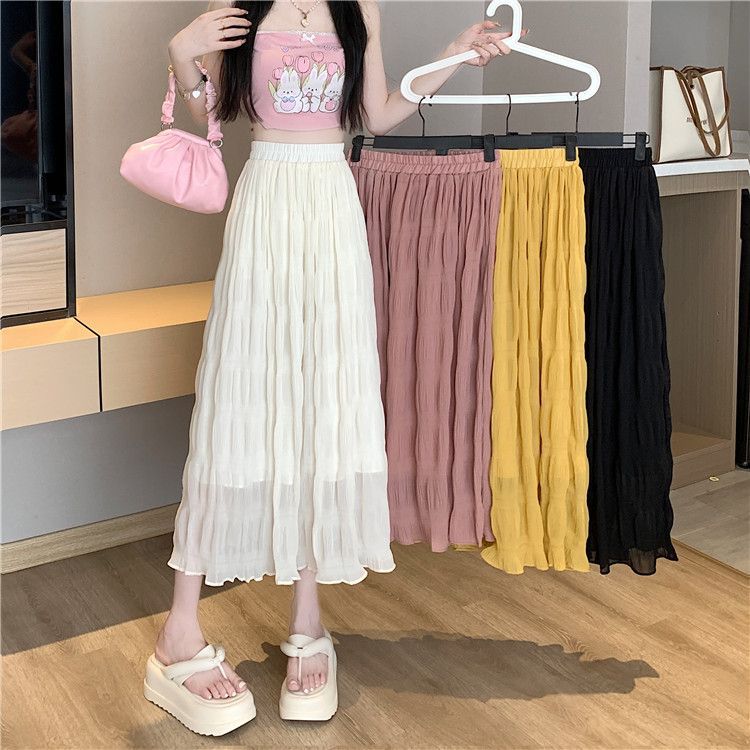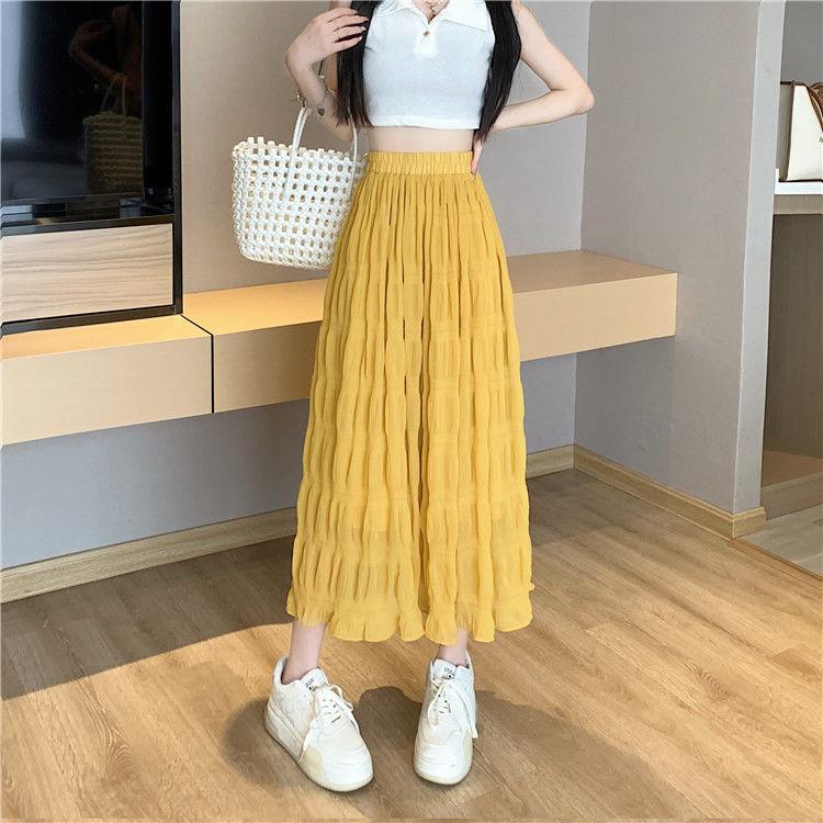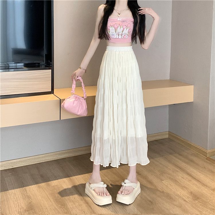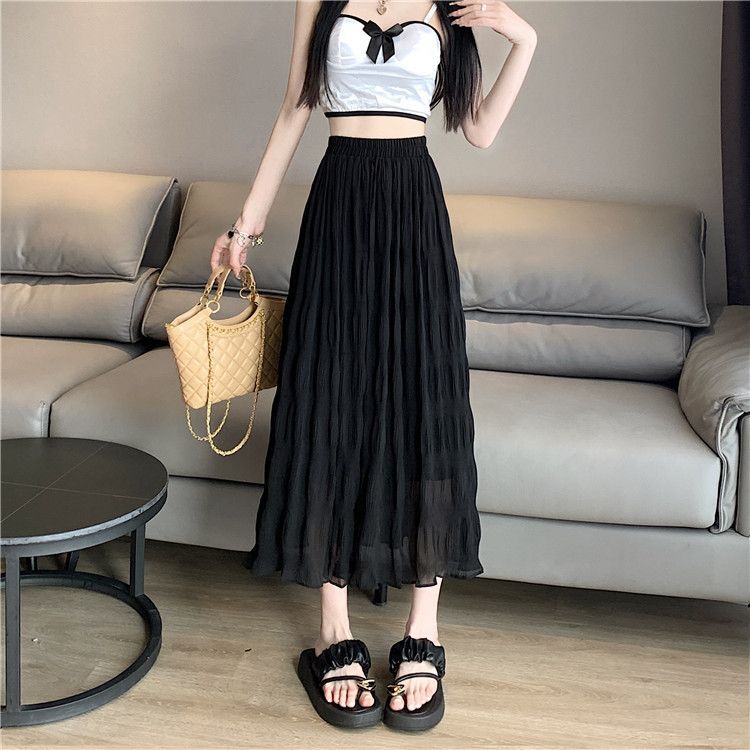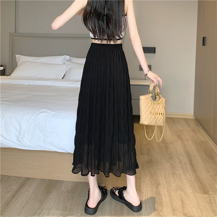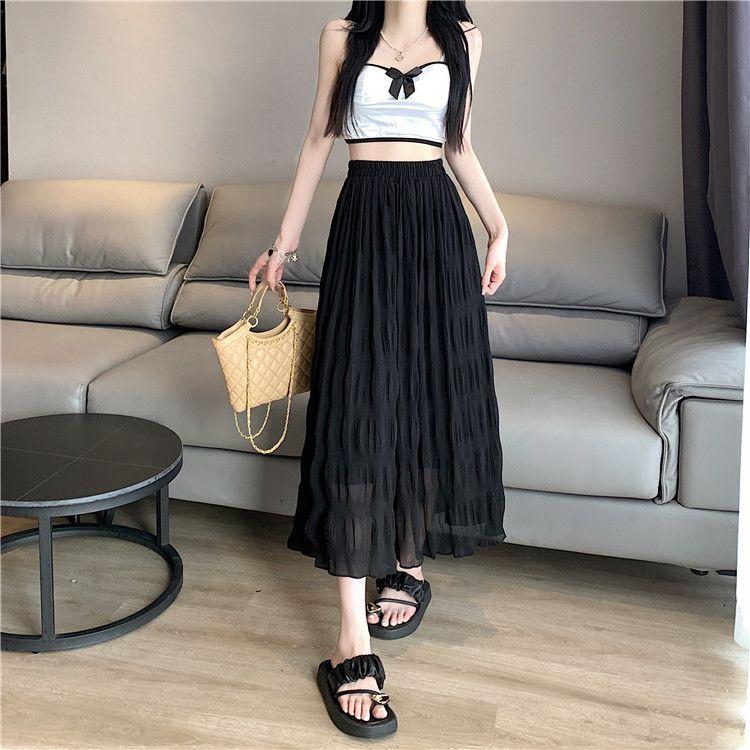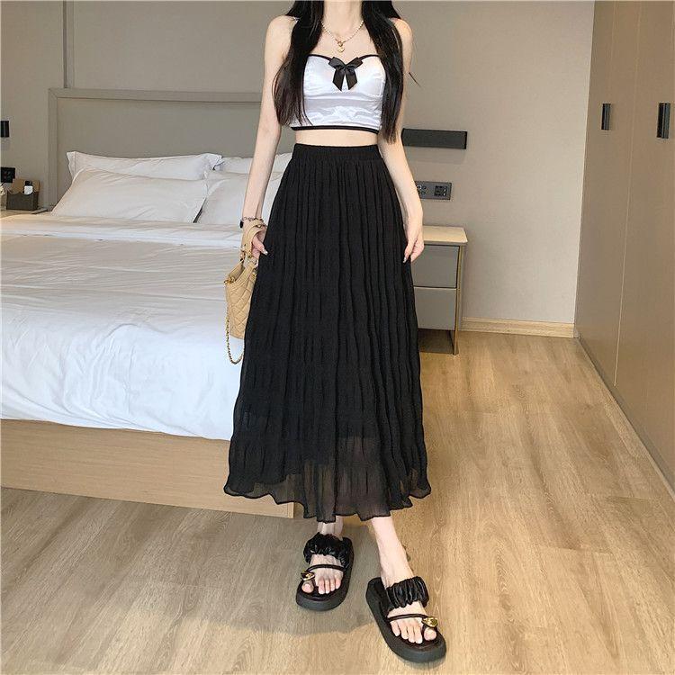 Falda plisada de gasa color albaricoque, falda tipo paraguas, falda plisada de longitud media, cintura alta, corte A, para mujer, primavera y verano, 2024