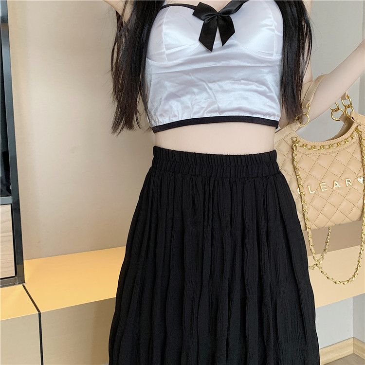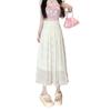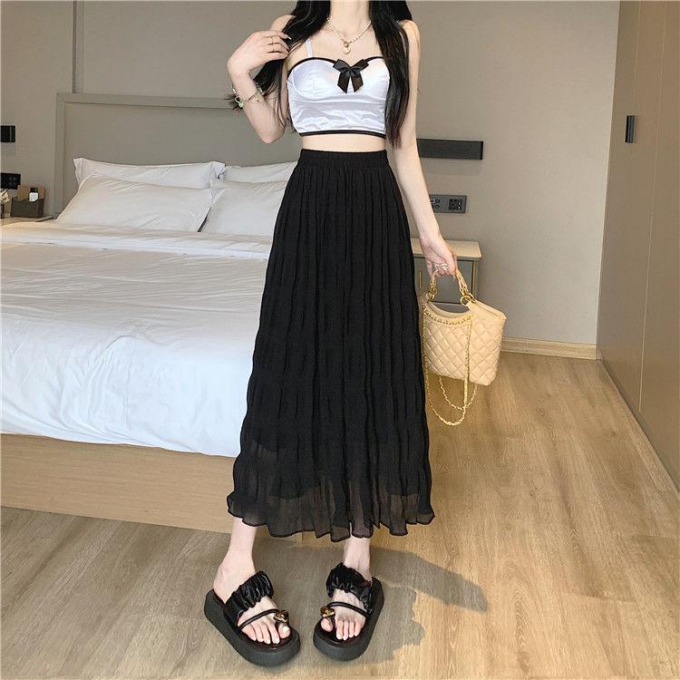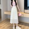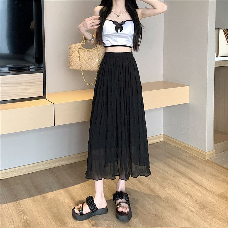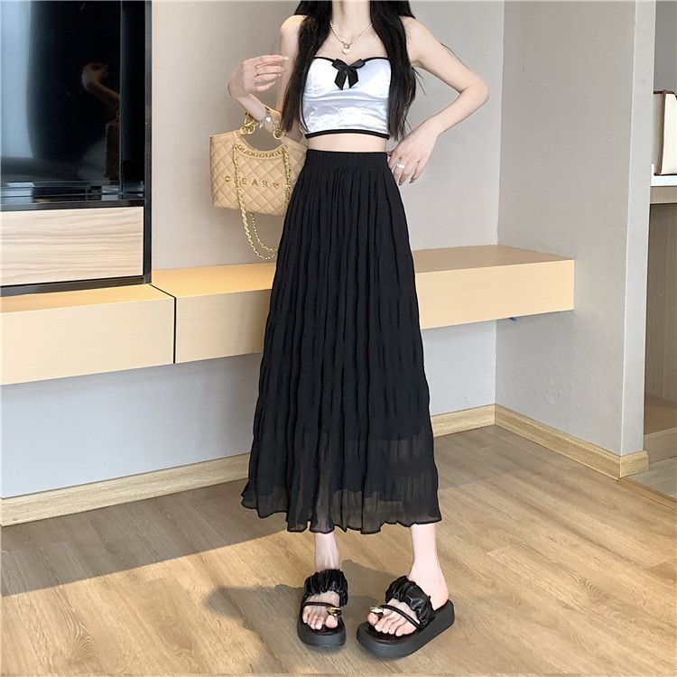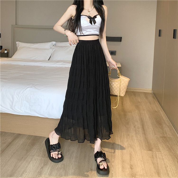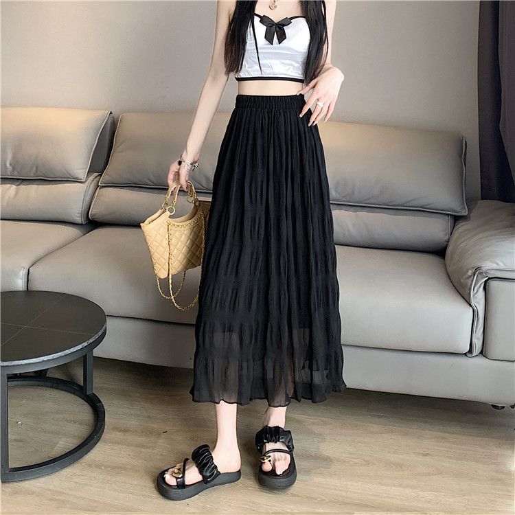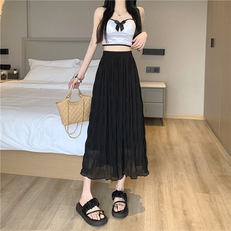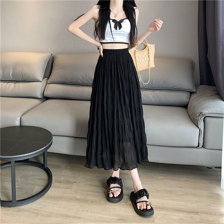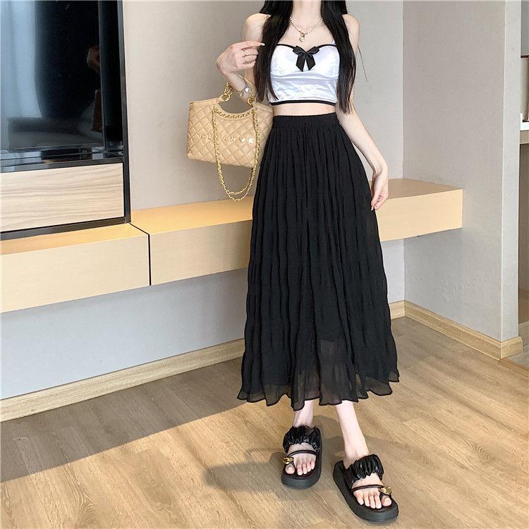 Falda plisada de gasa color albaricoque, falda tipo paraguas, falda plisada de longitud media, cintura alta, corte A, para mujer, primavera y verano, 2024