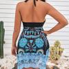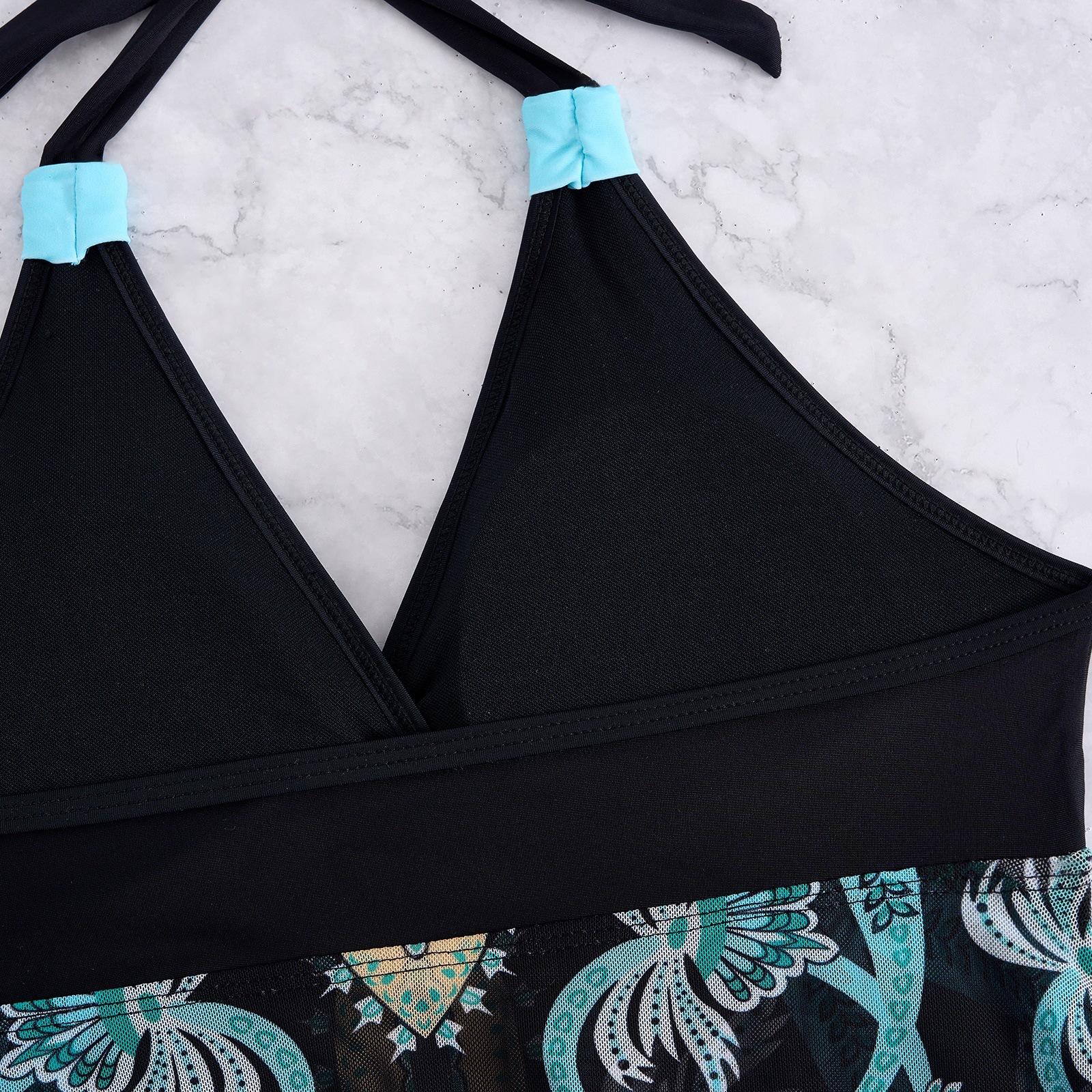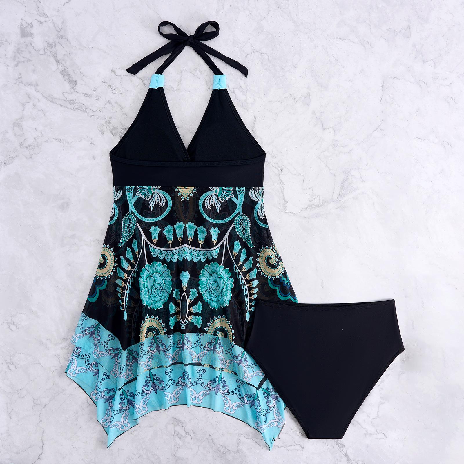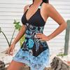 Falda estampada europea y americana transfronteriza de comercio exterior 2025, traje de baño de playa ajustado, conservador, sexy y dividido para mujer