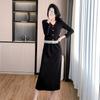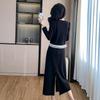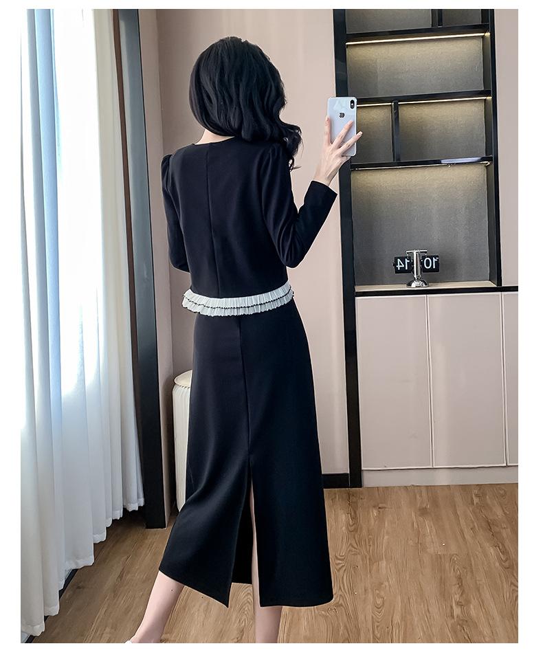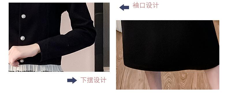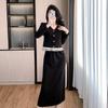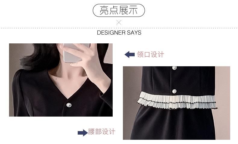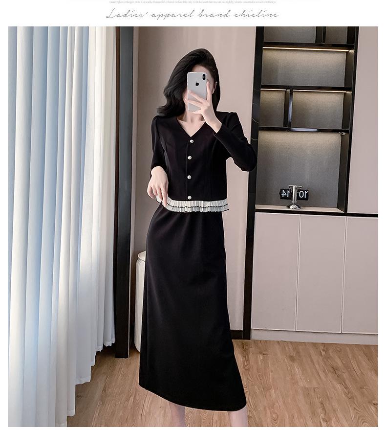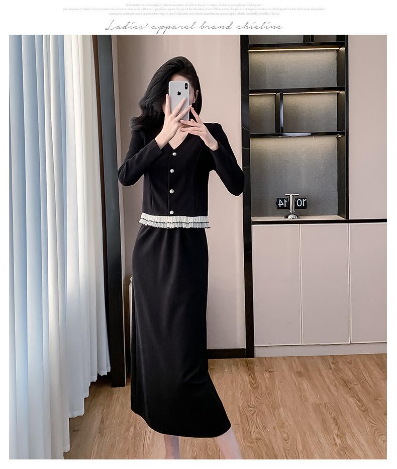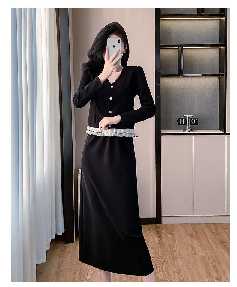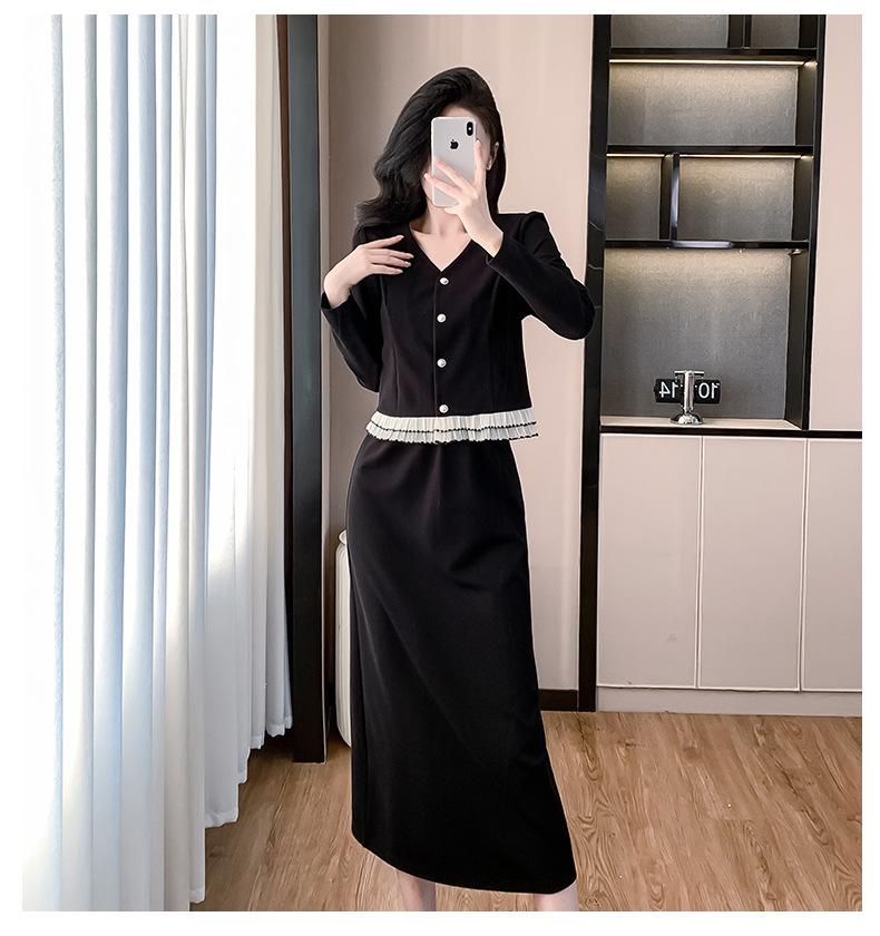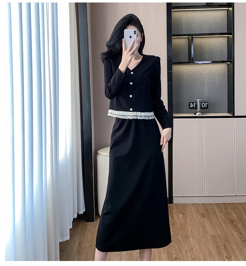 Foto Real del Nuevo Otoño 2025 Cuello en V Solapa Sencilla Acanalado Estilo Pequeño Fragante Falda Larga Traje de Dos Piezas