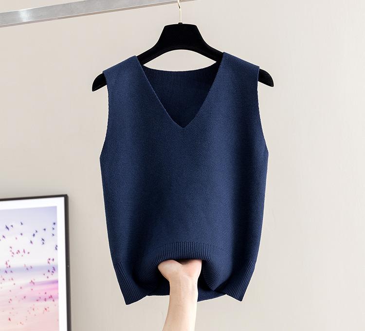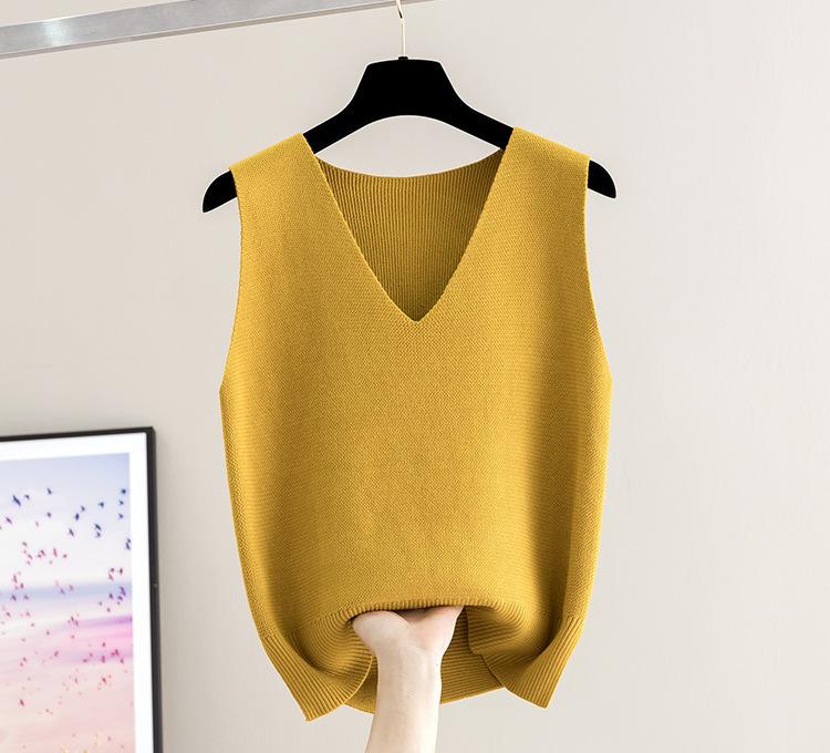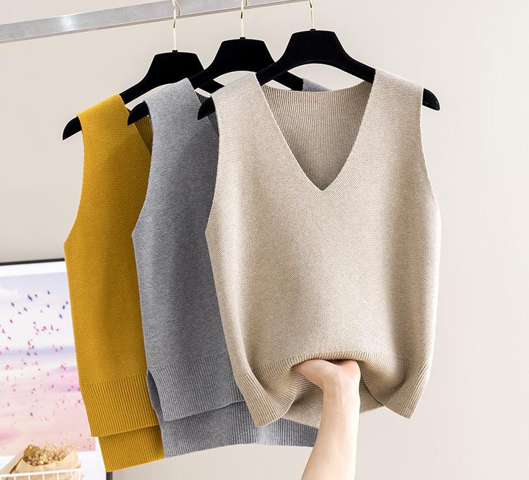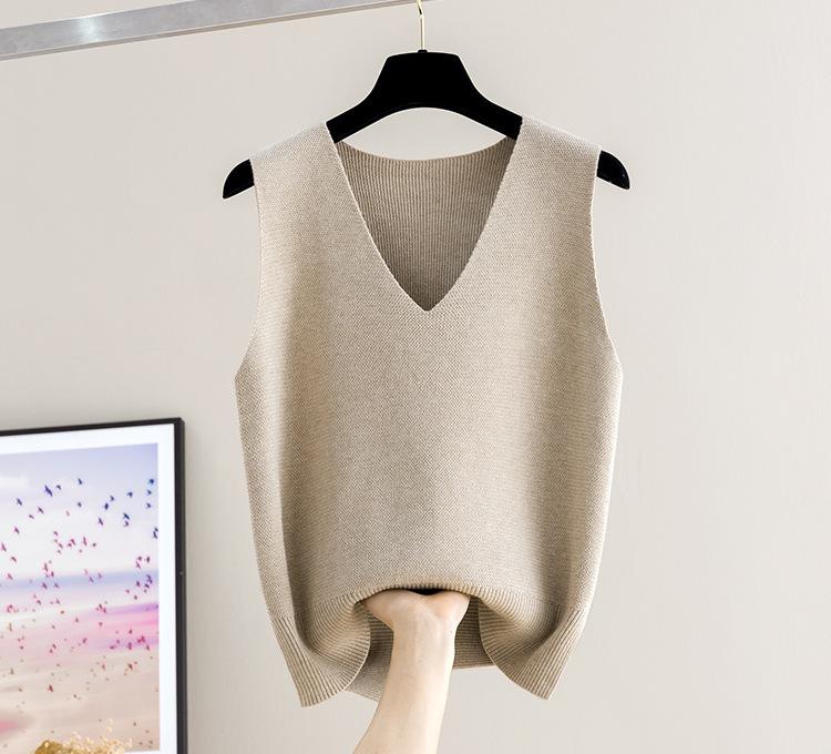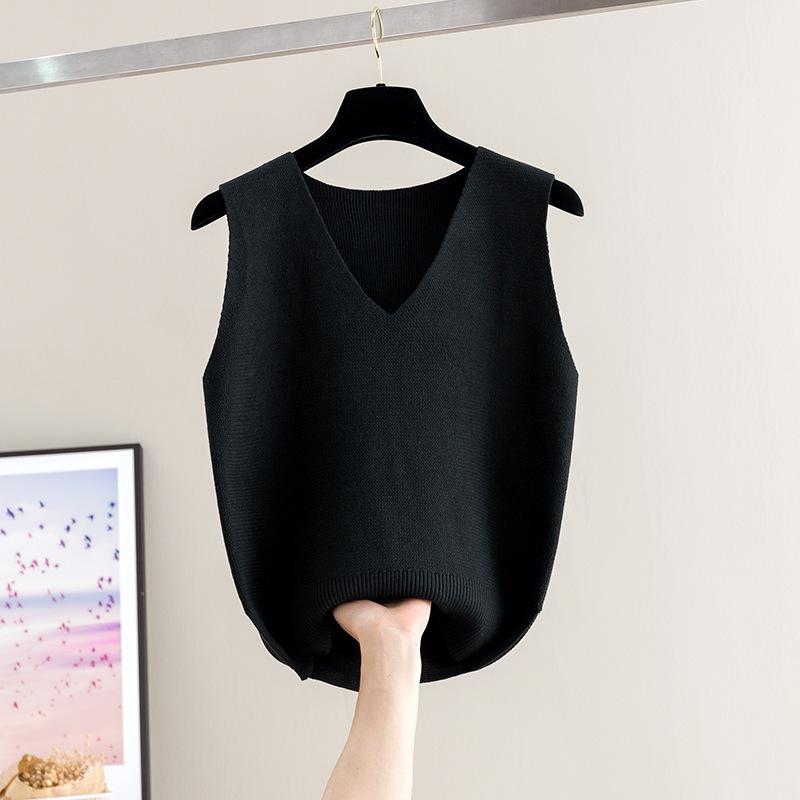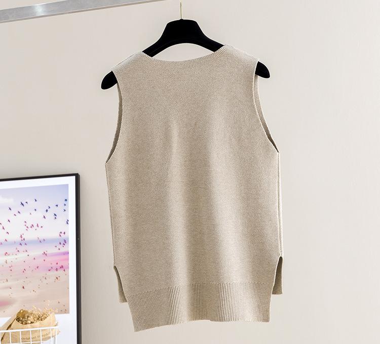 Chaleco de punto para mujer, camiseta de base corta, otoño e invierno, nuevo, sin mangas, suelto, jersey, ropa exterior, camisola de punto, chaleco, suéter