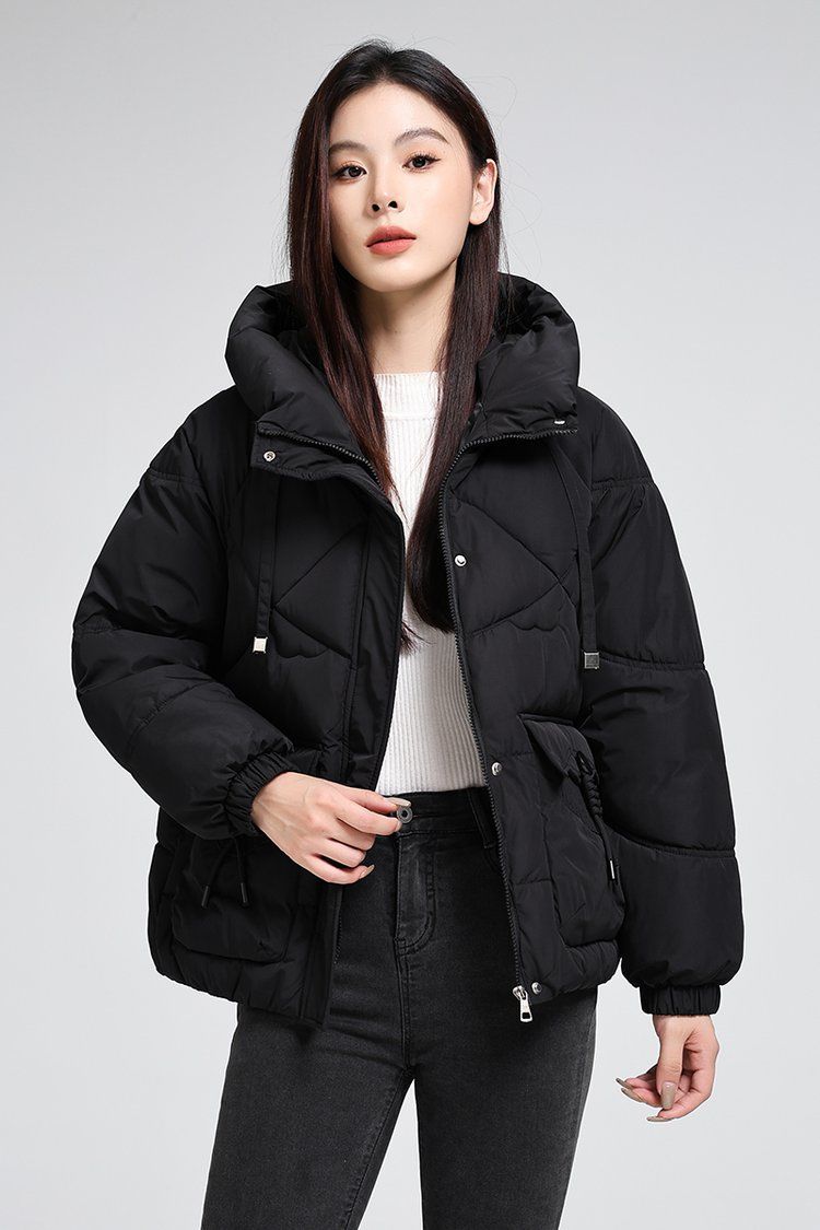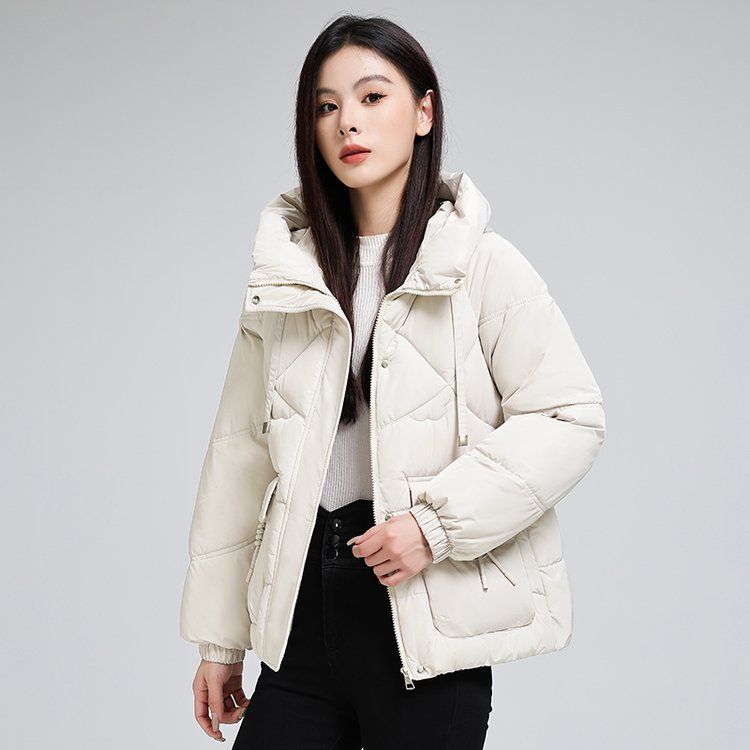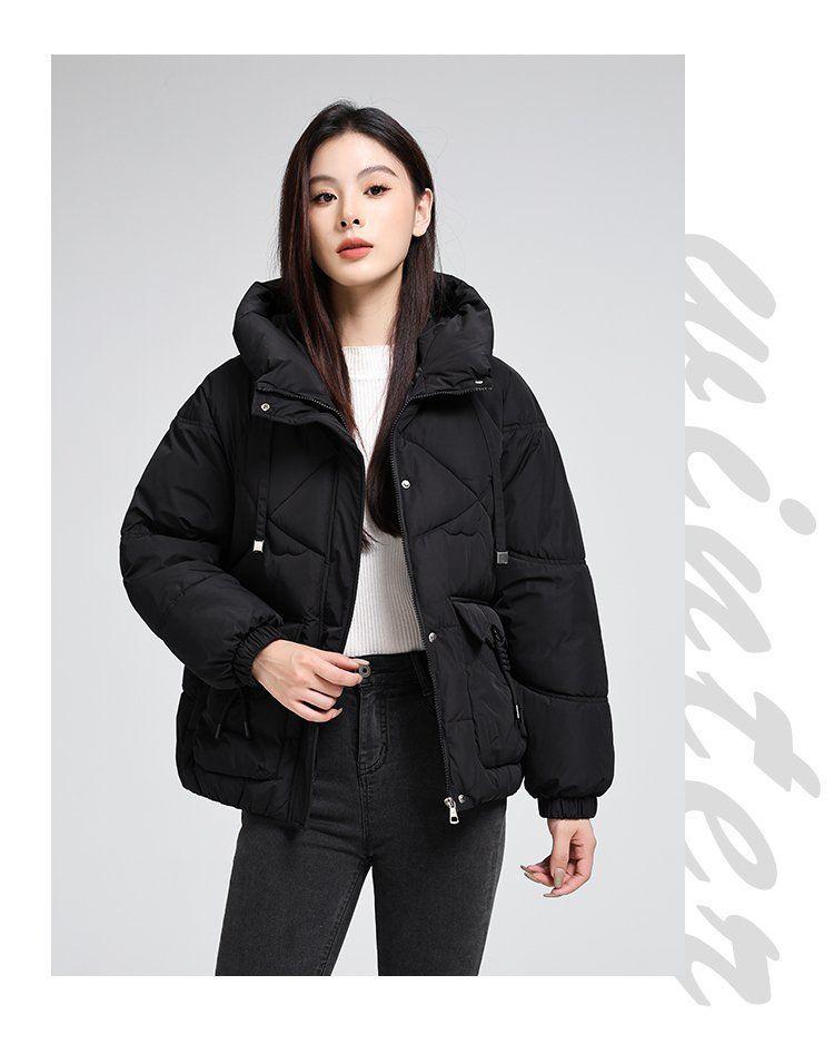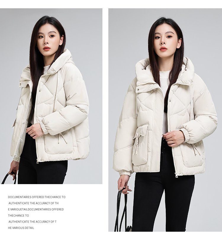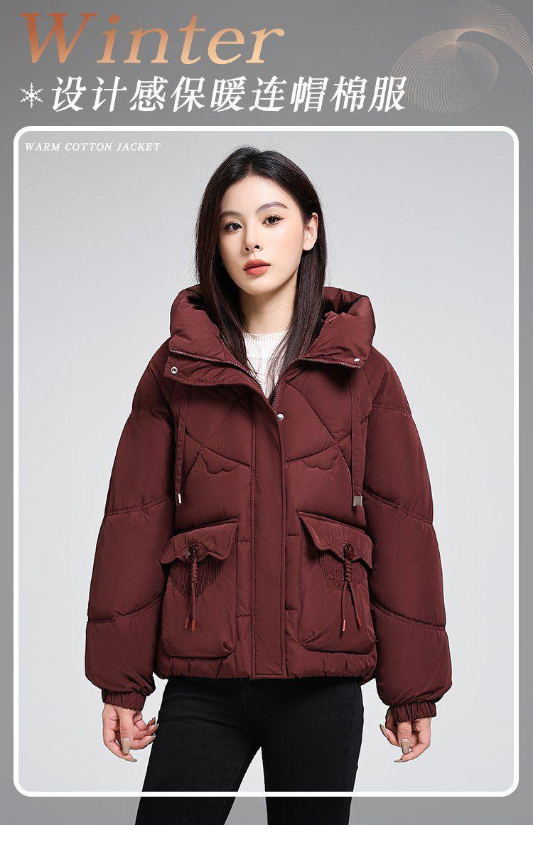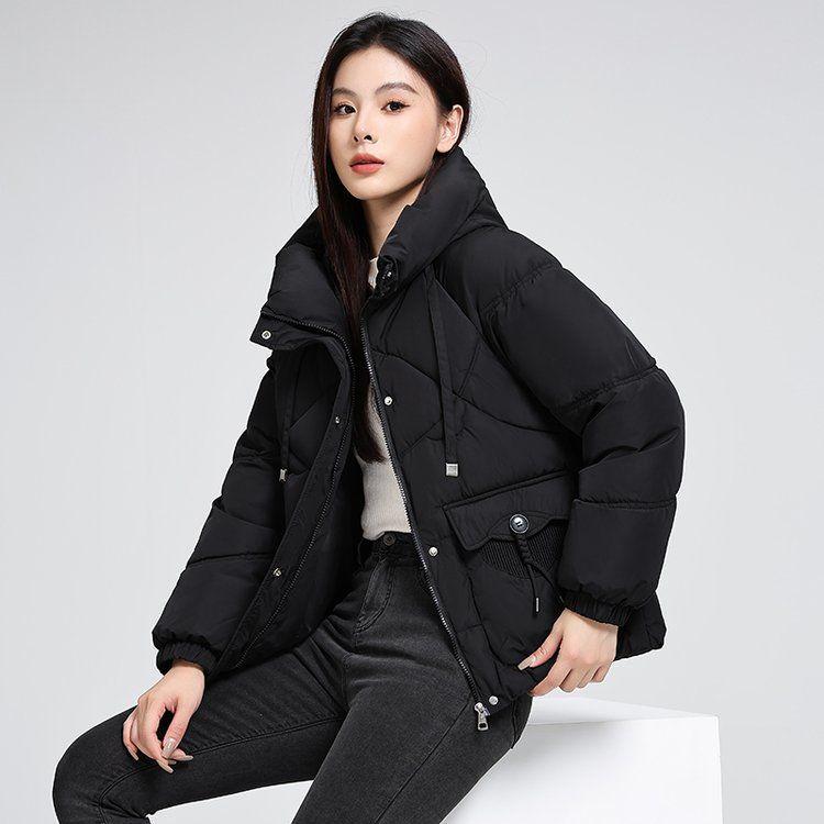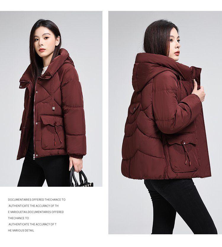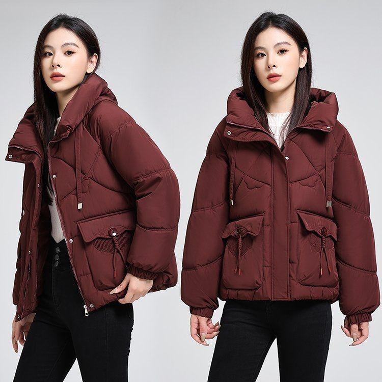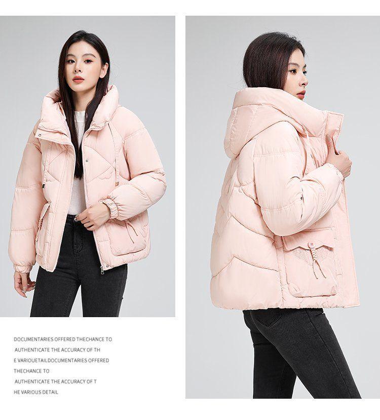 Chaqueta acolchada de algodón para mujer, nueva moda de invierno 2024, abrigo corto cálido, abrigo acolchado de algodón, abrigo holgado con capucha para mujer, abrigo acolchado de algodón pequeño y grueso