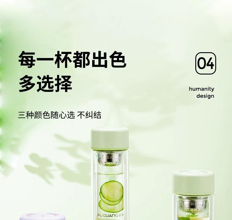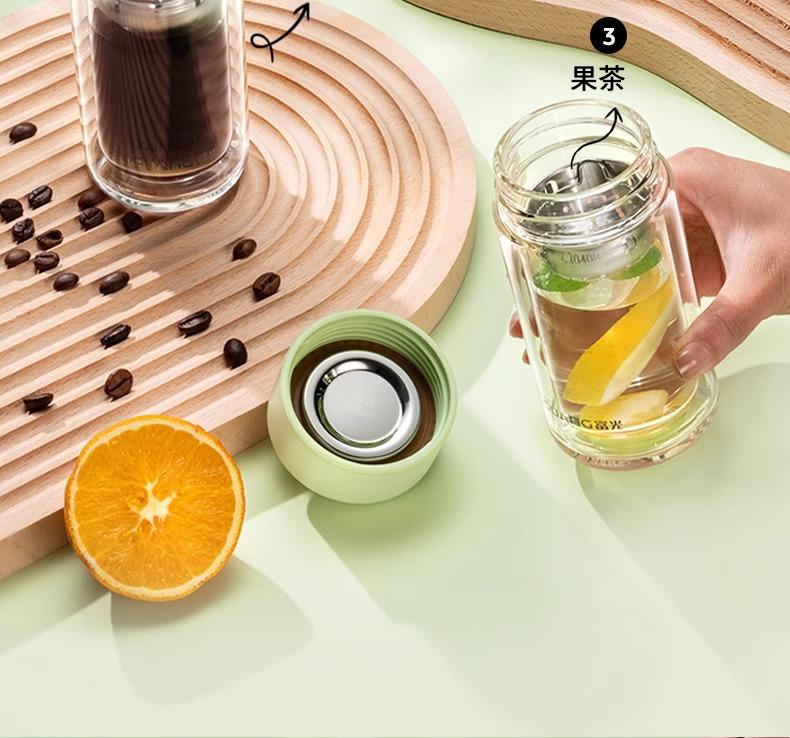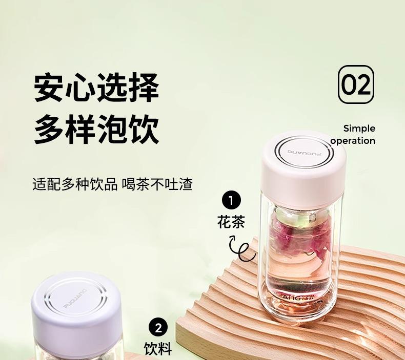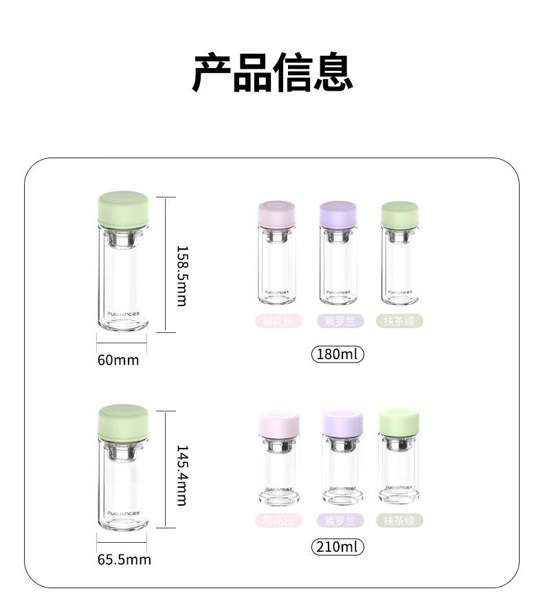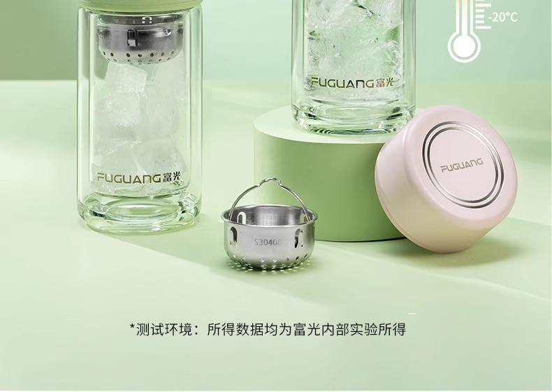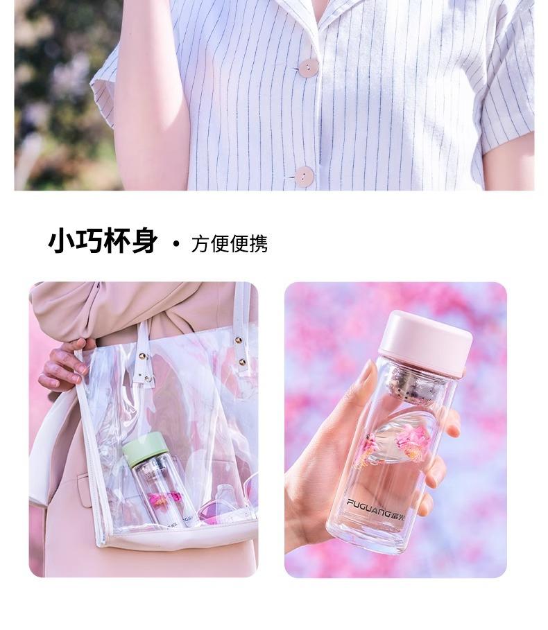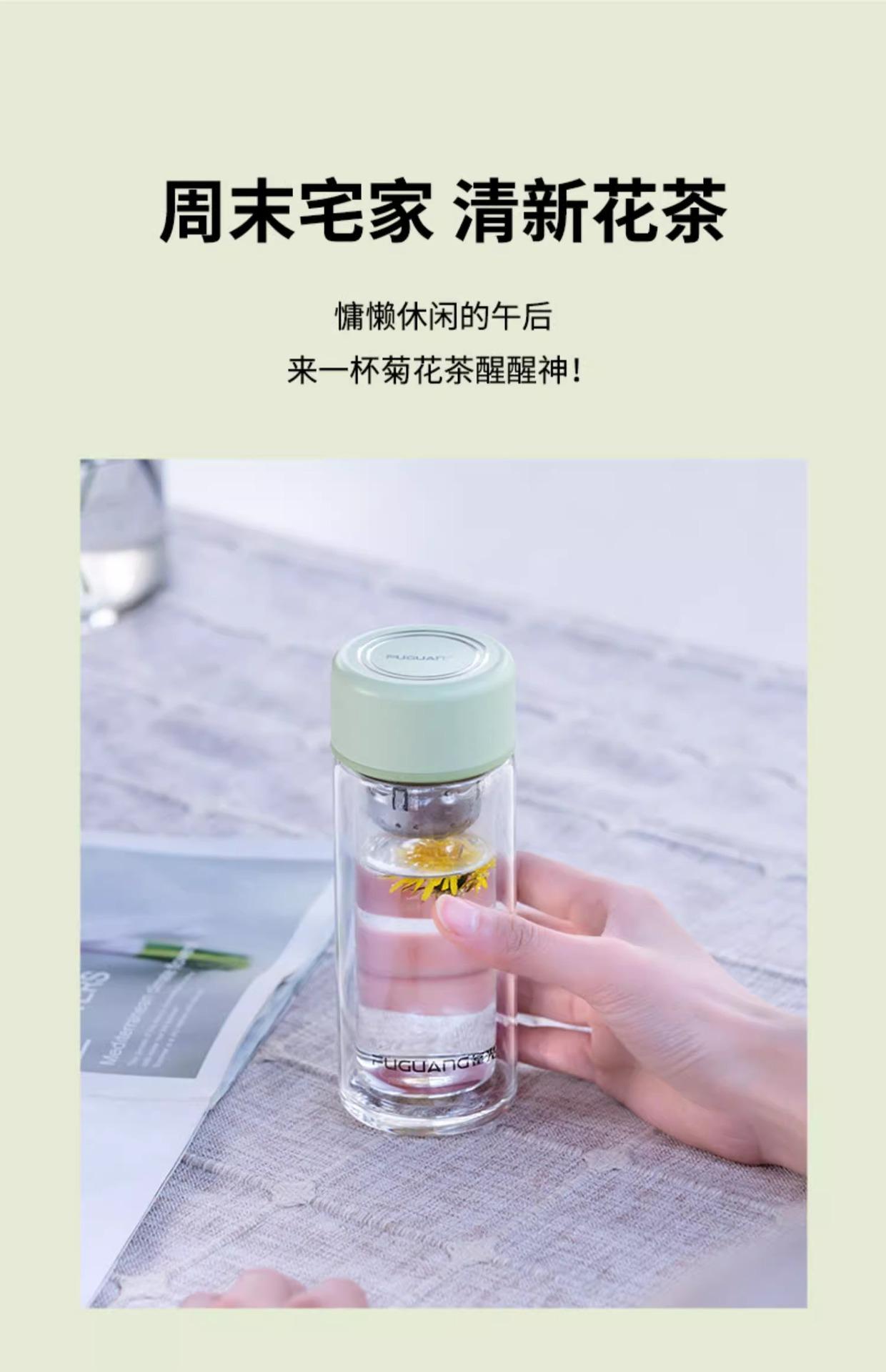 Taza de té de vidrio de doble capa Fuguang para mujer, portátil, de alto valor, mini taza pequeña para beber con letras LOGO