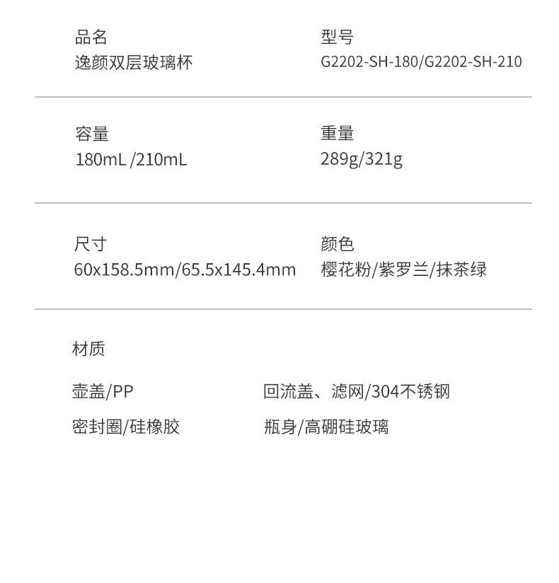 Pink-210ml, Light green-180ml, Pink-180ml, Violet-180ml, Light green-210ml, Violet-210ml