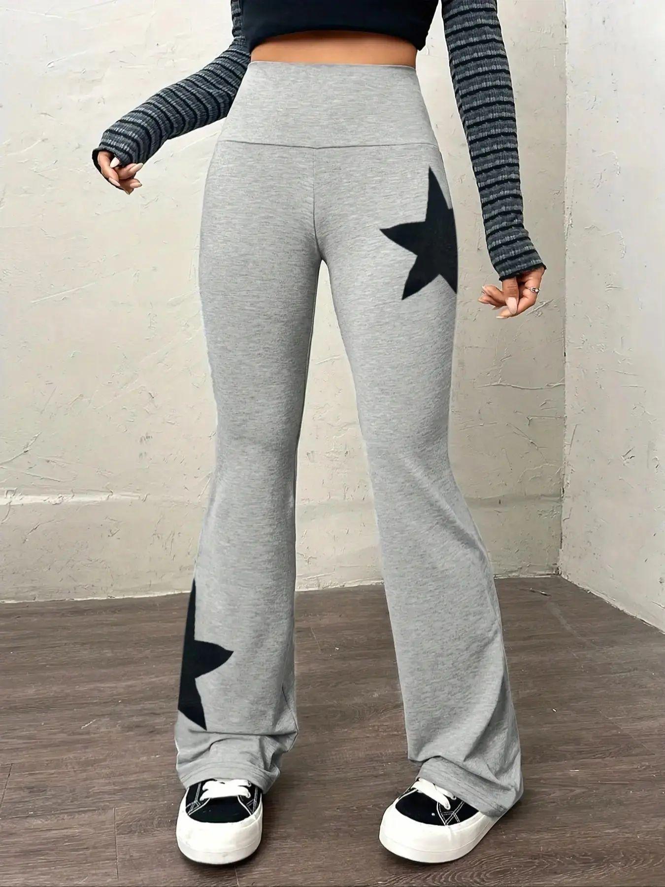 2024TEMU AliExpress Pantalones Deportivos Casuales Calientes Estrella de Cinco Puntas Elásticos Ajustados Cintura Alta Micropantalones