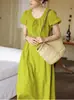 Vestido de Verano de Alta Calidad Estilo Coreano Nuevo Estilo Diosa Elegante Francés Cuello Redondo Falda Bordada Vestido de Manga Corta para Mujer