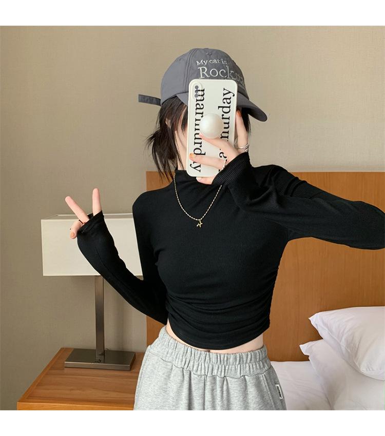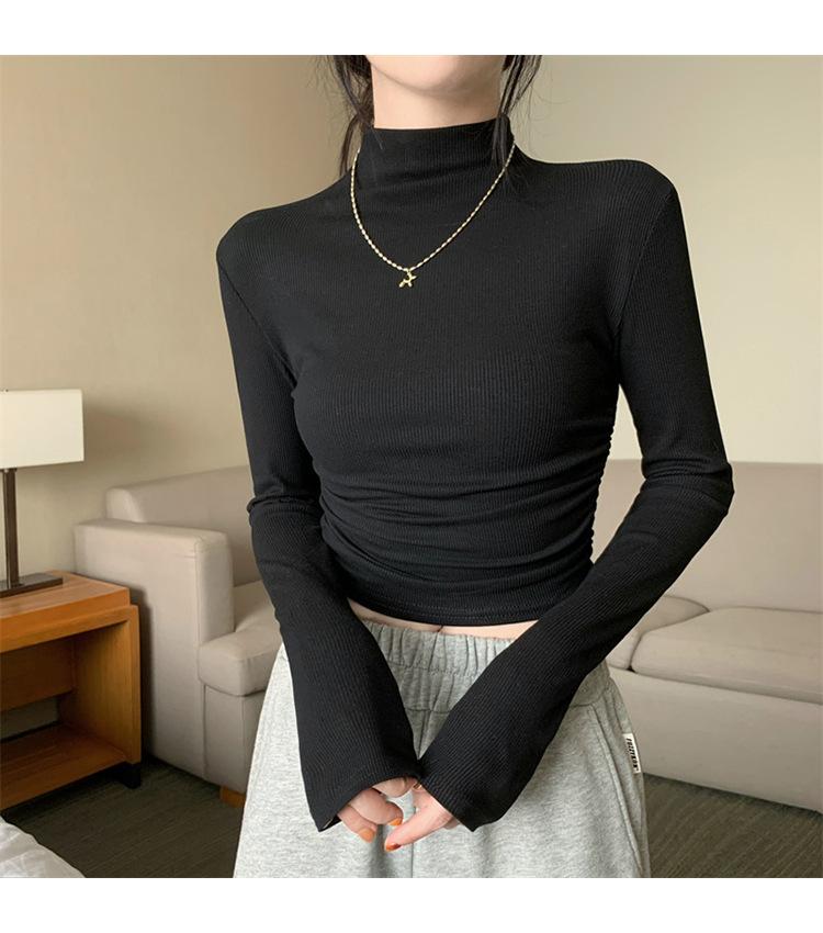 Ropa de mujer, camiseta de manga larga plisada de chica sexy para mujer