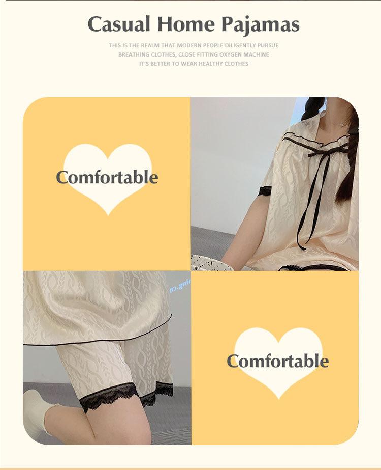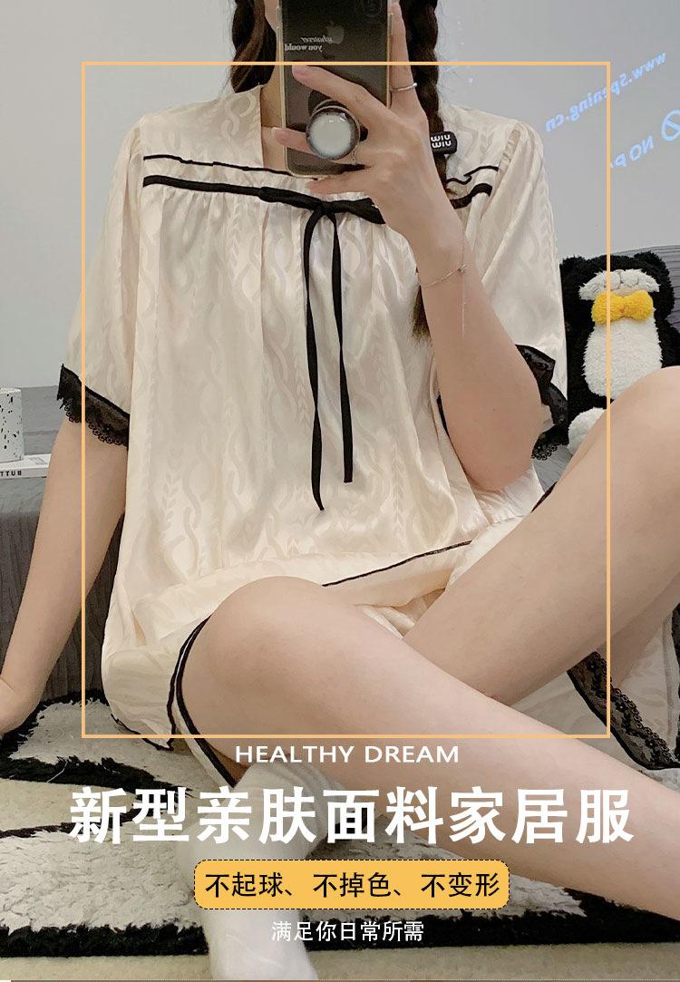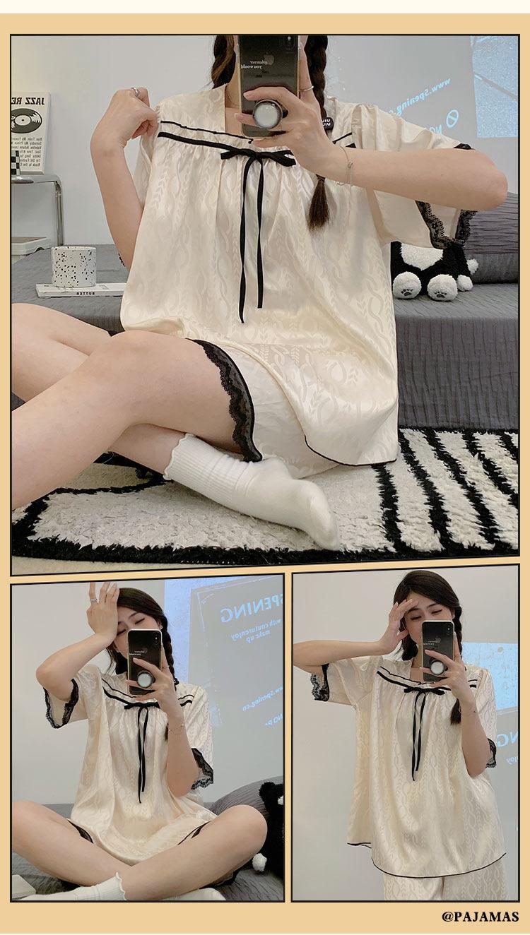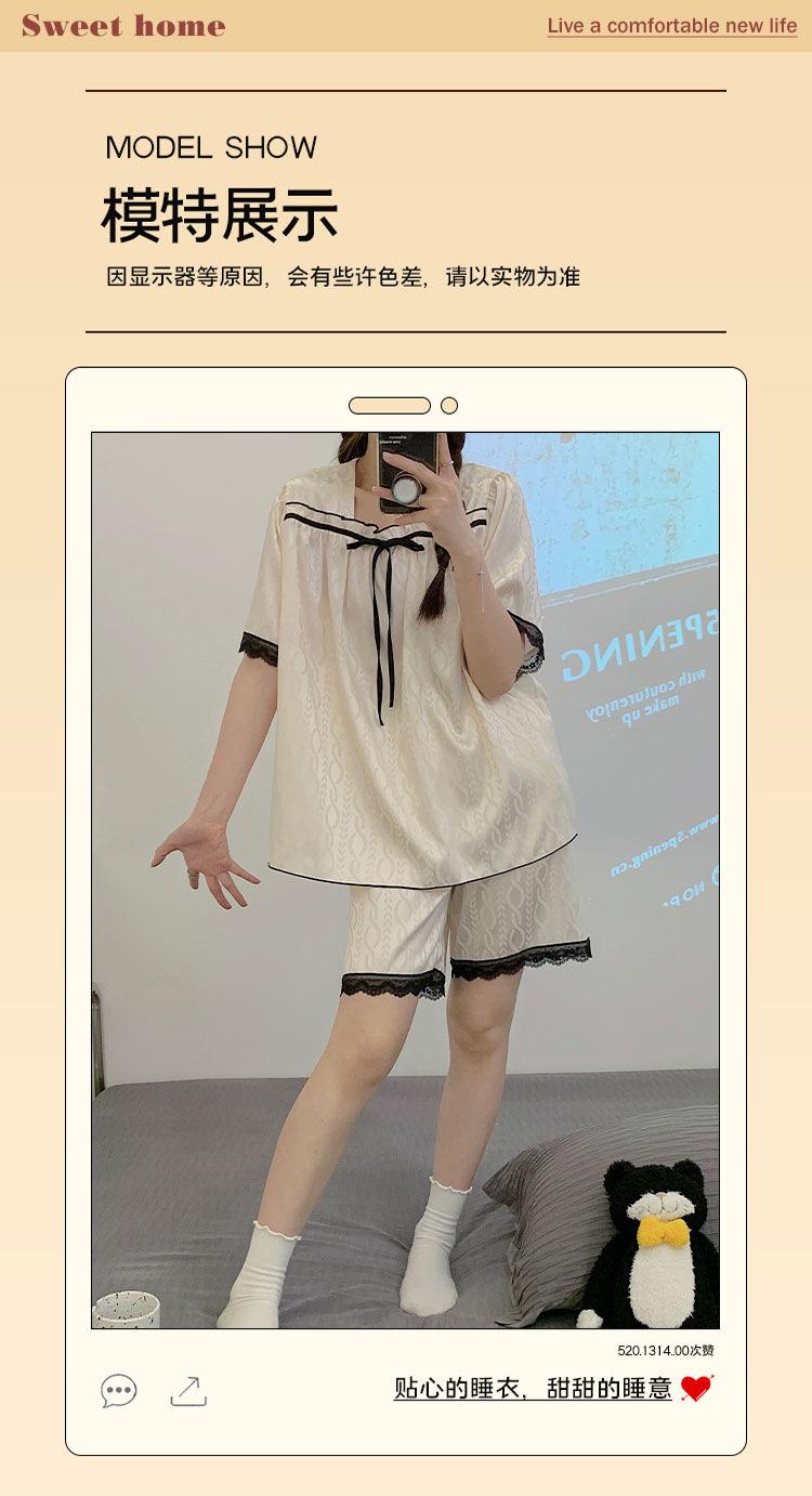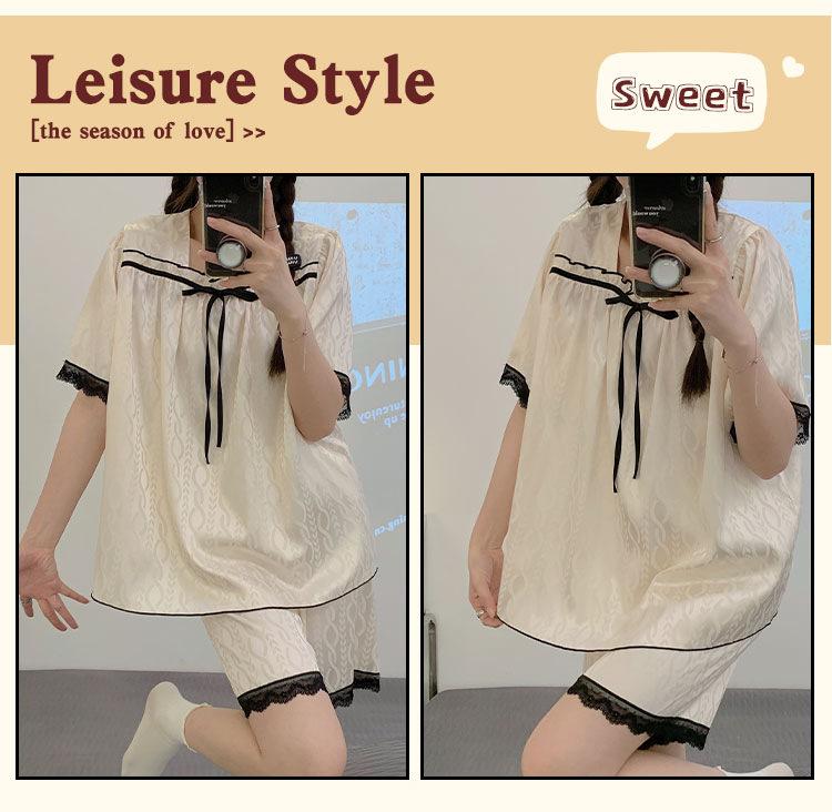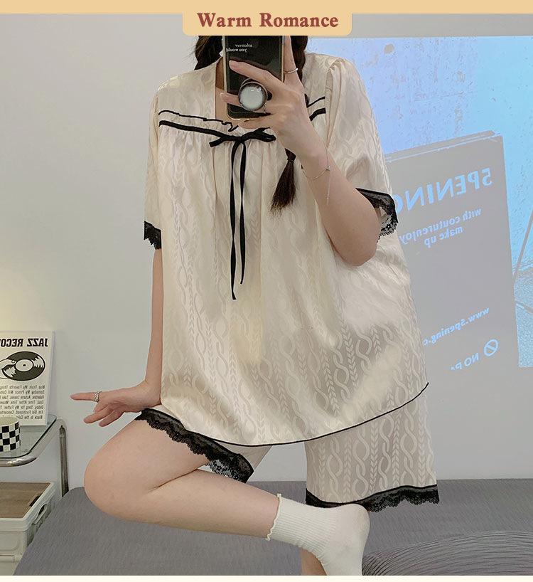 Pijamas transfronterizos de verano para mujer, nuevos pantalones cortos de manga corta con encaje fino de seda de hielo jacquard, conjunto de dos piezas para el hogar