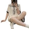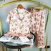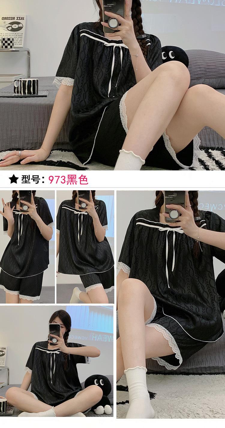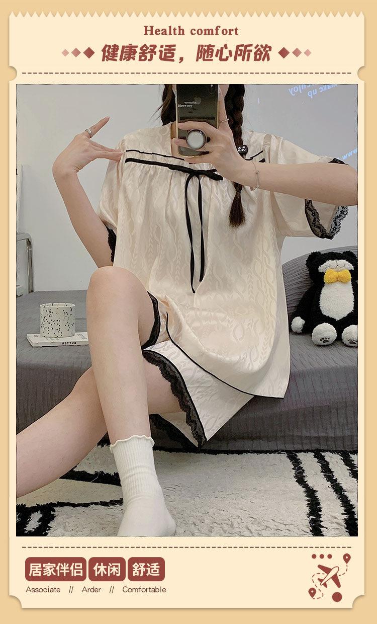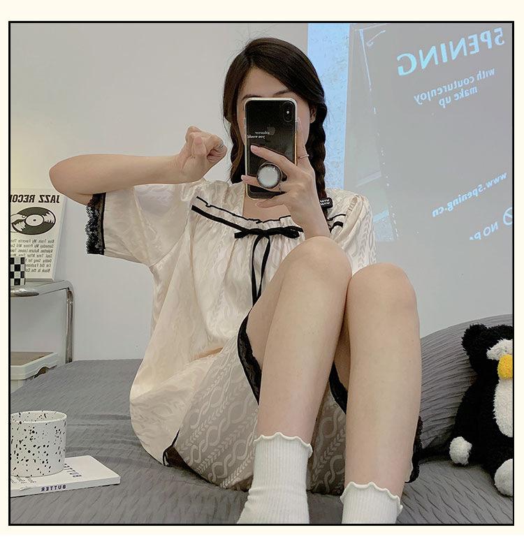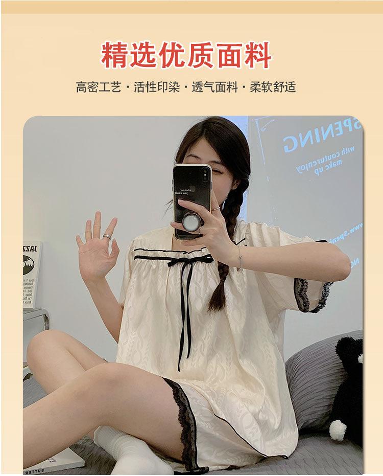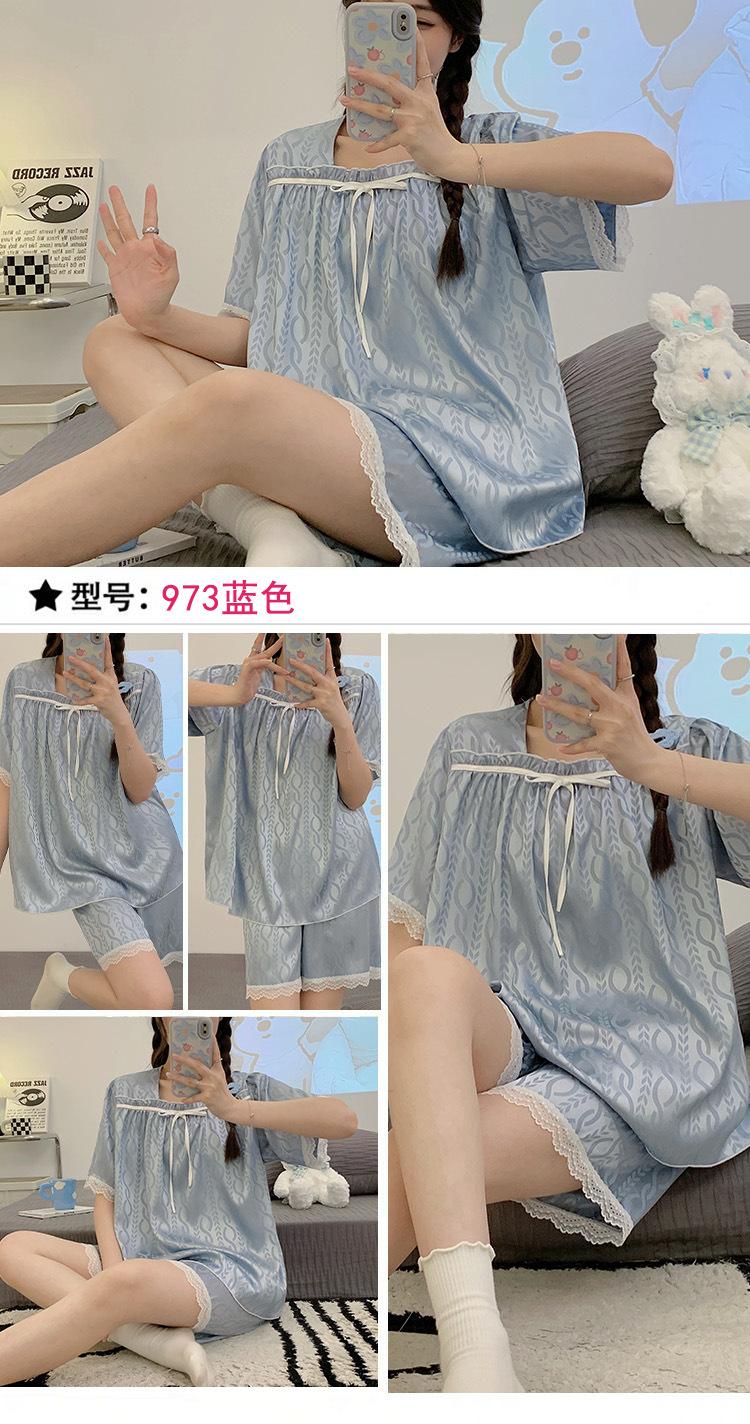 Pijamas transfronterizos de verano para mujer, nuevos pantalones cortos de manga corta con encaje fino de seda de hielo jacquard, conjunto de dos piezas para el hogar