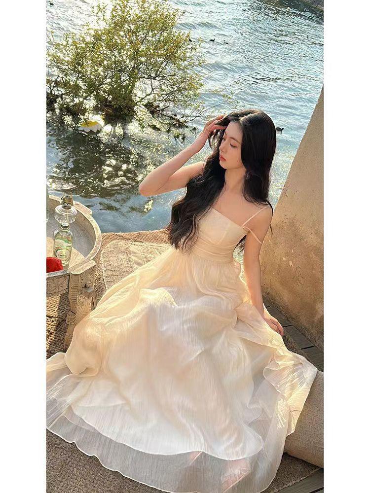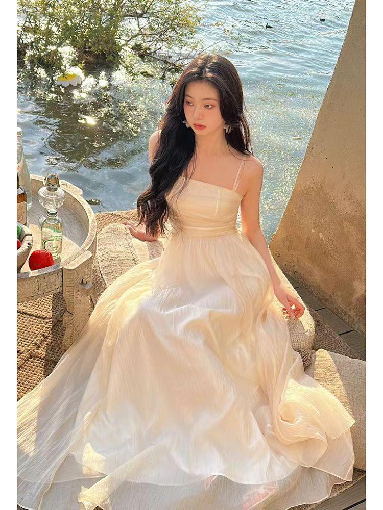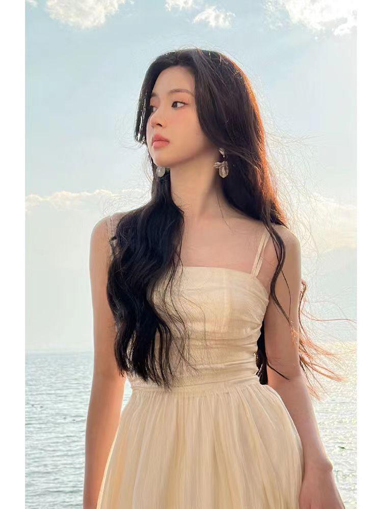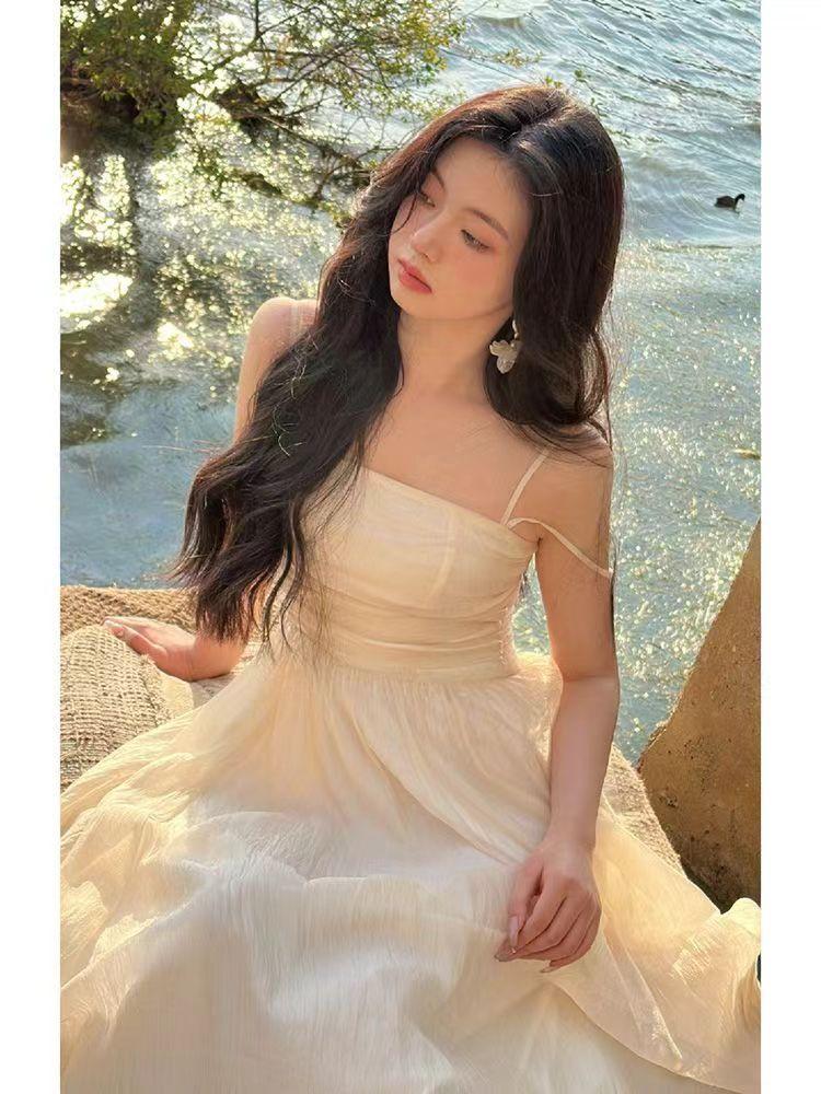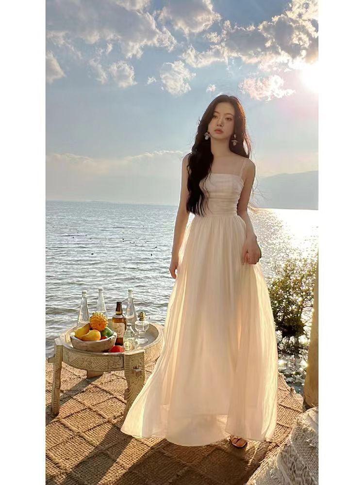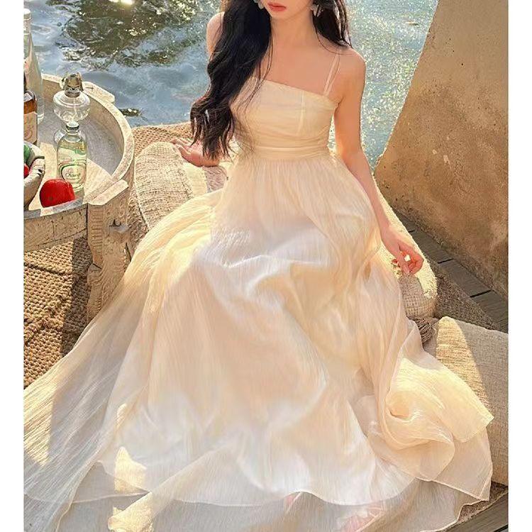 Vestido de Tirantes Vacacional Francés Junto al Mar para Mujer Primavera y Verano Vestido de Playa de Alta Gama Estilo Suave Primer Amor Super Hada Falda Larga