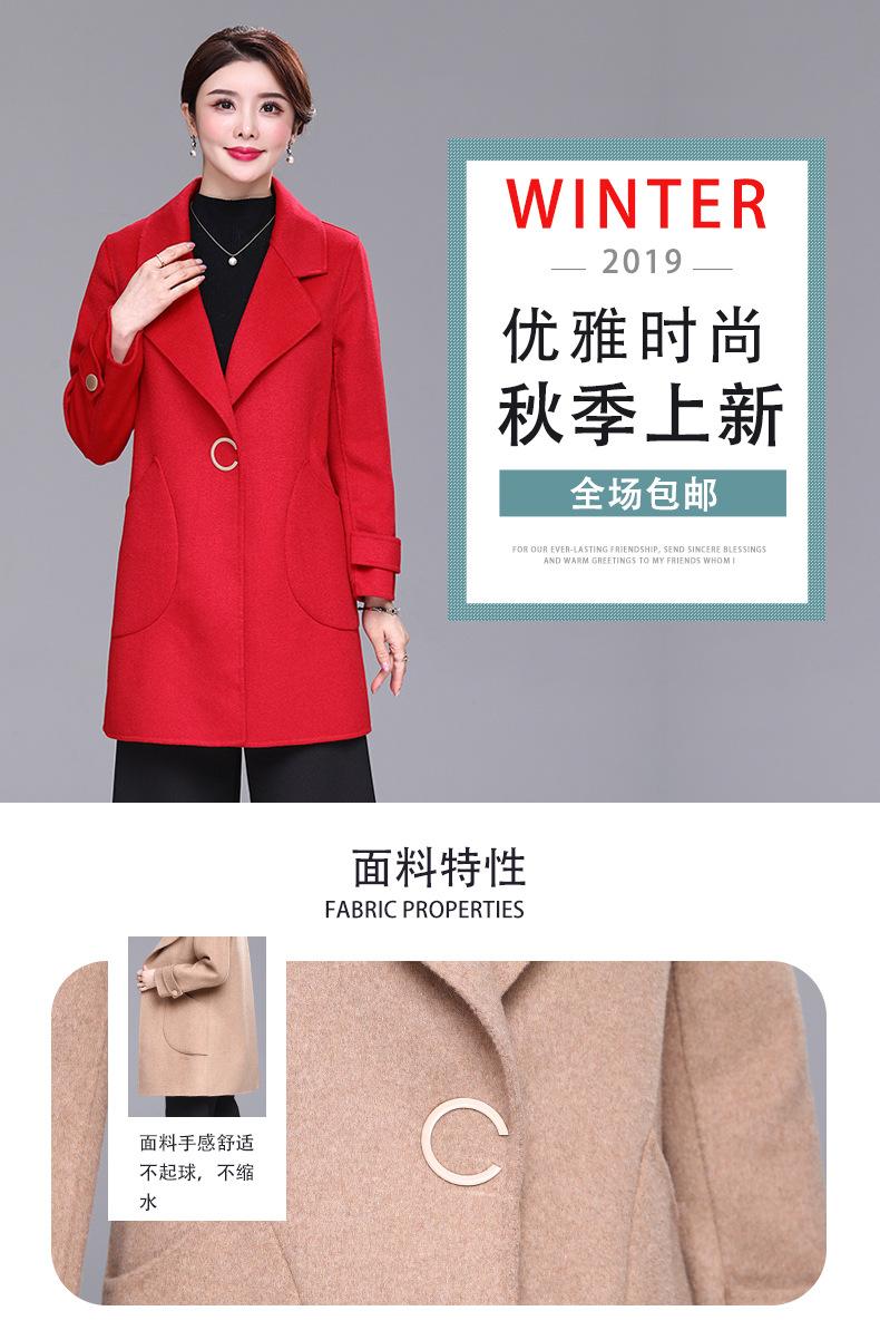 Abrigo de Lana de Doble Cara para Madre Abrigo de Cachemira para Mediana Edad Abrigo Midi Largo para Mujer Abrigo de Lana para Mujer Otoño e Invierno