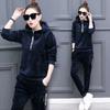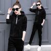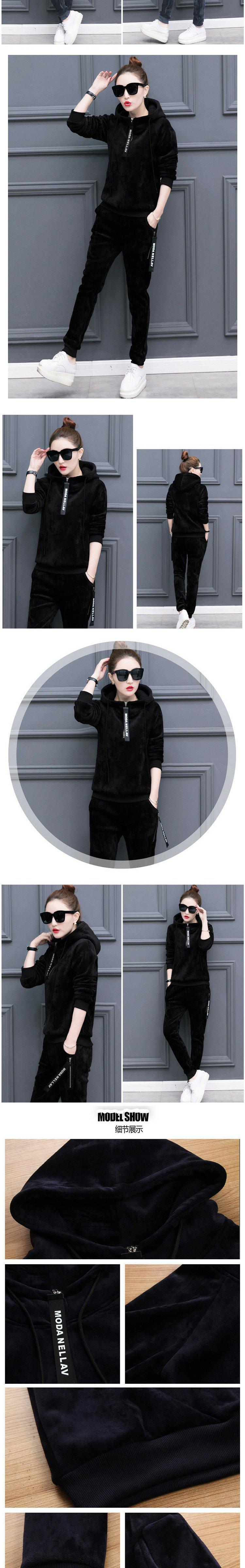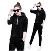 Traje deportivo de terciopelo dorado para otoño e invierno, suéter informal holgado y sencillo de manga larga con capucha y forro polar para mujer, traje adelgazante de dos piezas