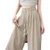 Pantalones de Pierna Ancha a Rayas para Mujer en Verano, Pantalones Casuales Delgados de Cintura Alta, Pantalones Sueltos de Pierna Recta hasta el Piso para Cuerpo con Forma de Pera