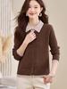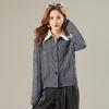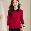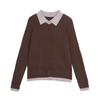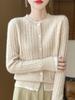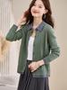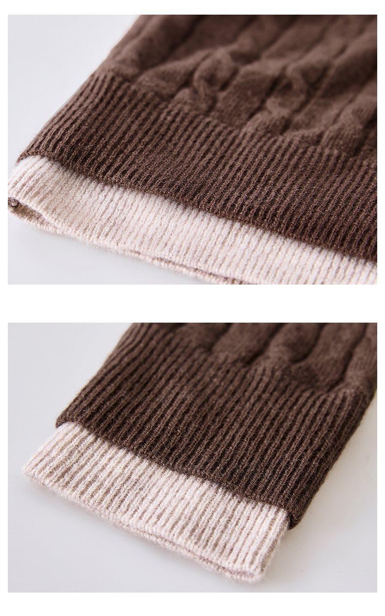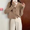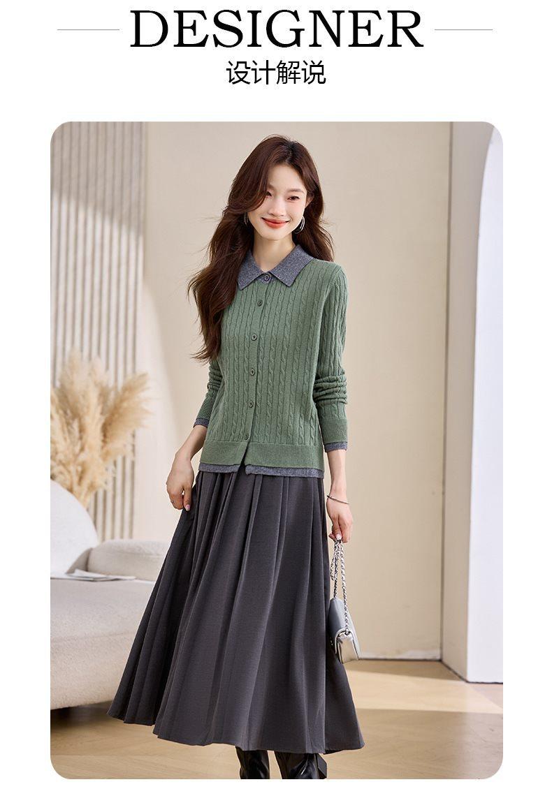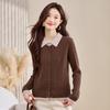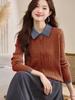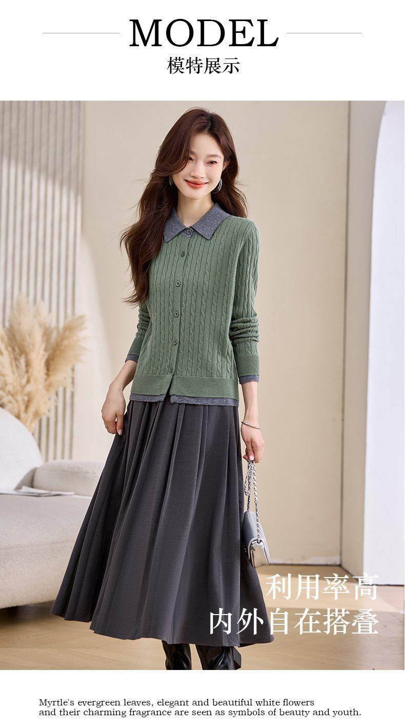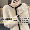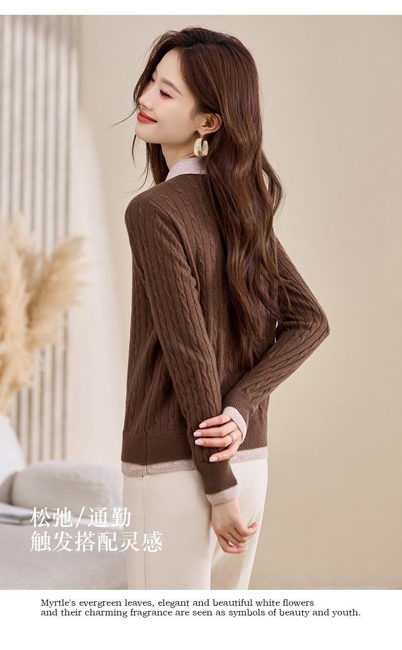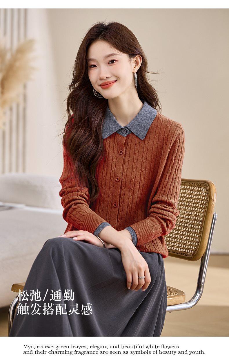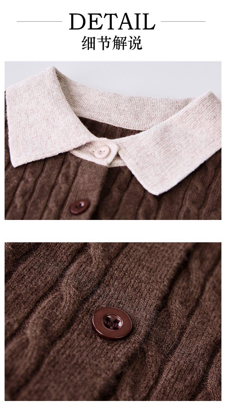 Suéter de lana pura 100% para mujer, cárdigan corto con flores retorcidas para otoño e invierno, cuello polo falso de dos piezas, manga larga, a juego de colores