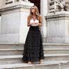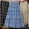 Falda larga de estilo francés transfronterizo para mujer, falda de malla de cintura alta, elegante, de color sólido, estilo europeo y americano, para otoño e invierno, esponjosa
